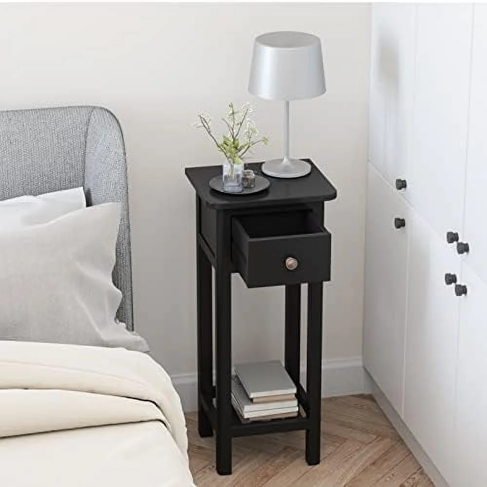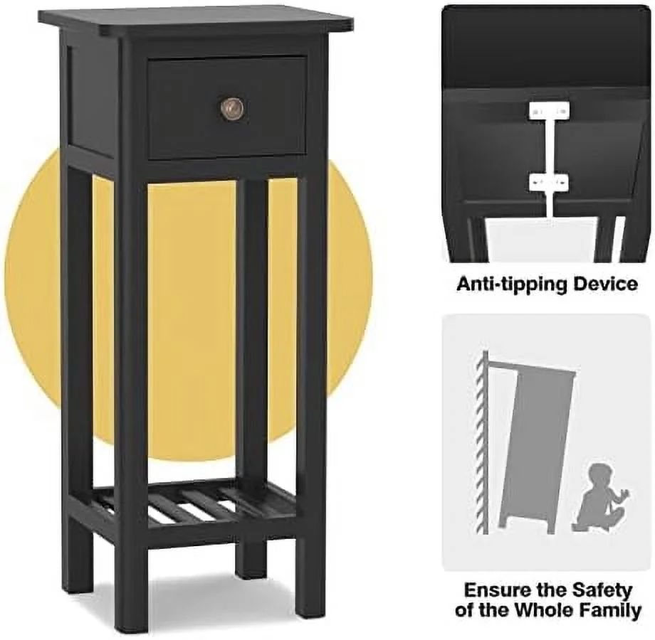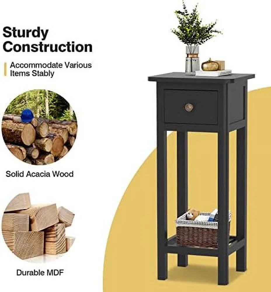 HJZUINIUNIU Narrow Side Table Small End Table for Small Spaces Farmhouse Acacia Wood Slim Side Table Small Bedside Tables Thin Nightstand w/Drawer & Open No Assembly Required 14