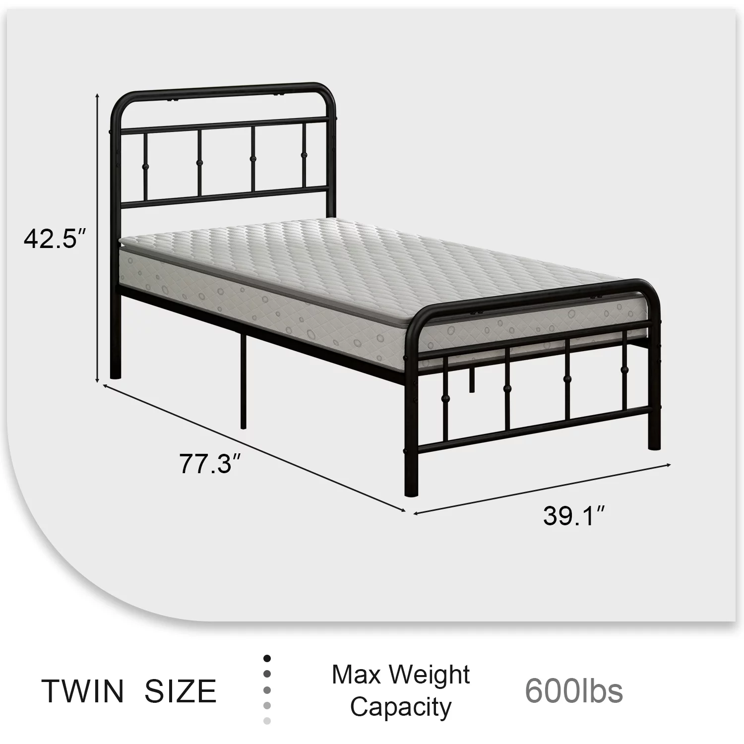4 EVER WINNER Twin Size Metal Bed Frame with Headboard and Footboard, Twin Bed Frame for Girls, Boys, Kids, No Box Spring Needed, Vintage Style