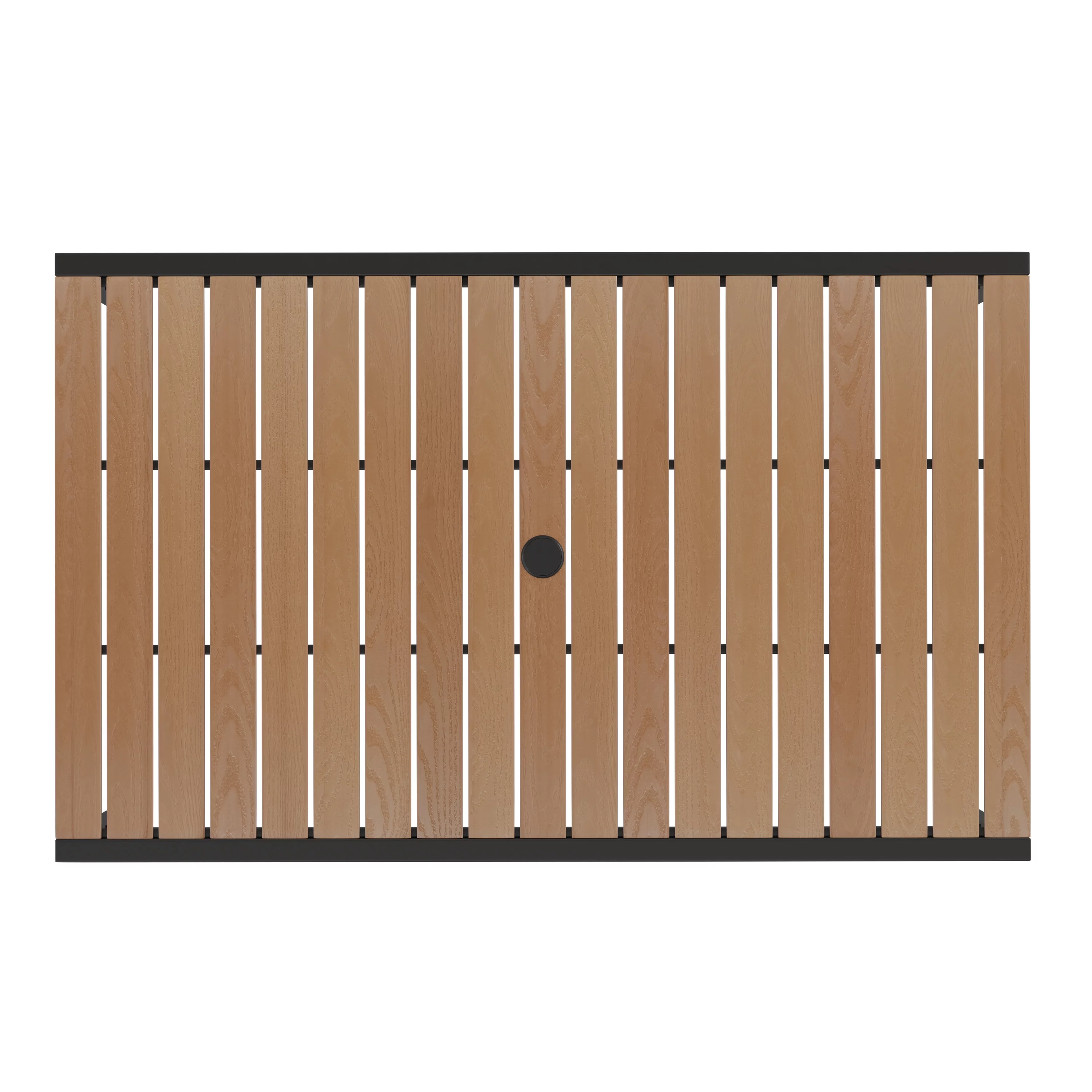 BizChair 3 Piece Outdoor Patio Table Set - 30" x 48" Synthetic Teak Patio Table with Teal Umbrella and Base