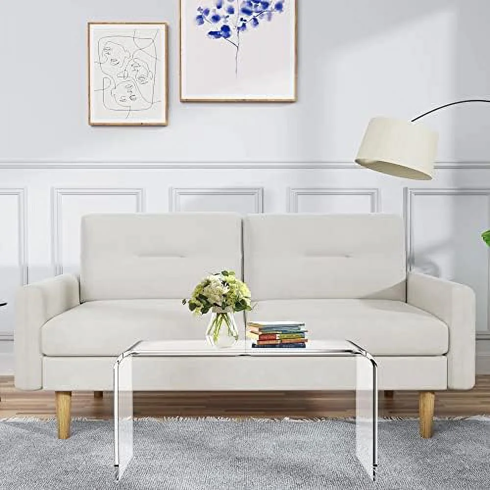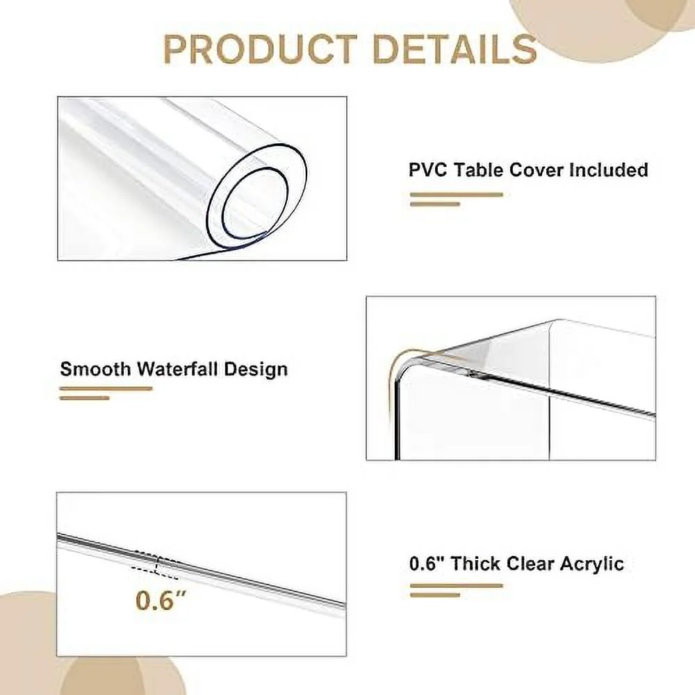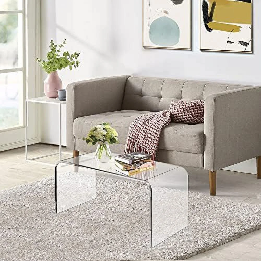 TJUNBOLIFE Acrylic Coffee Table 32" L x 16" W x 16" H Acrylic Table with Waterfall Edges Clear Lucite Table Acrylic for Living Room Bedroom