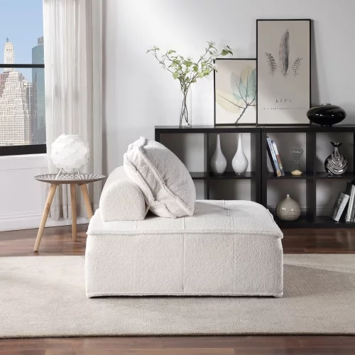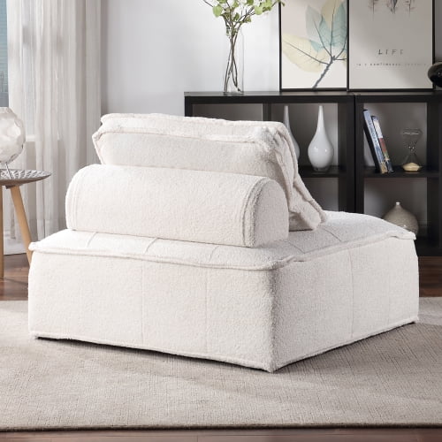 Upholstered Seating Armless Accent Chair 41.3*41.3*32.8 Inch Oversized Leisure Sofa Lounge Chair Lazy Sofa Barrel Chair for Living Room Corner Bedroom Office, Lambskin Sherpa, White