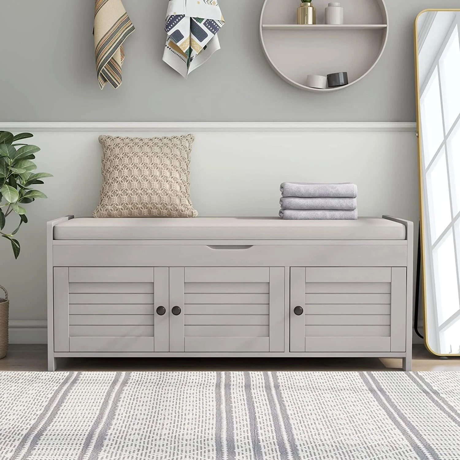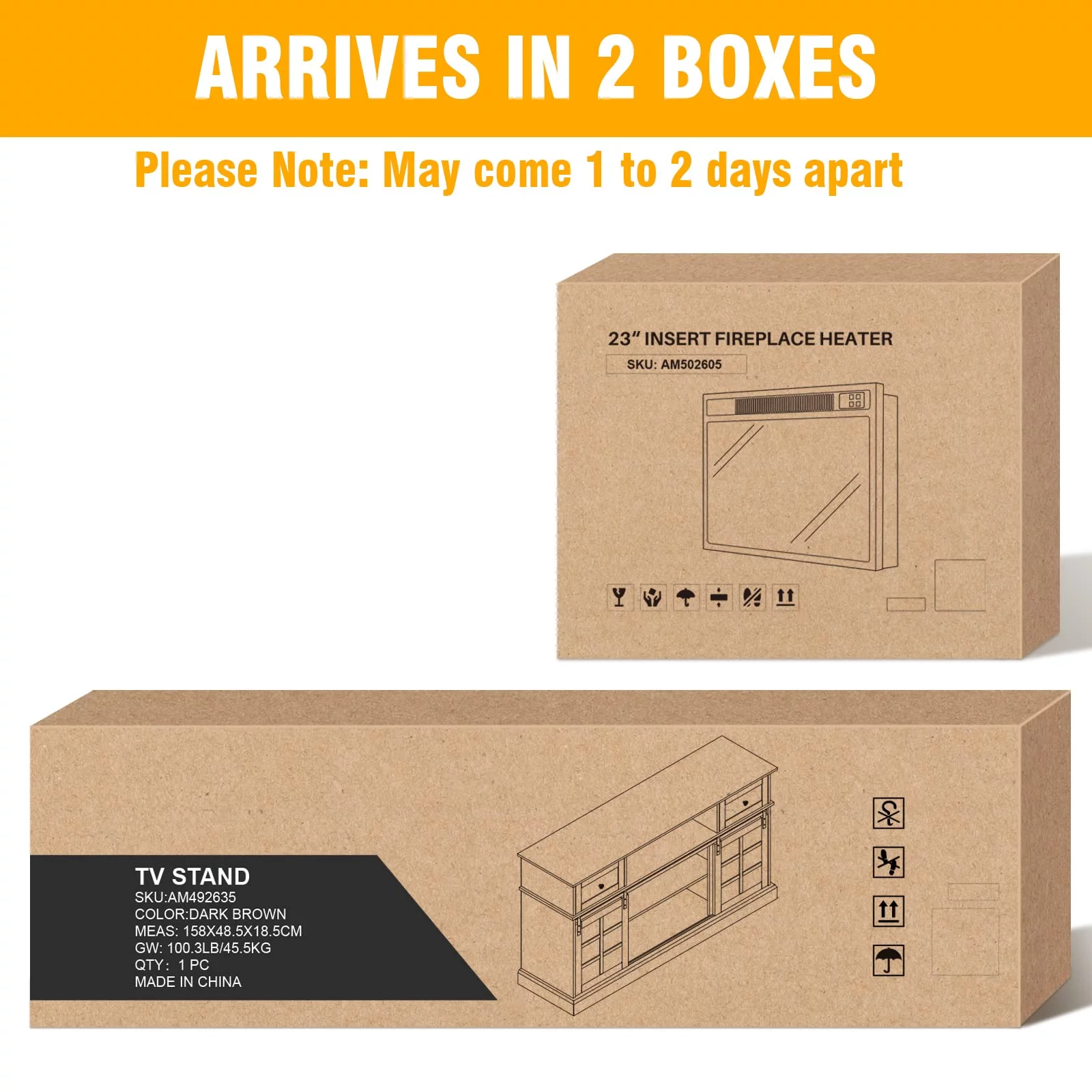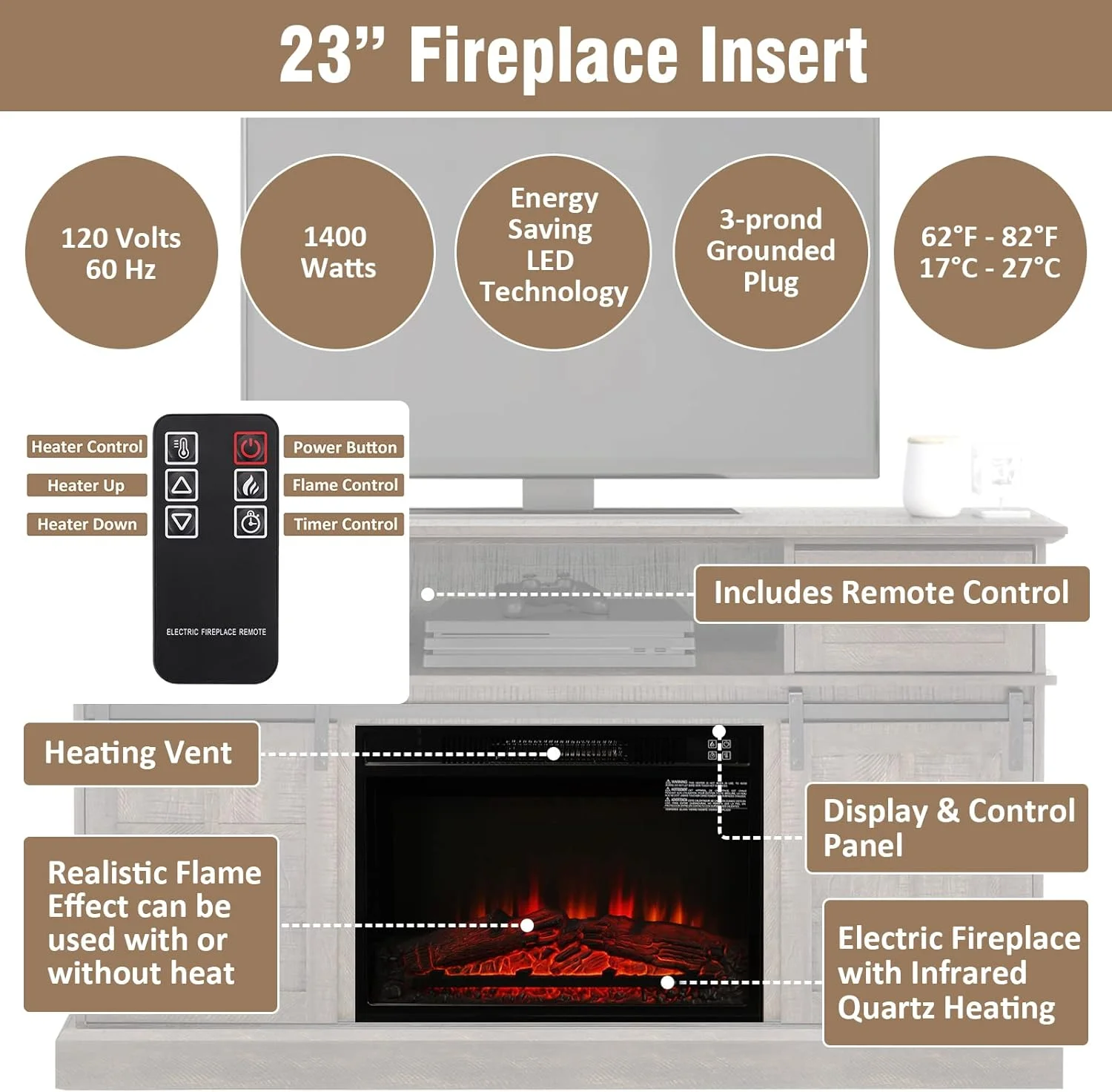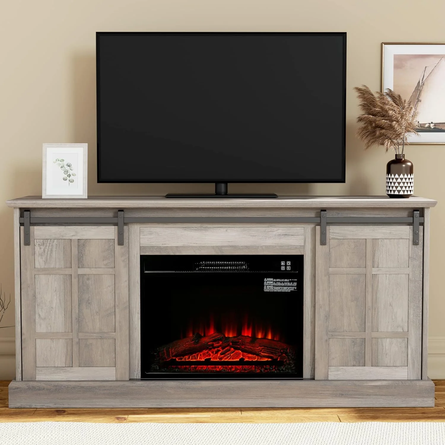 58" Farmhouse TV Stand with 23" Electric Fireplace, Entertainment Center, Fireplace TV Console with Barn Doors for Living Room, Gray Wash