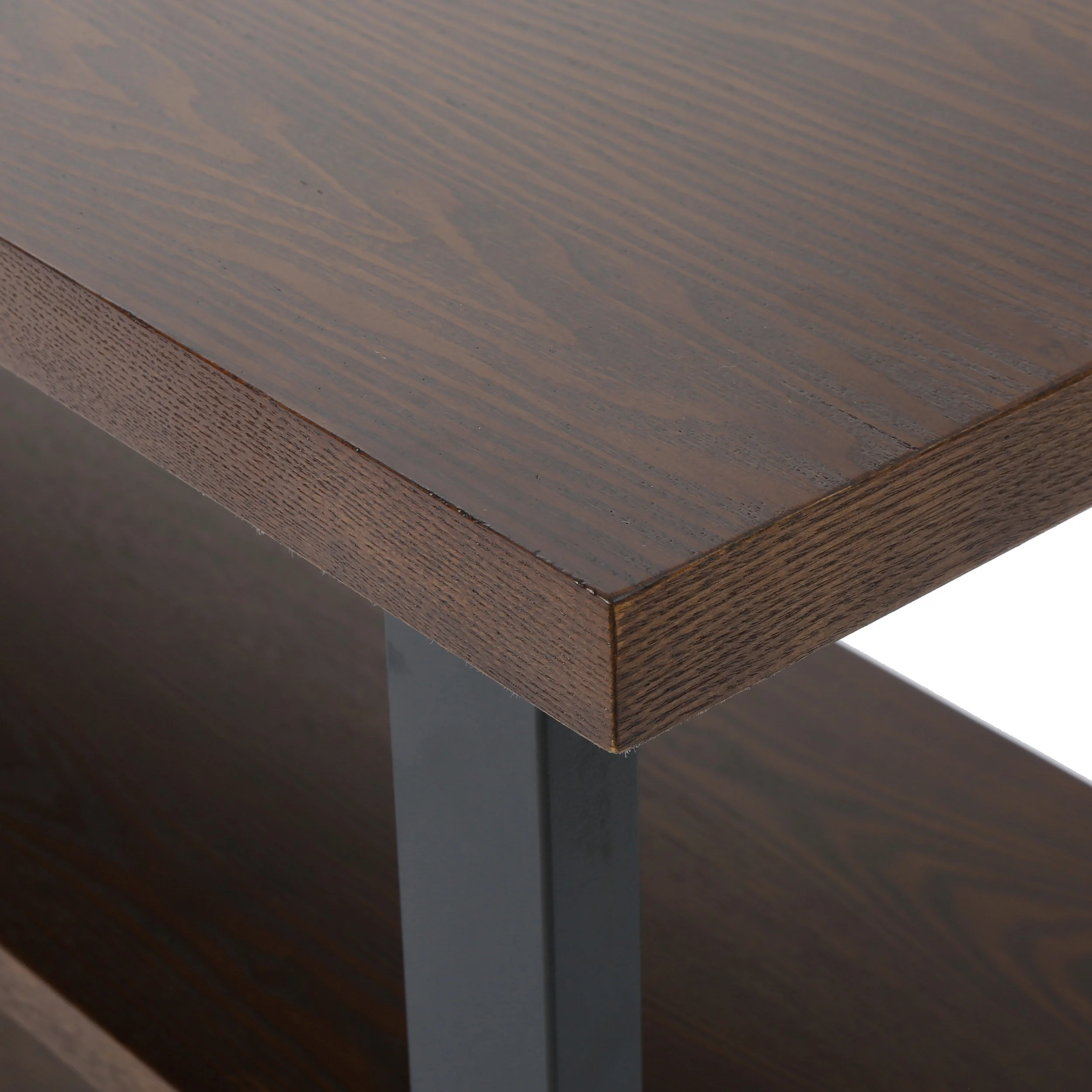 GDF Studio Tricou Modern Industrial Faux Wood 2 Shelf Bookcase, Dark Brown and Gun Metal