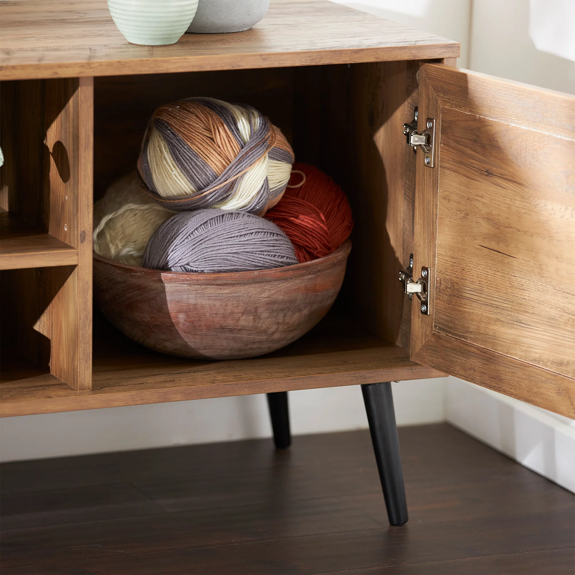 Jomeed Retro Mid Century Wooden TV Entertainment Console w/Storage Shelves