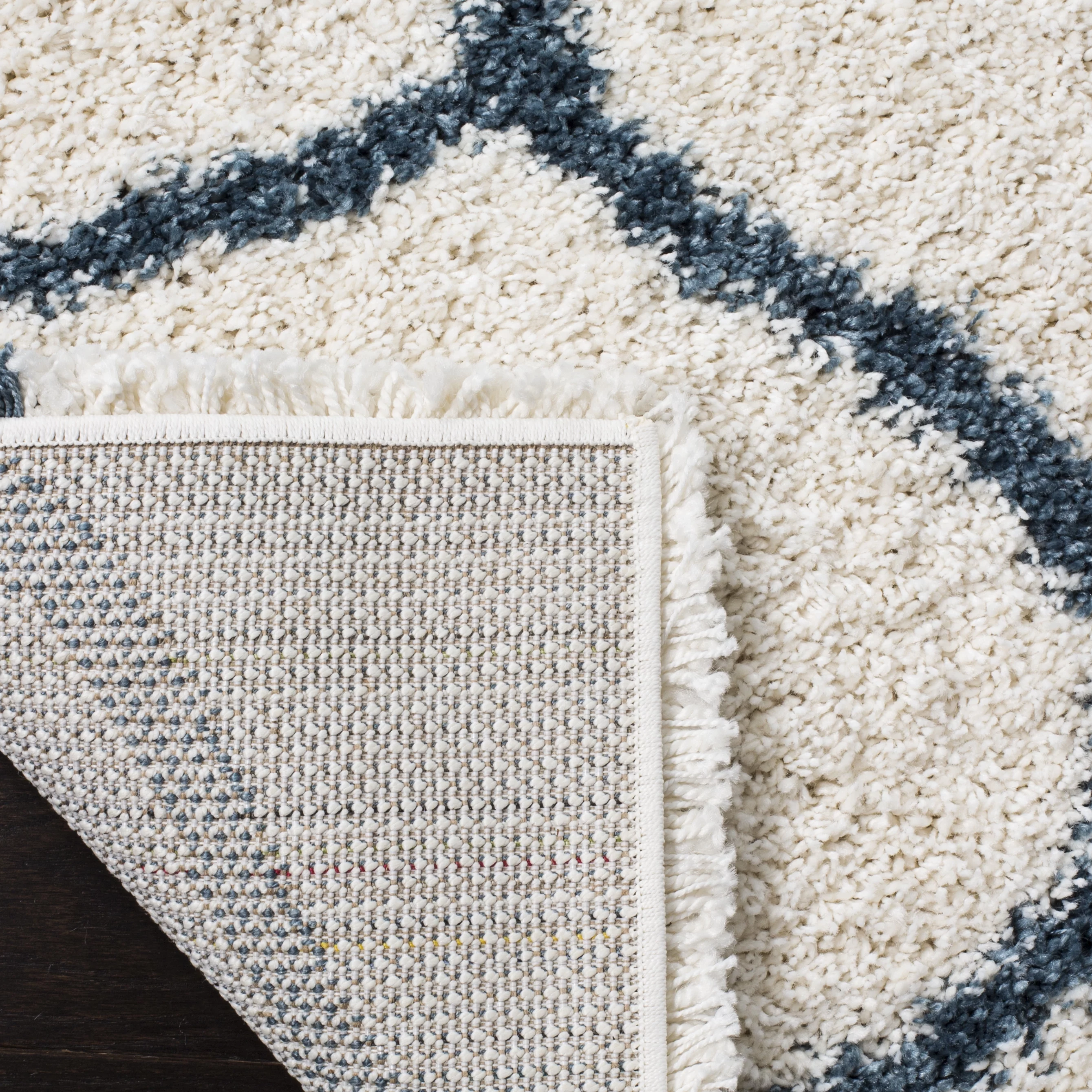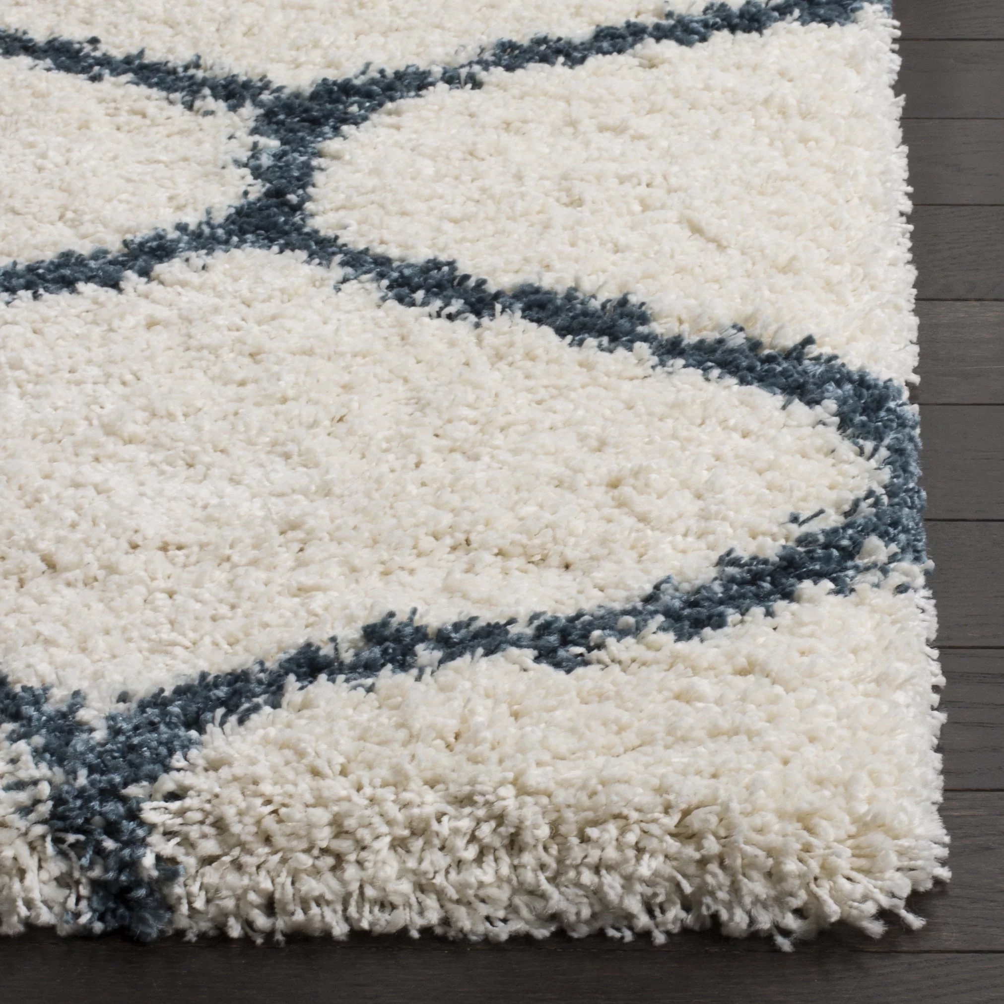 SAFAVIEH Hudson Arline Geometric Shag Area Rug, Ivory/Slate Blue, 7' x 7' Square
