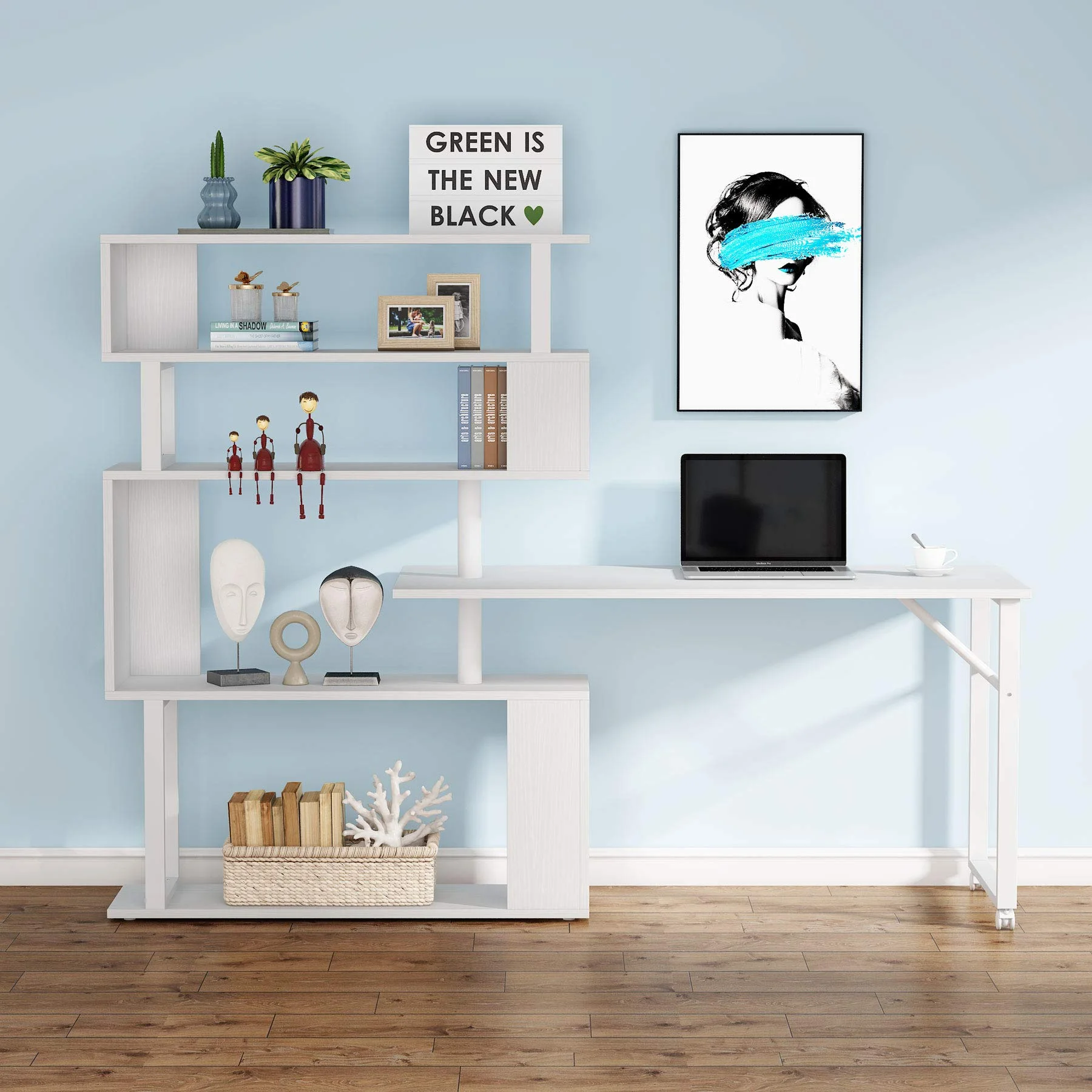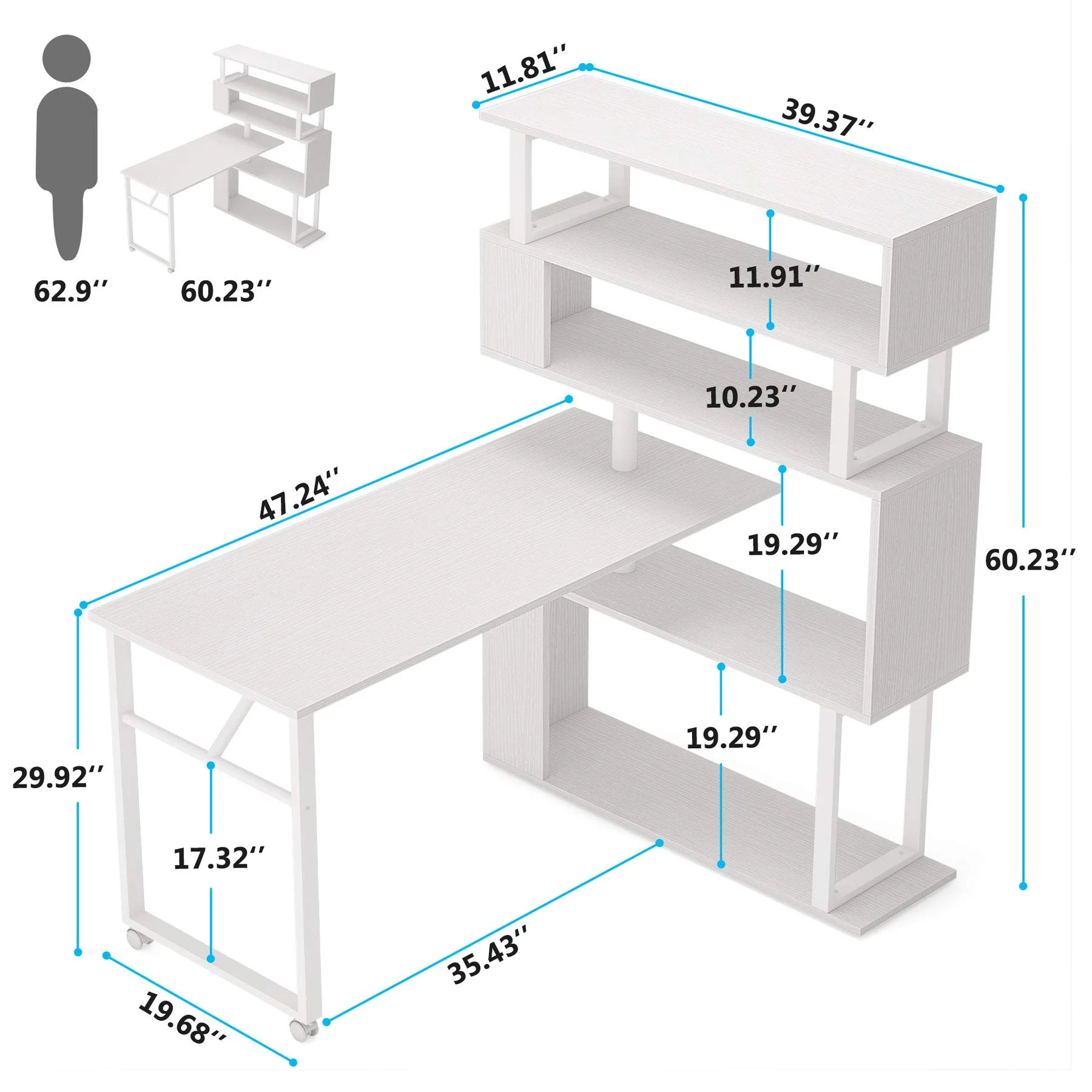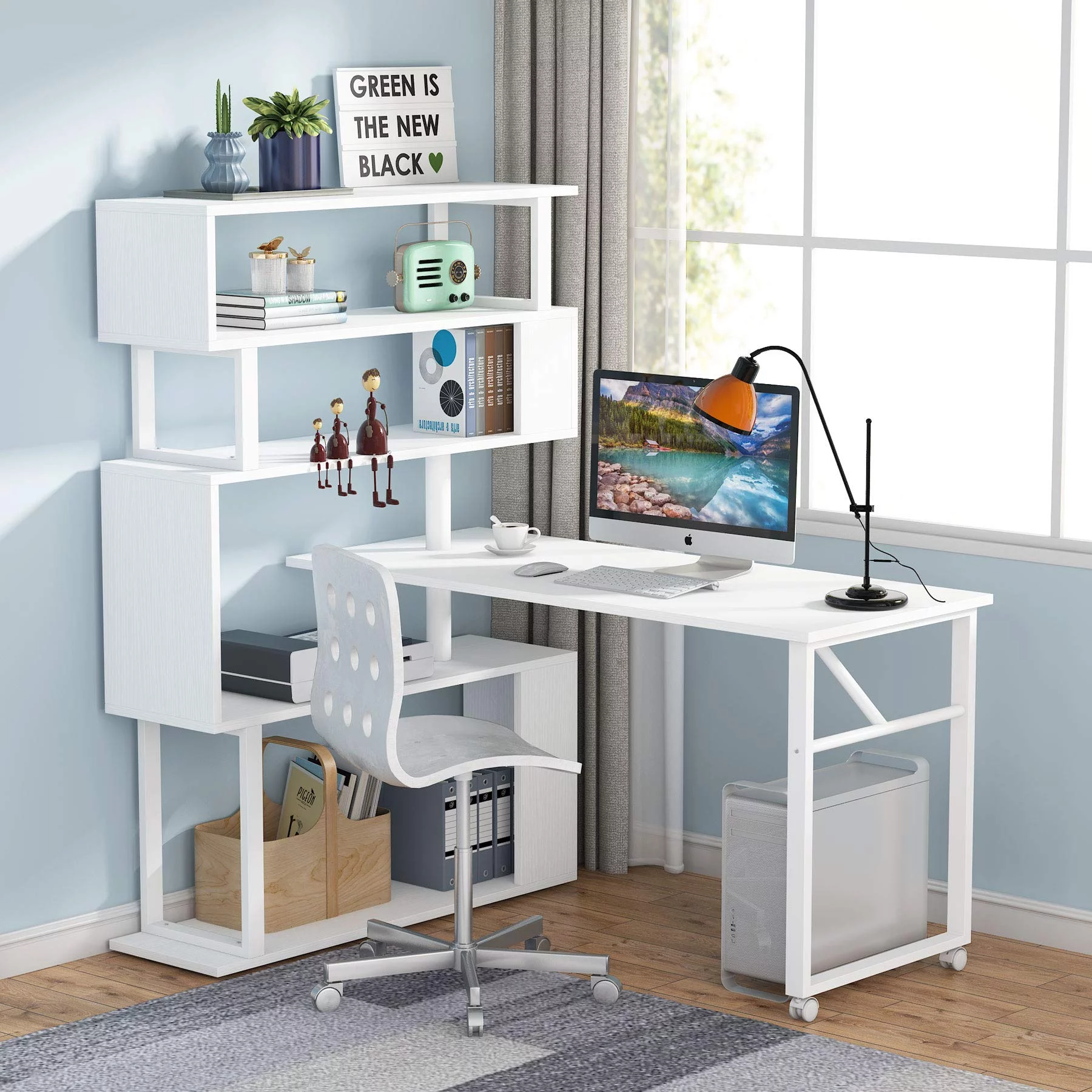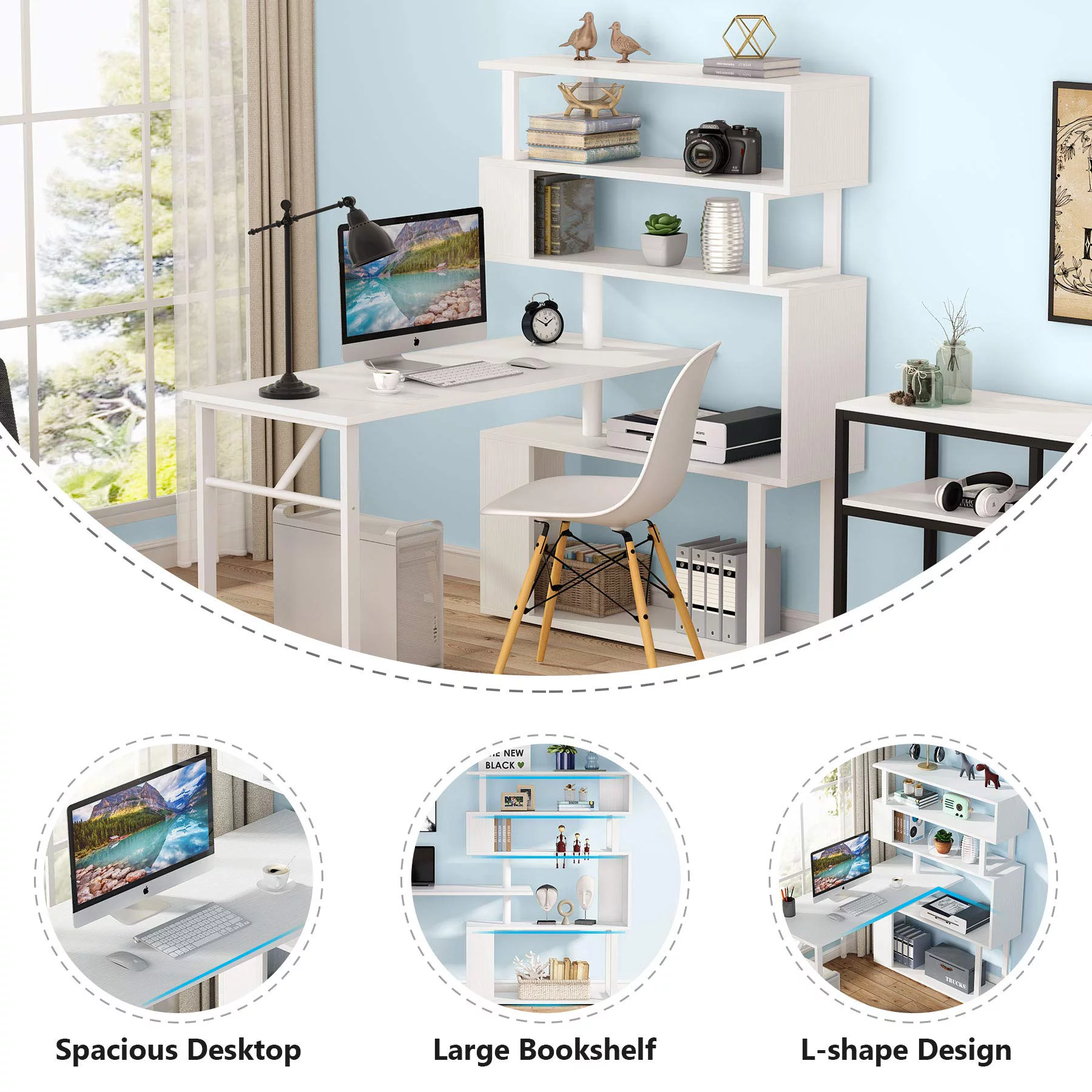 Tribesigns Rotating L Shaped Computer Desk with Storage Bookshelf, Reversible Corner Computer Desk for Home Office