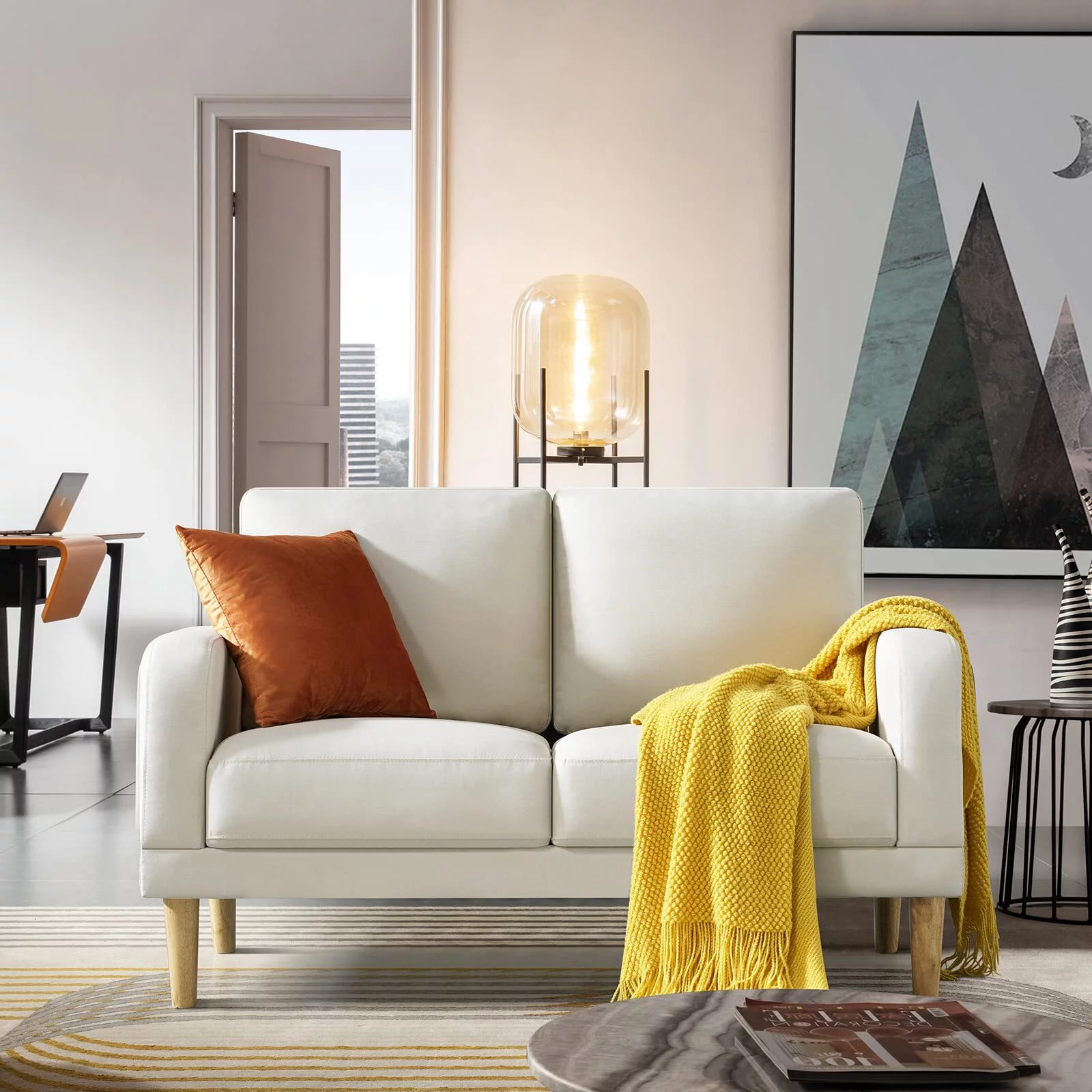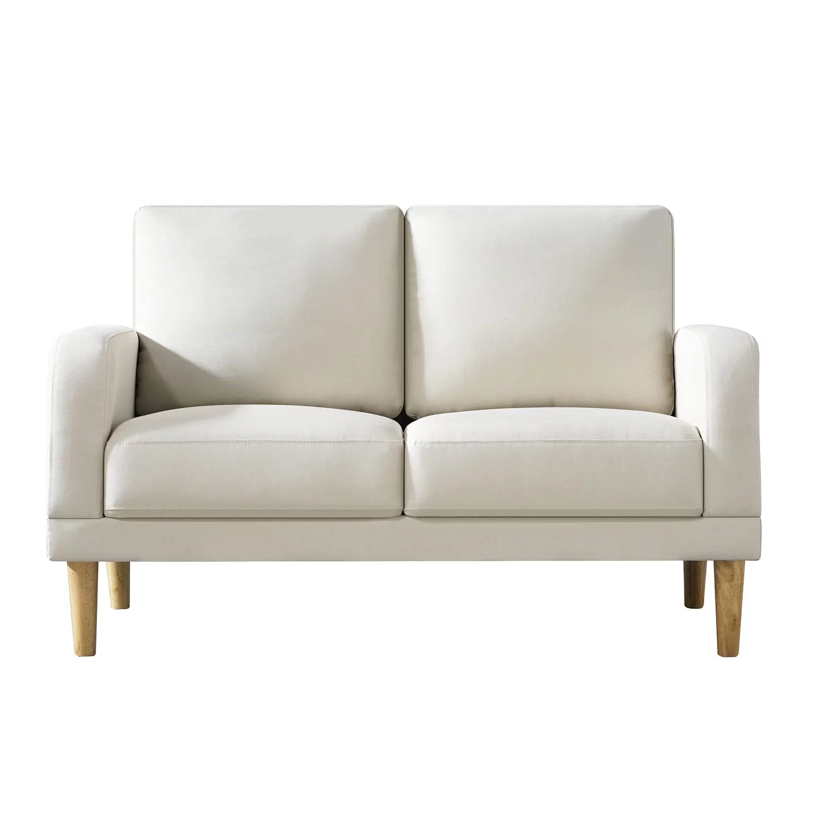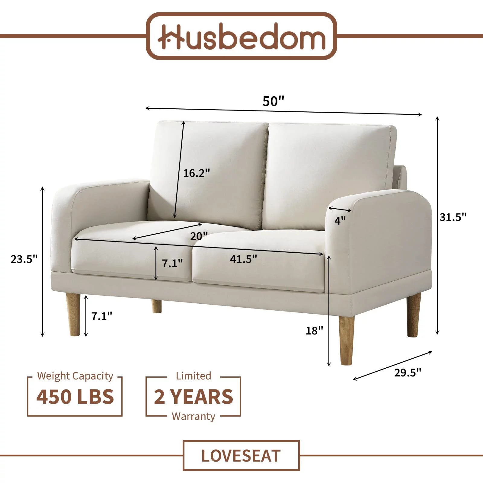 Husbedom 50" Small Modern Loveseat Sofa, Mid-Century Upholstered Loveseat 2-Seater Button Tufted Sofa Coach with 2 Removable Backs for Small Spaces, Living Room and Bedroom, Beige