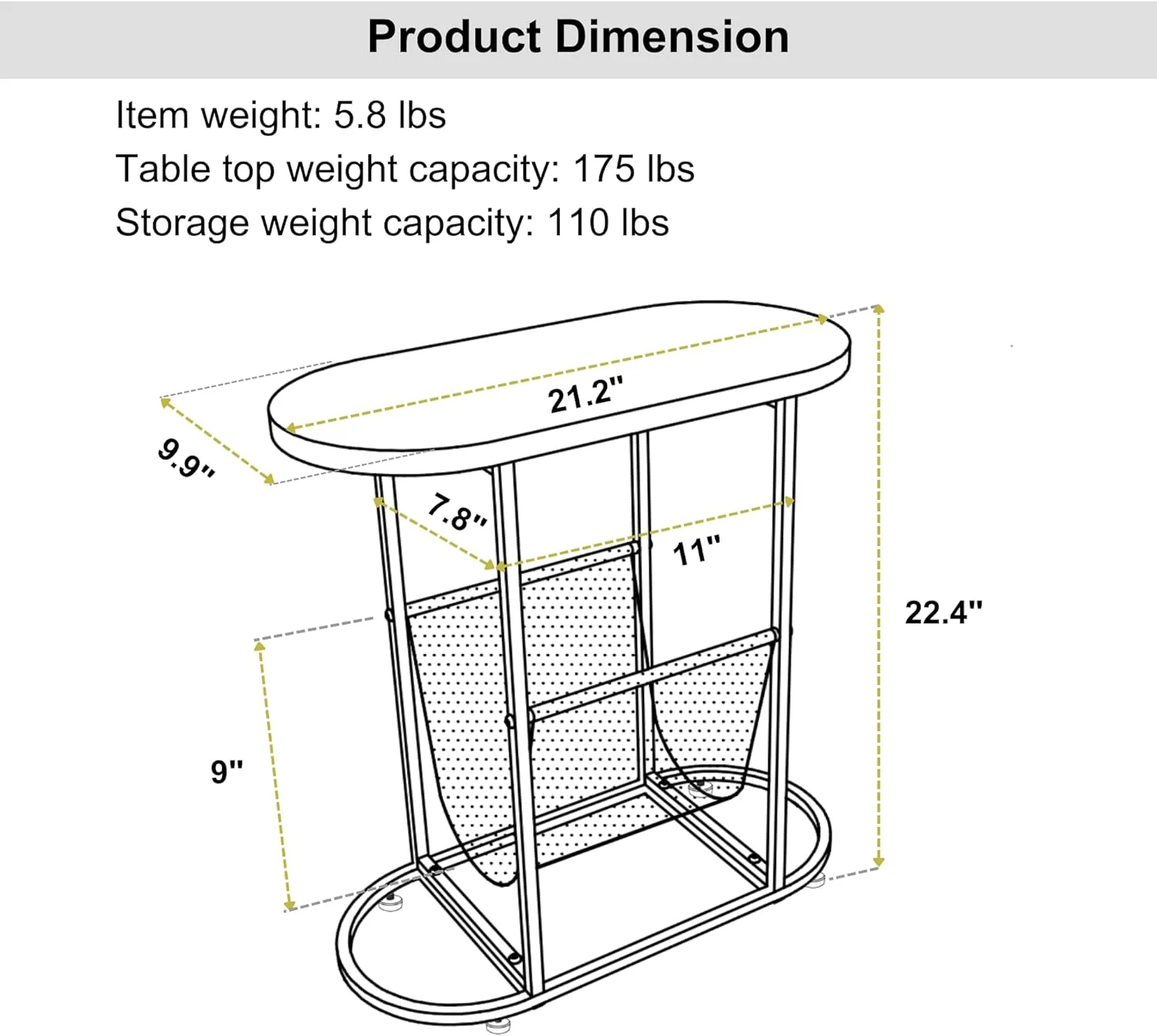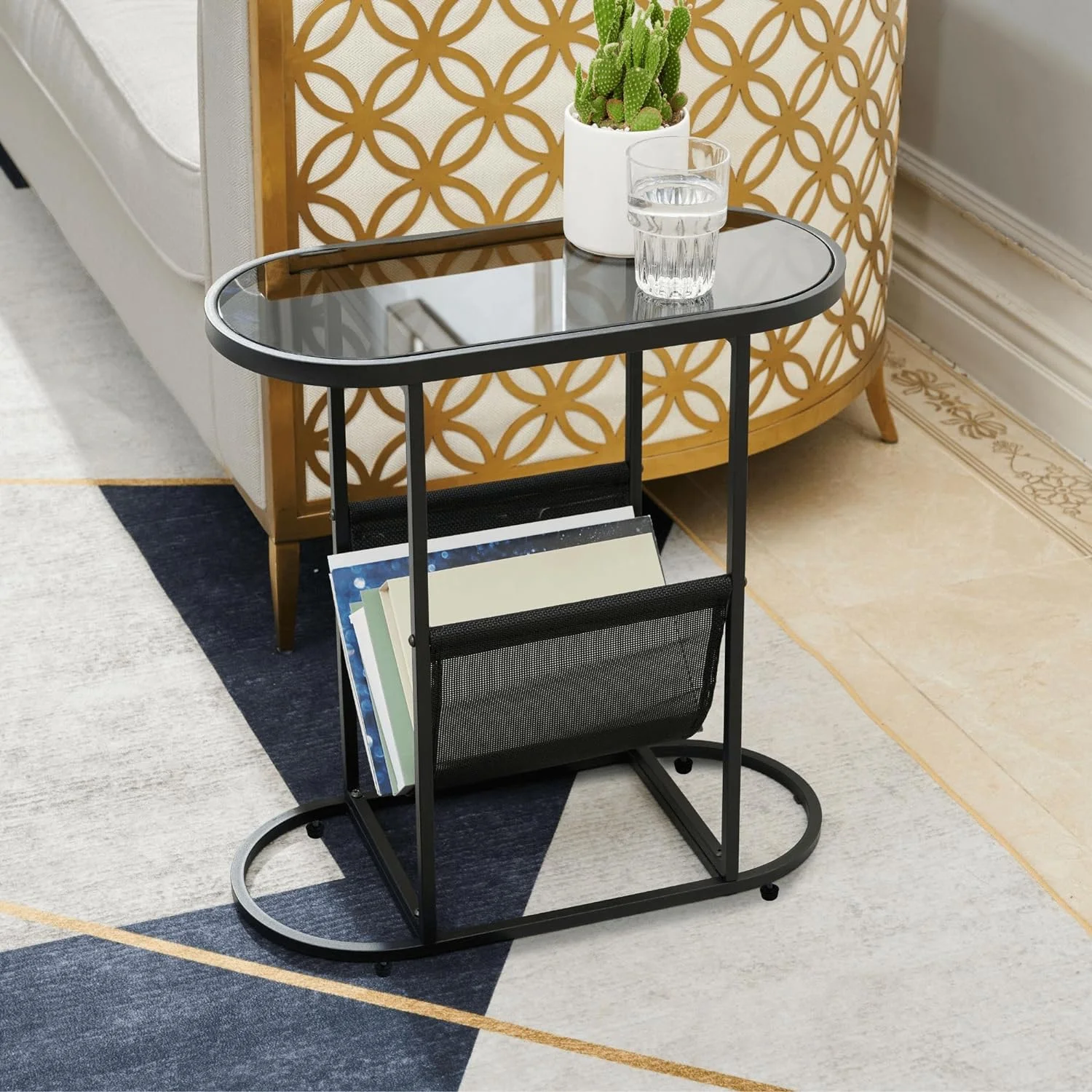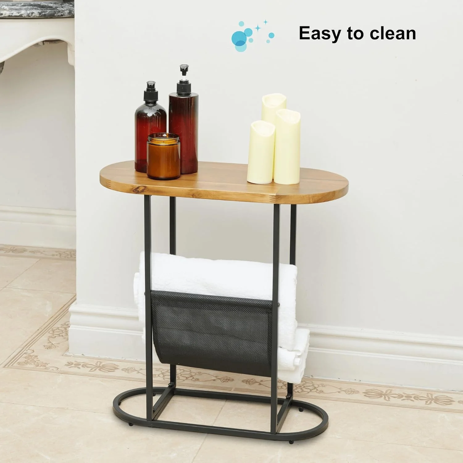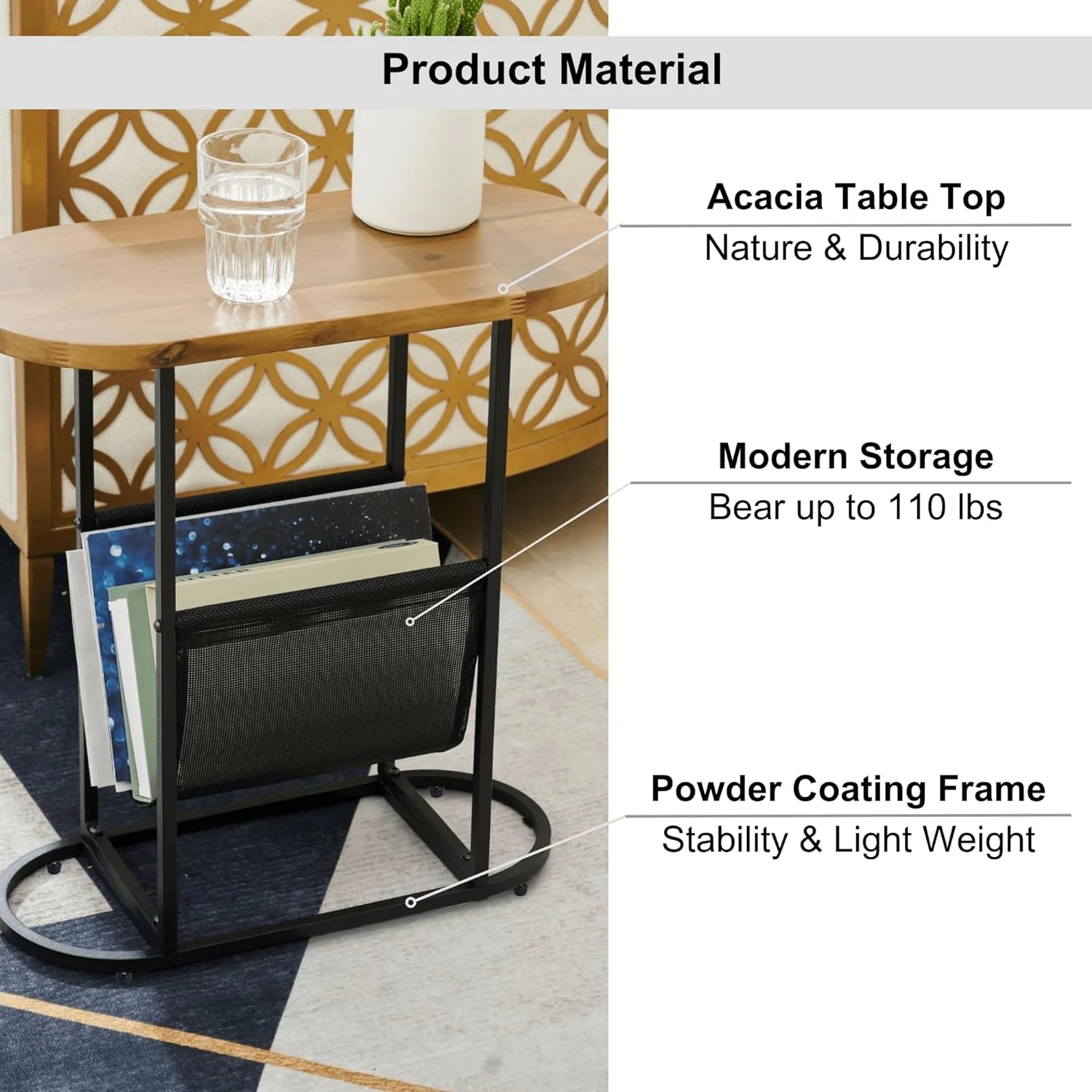 Tabaray Oval End Table, Acacia Wood Side Table with Metal Frame Magazine Organizer Holder Storage Space Small Tables (Wood Top-1pcs)