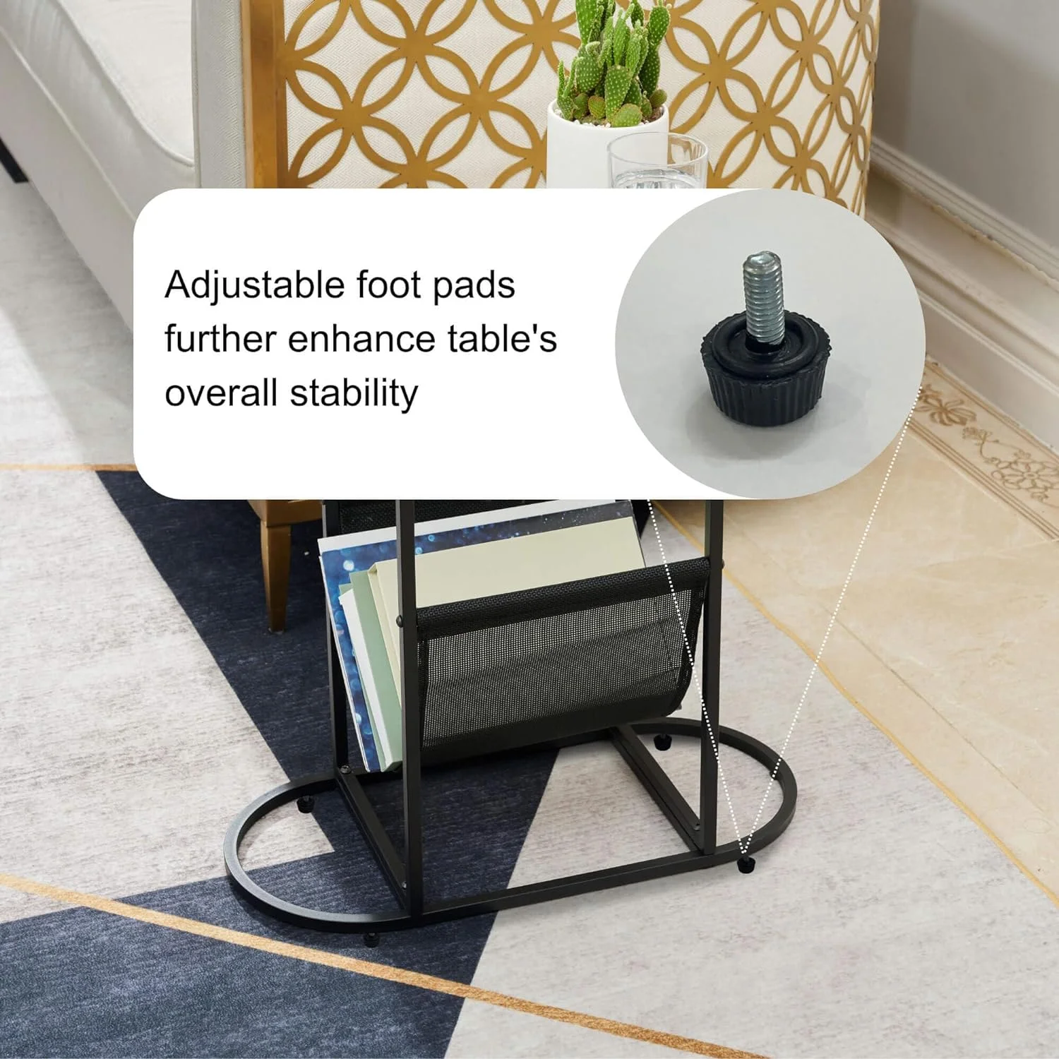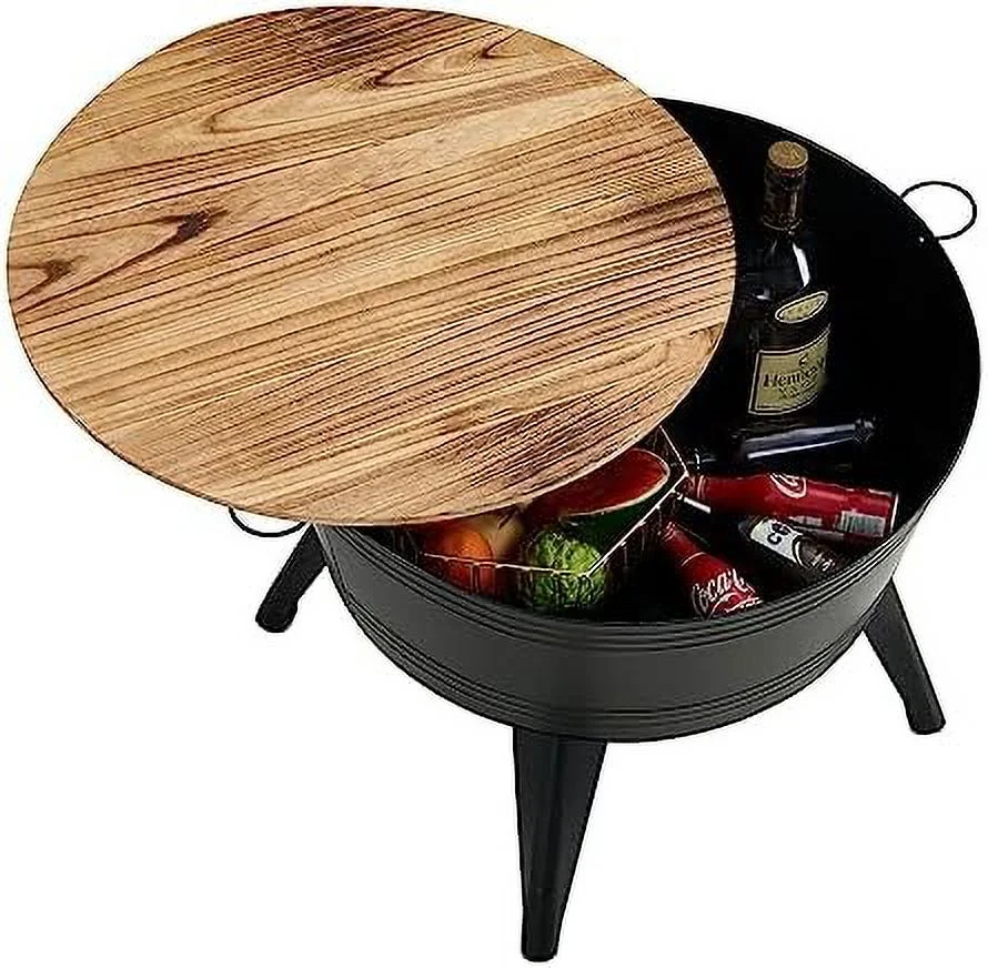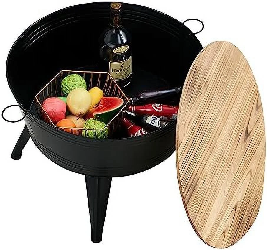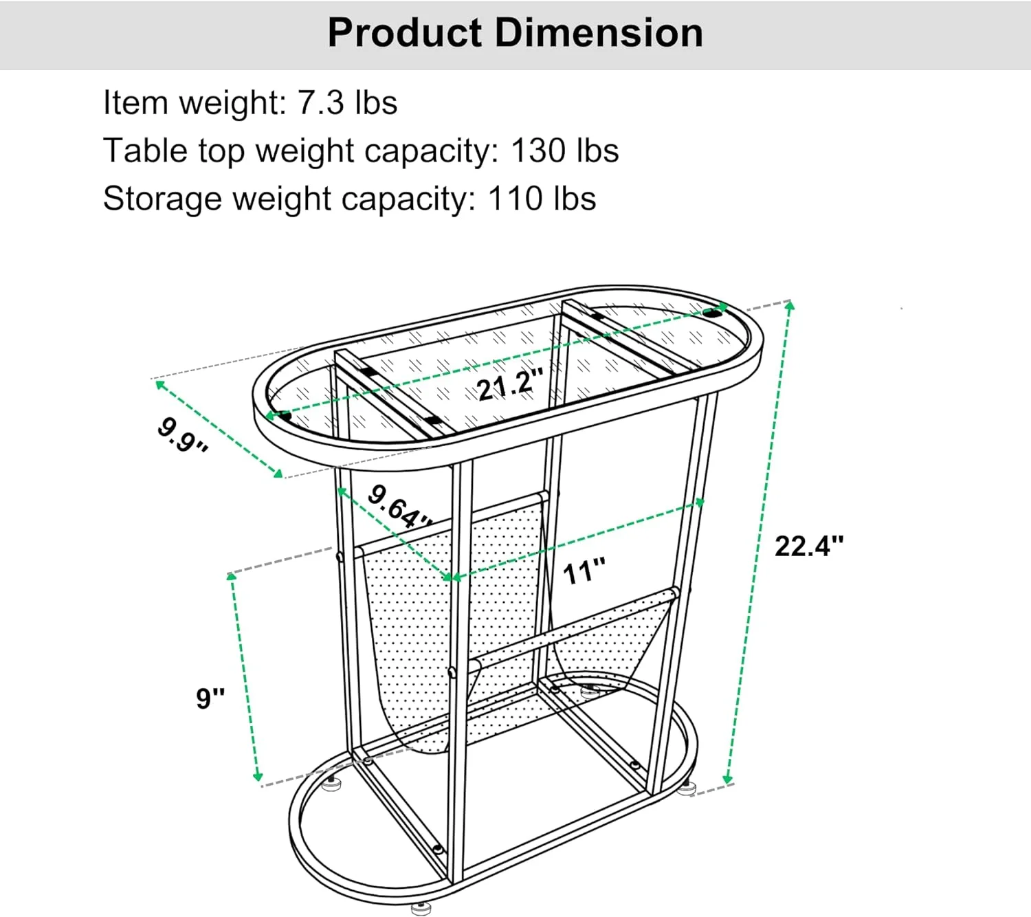 Tabaray Oval End Table, Acacia Wood Side Table with Metal Frame Magazine Organizer Holder Storage Space Small Tables (Wood Top-1pcs)