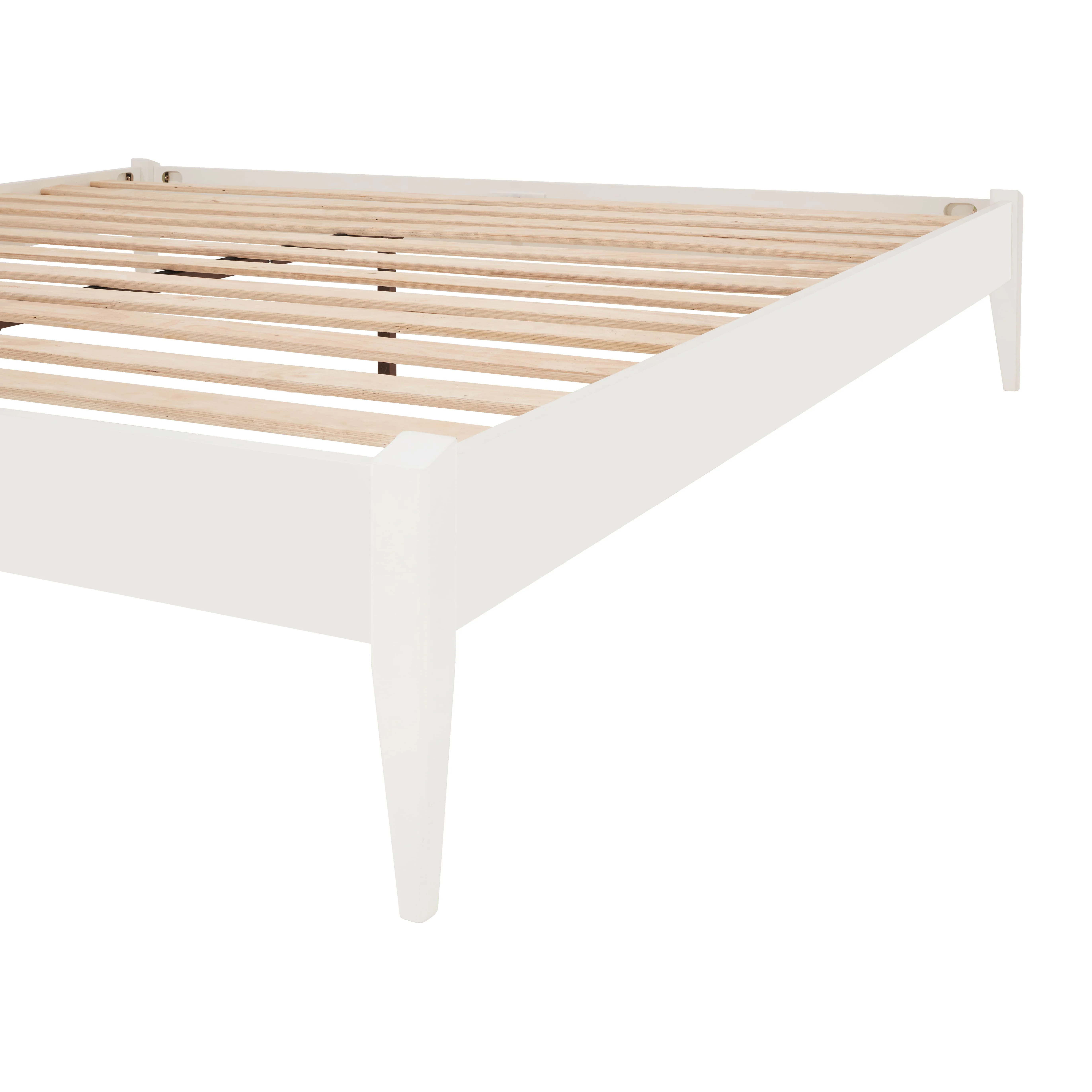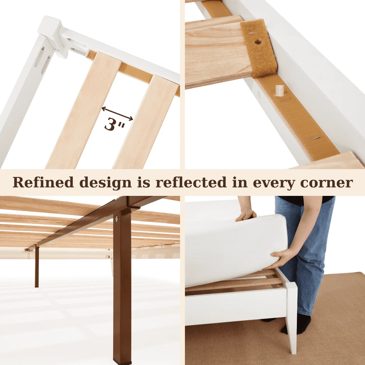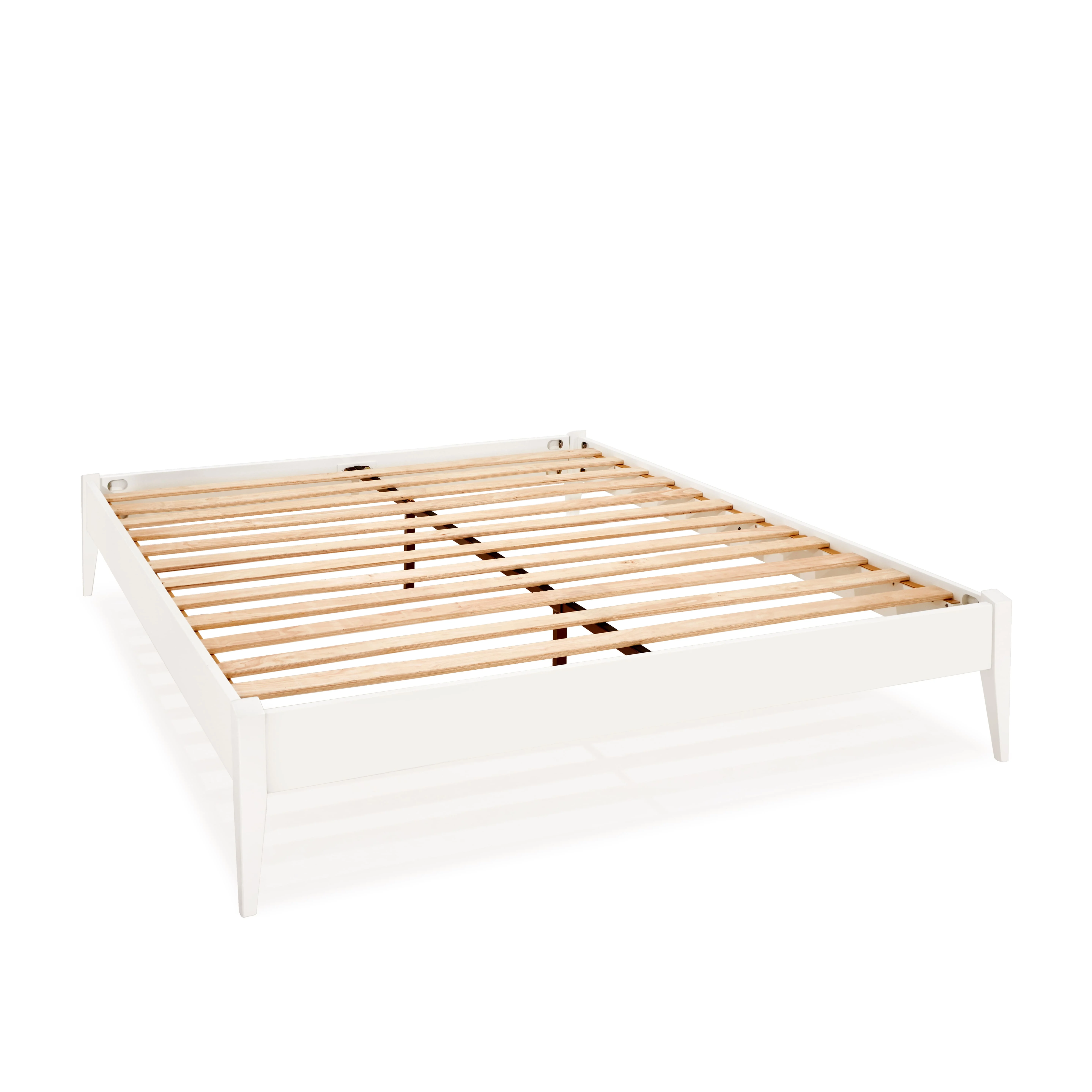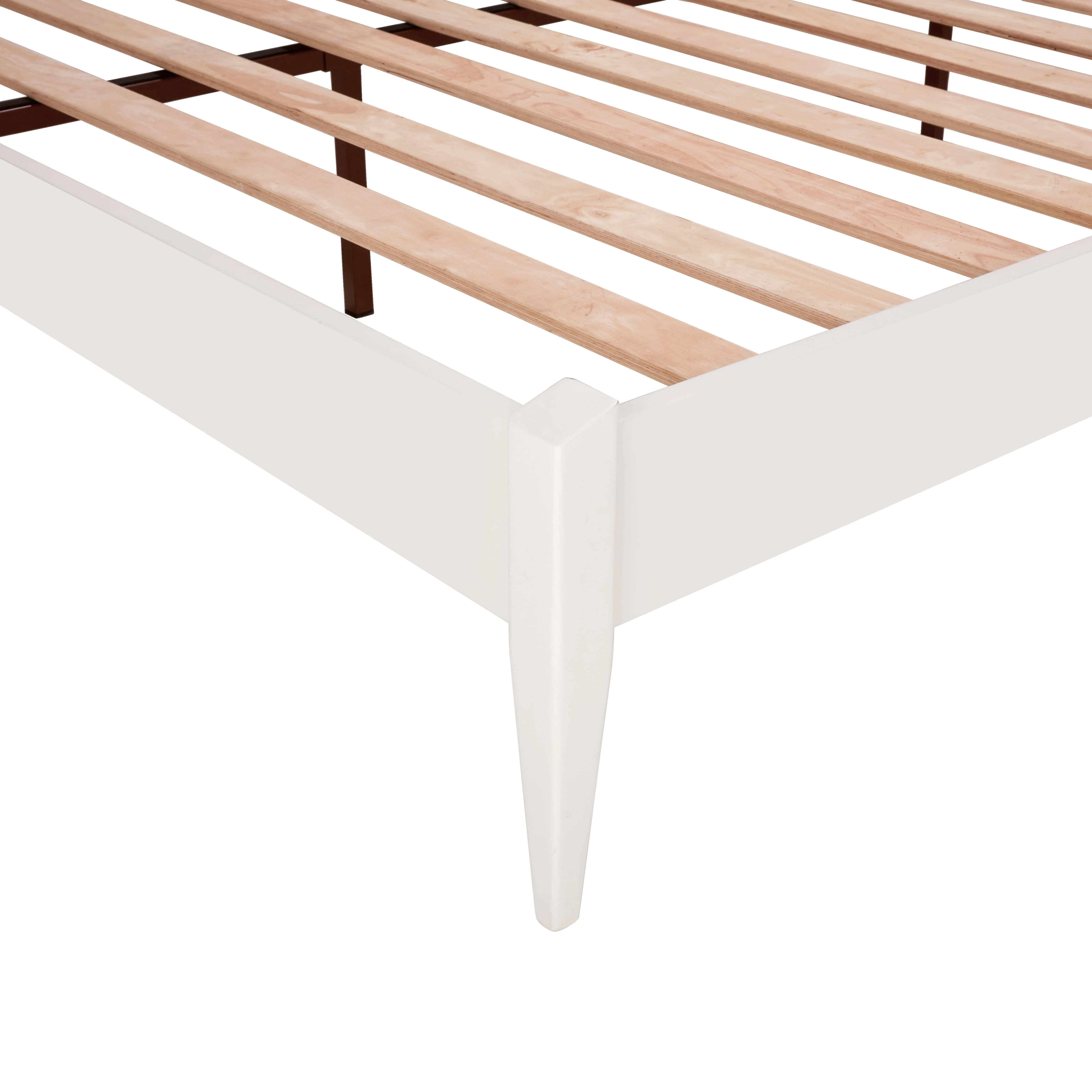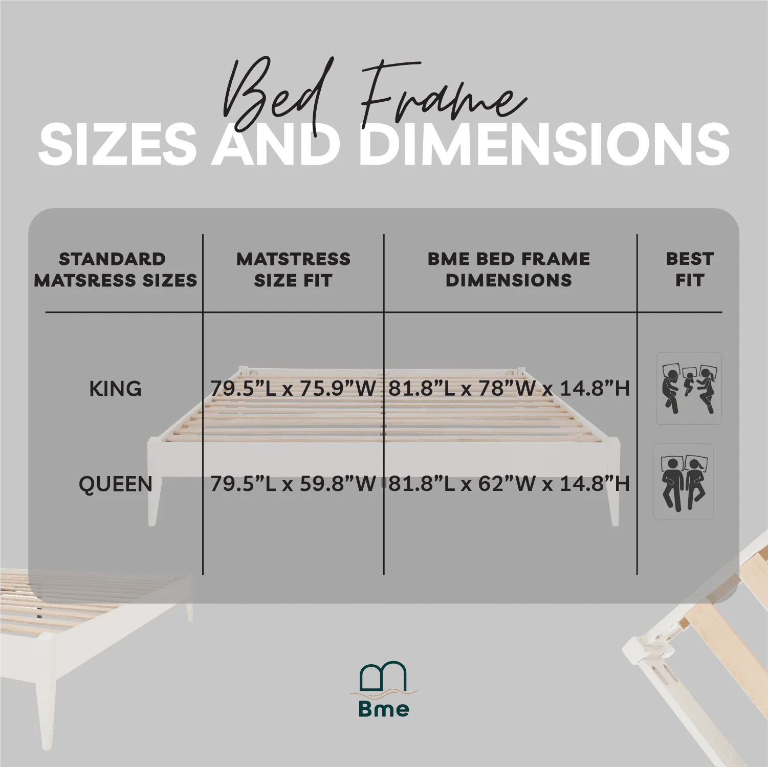 BME Keelin 15" Platform Bed Frame Queen, Modern, Solid Wood Bed, Ivory White