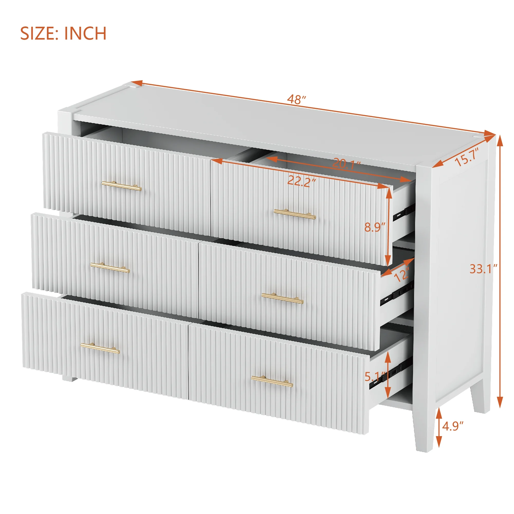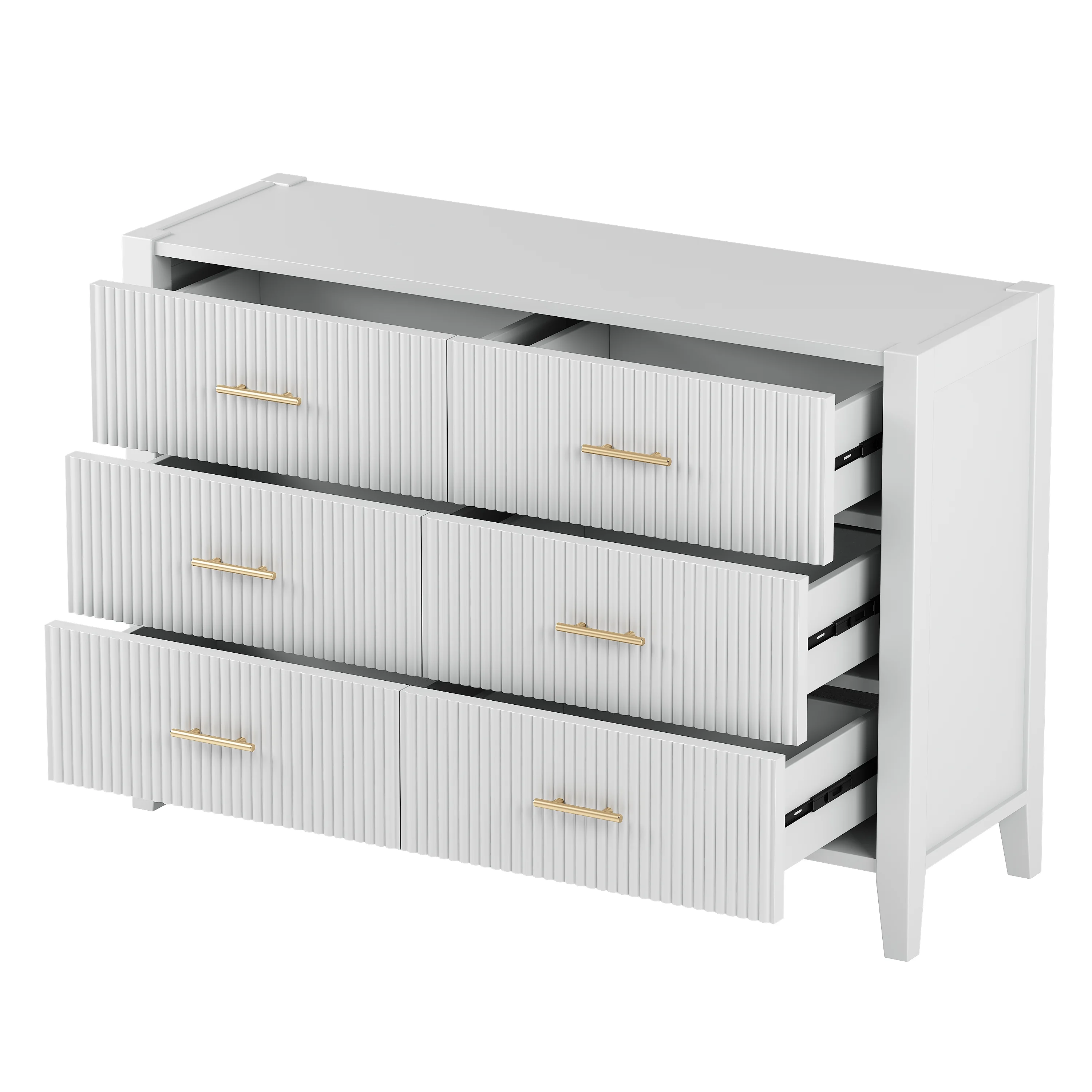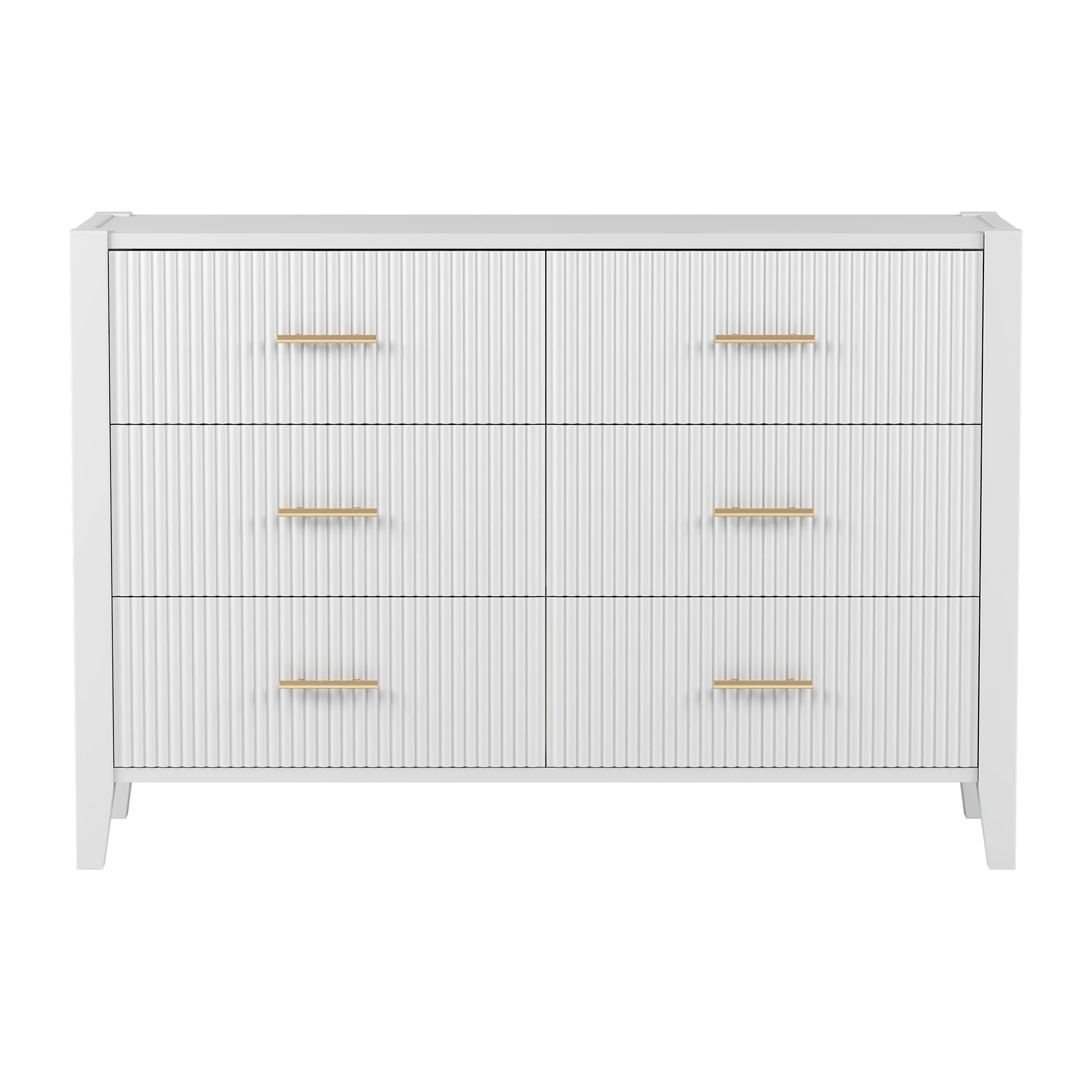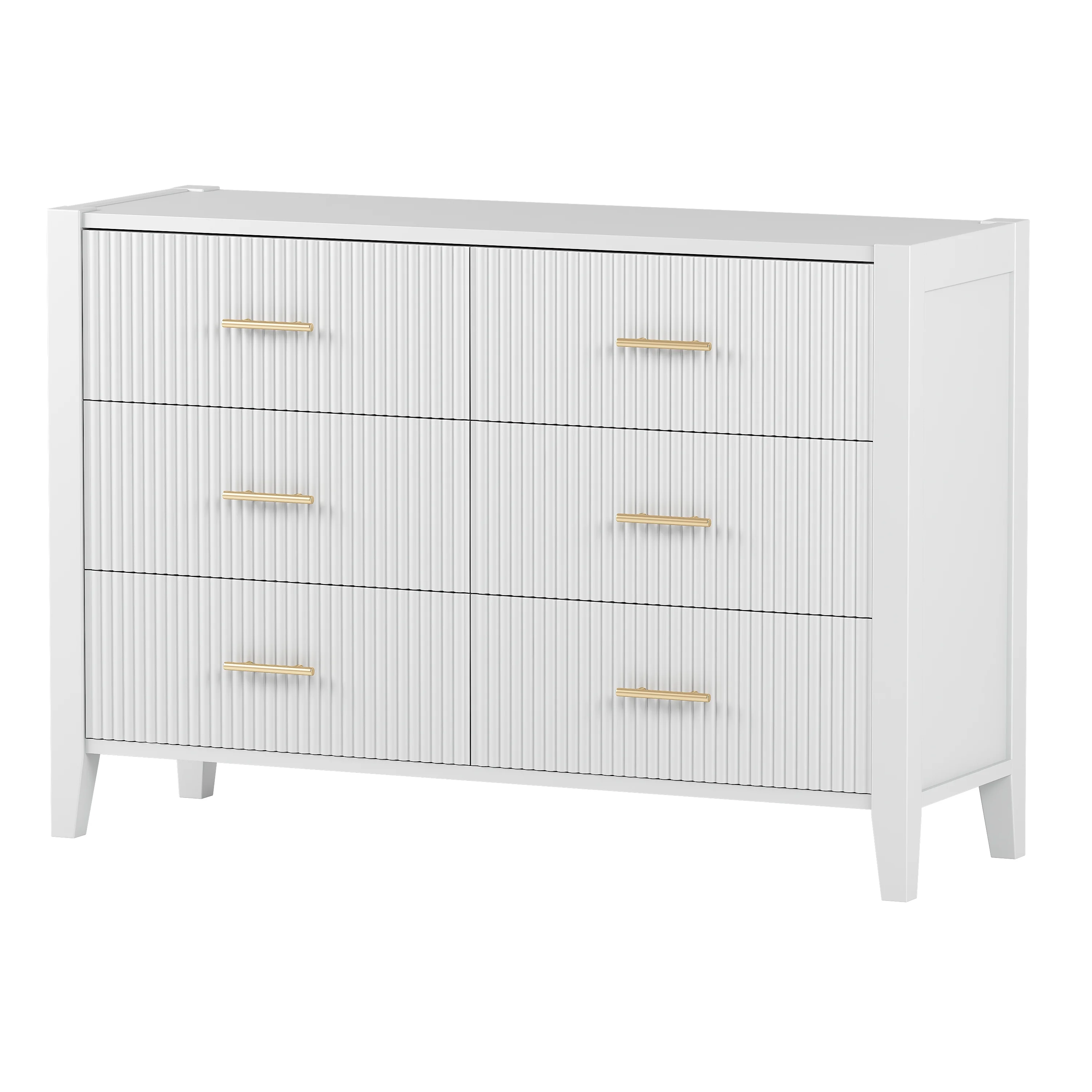 Glavbiku Modern 6 Drawer Dresser with Sturdy Metal Leg for Home,Storage Cabinet White Finish,Adult