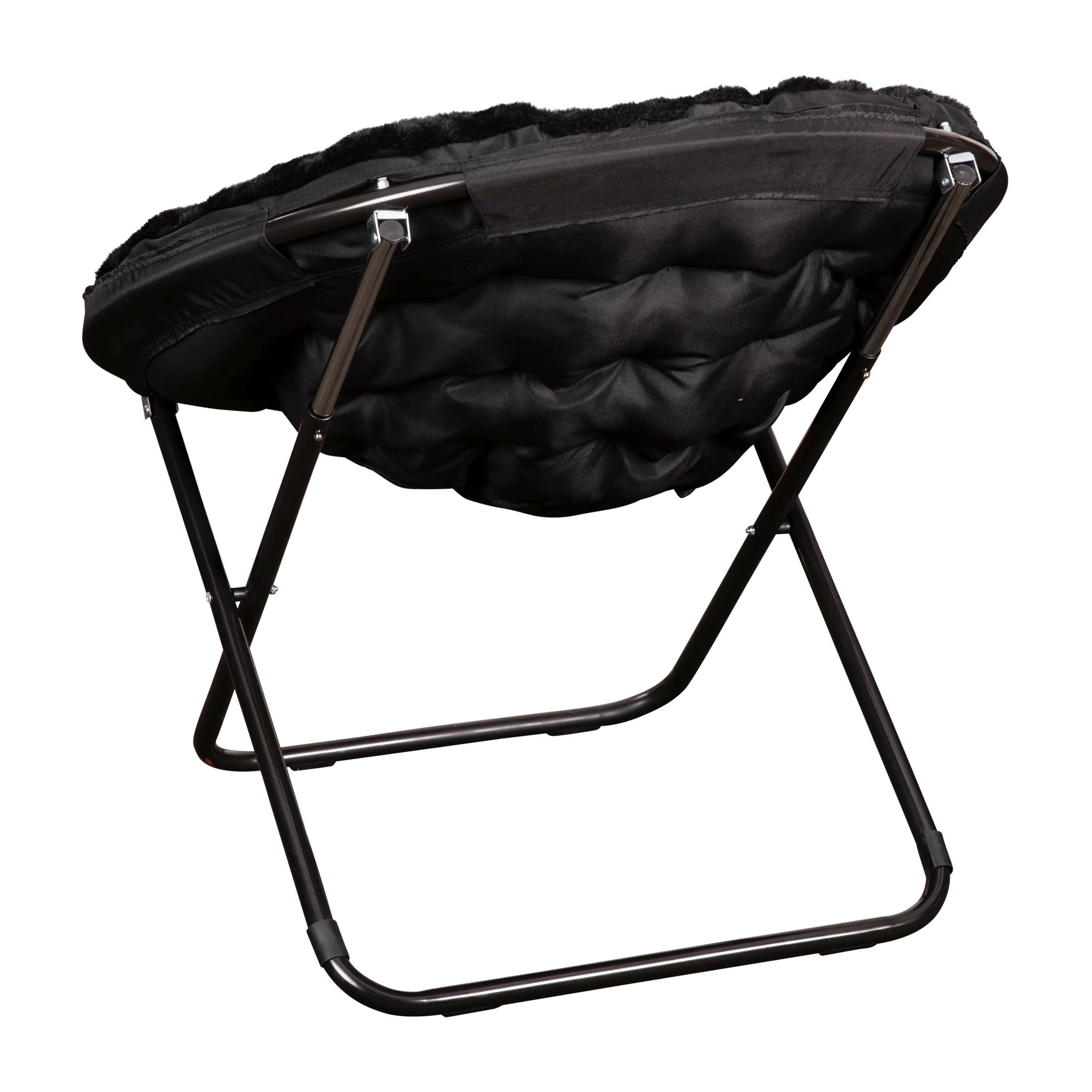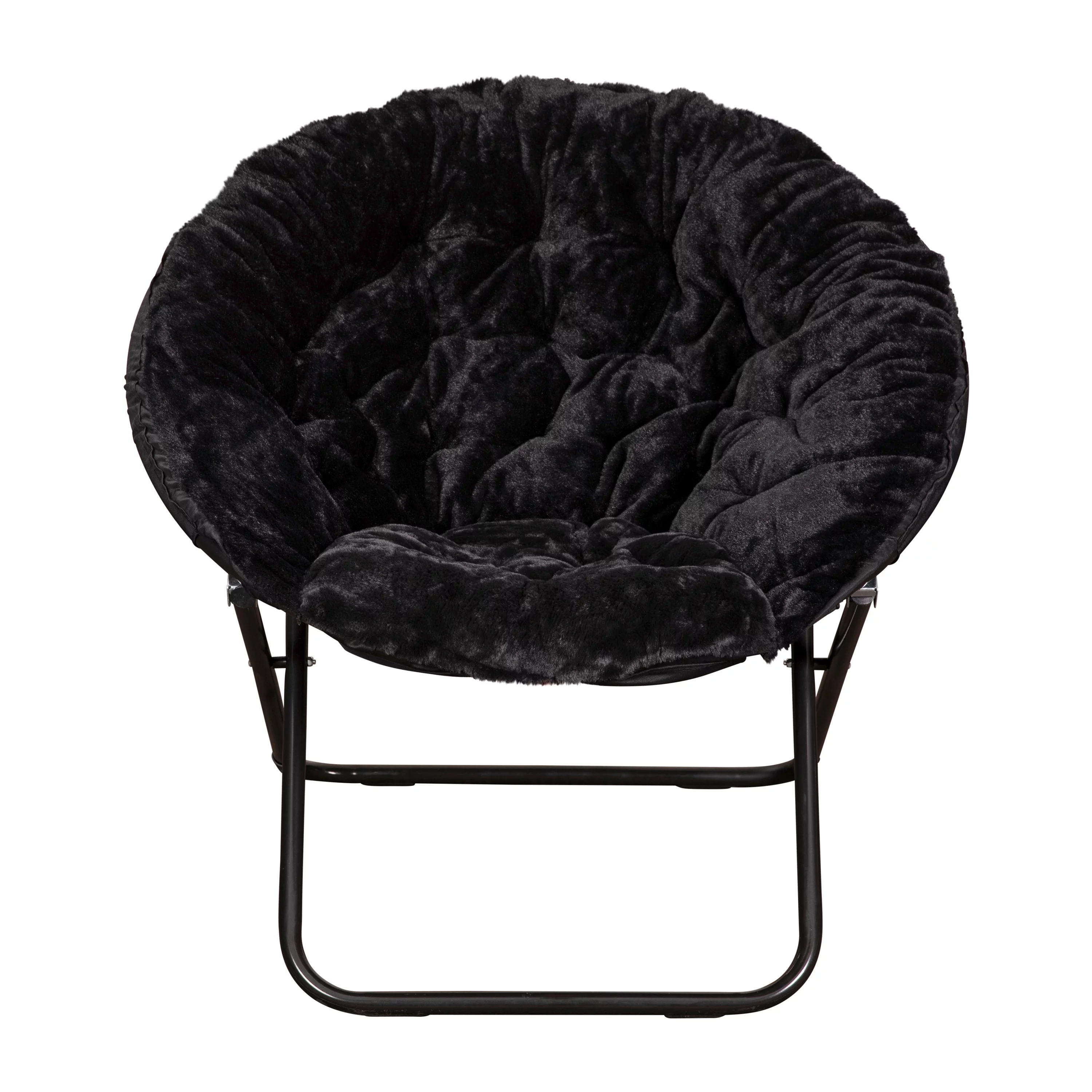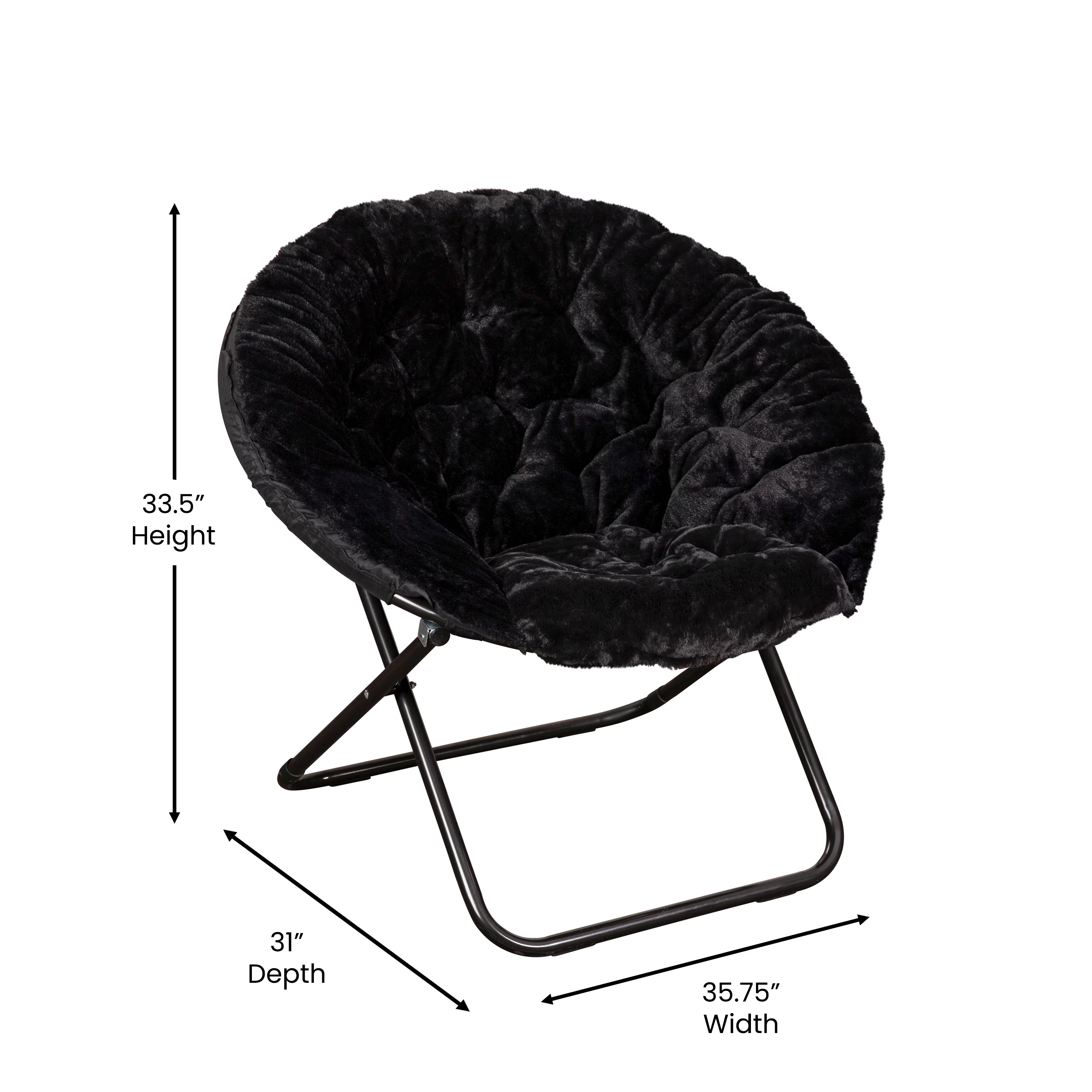 BizChair 38" Oversize Portable Faux Fur Folding Saucer Moon Chair for Dorm and Bedroom, Black Faux Fur/Black Frame