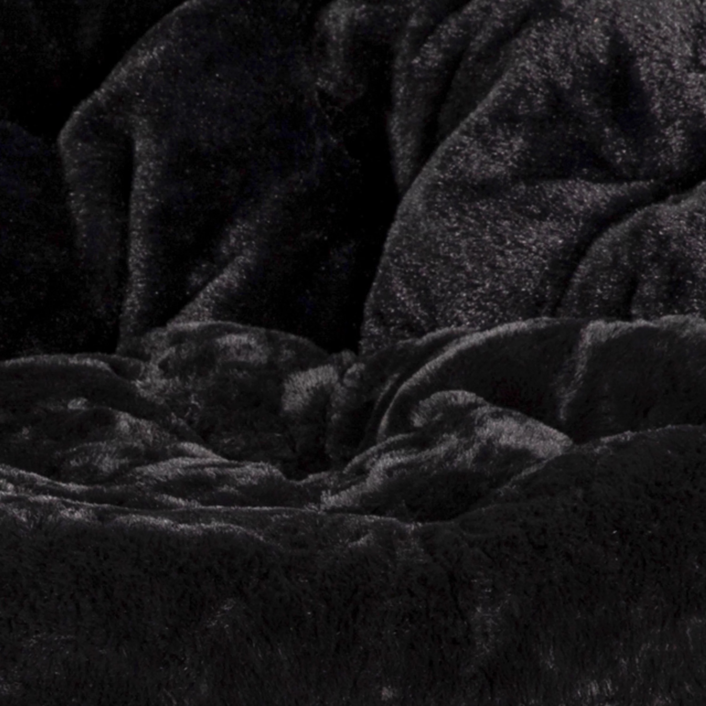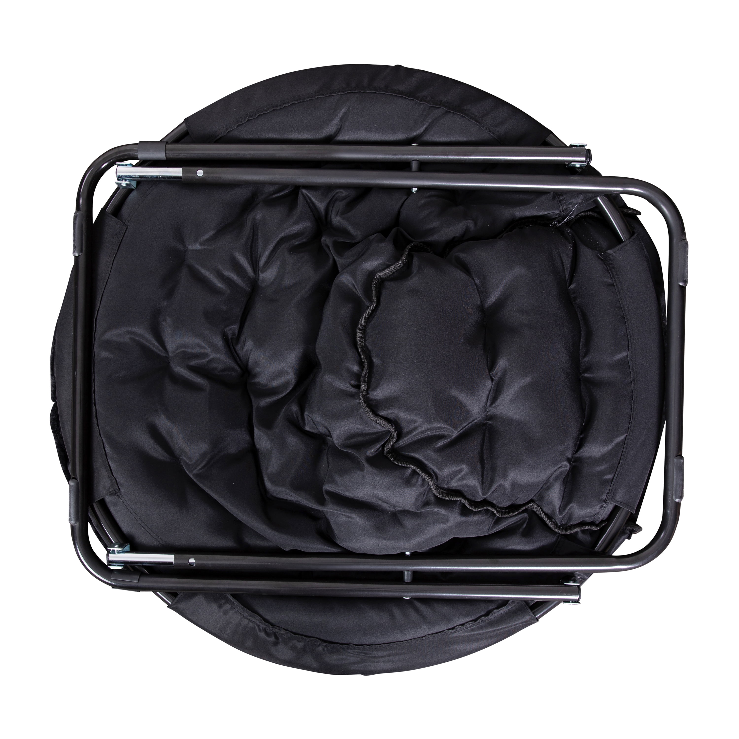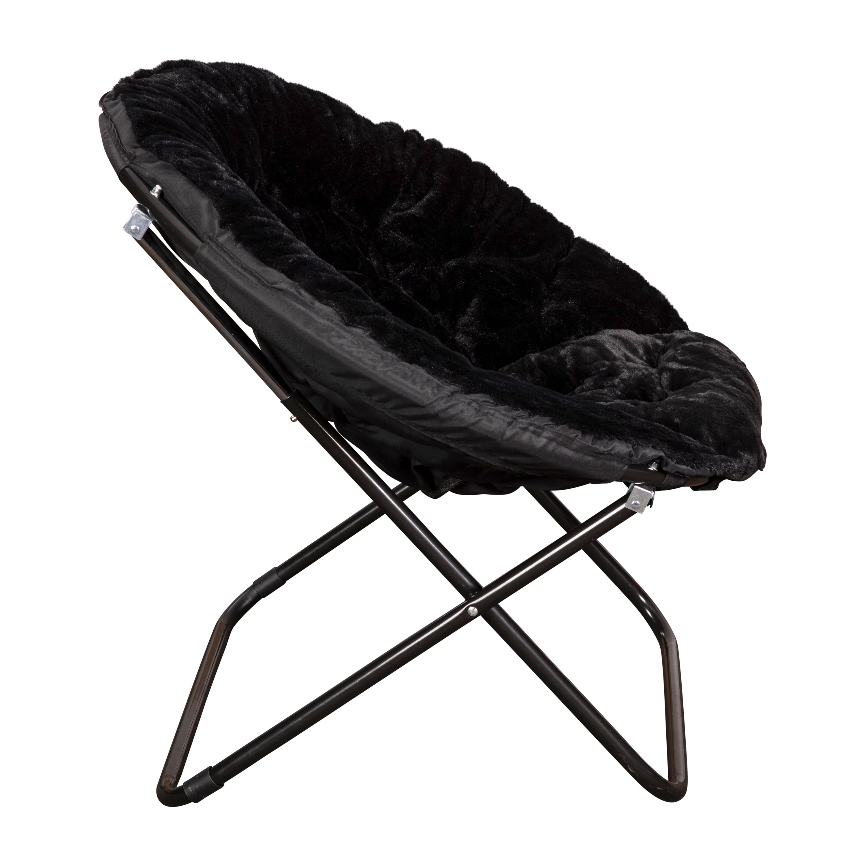 BizChair 38" Oversize Portable Faux Fur Folding Saucer Moon Chair for Dorm and Bedroom, Black Faux Fur/Black Frame