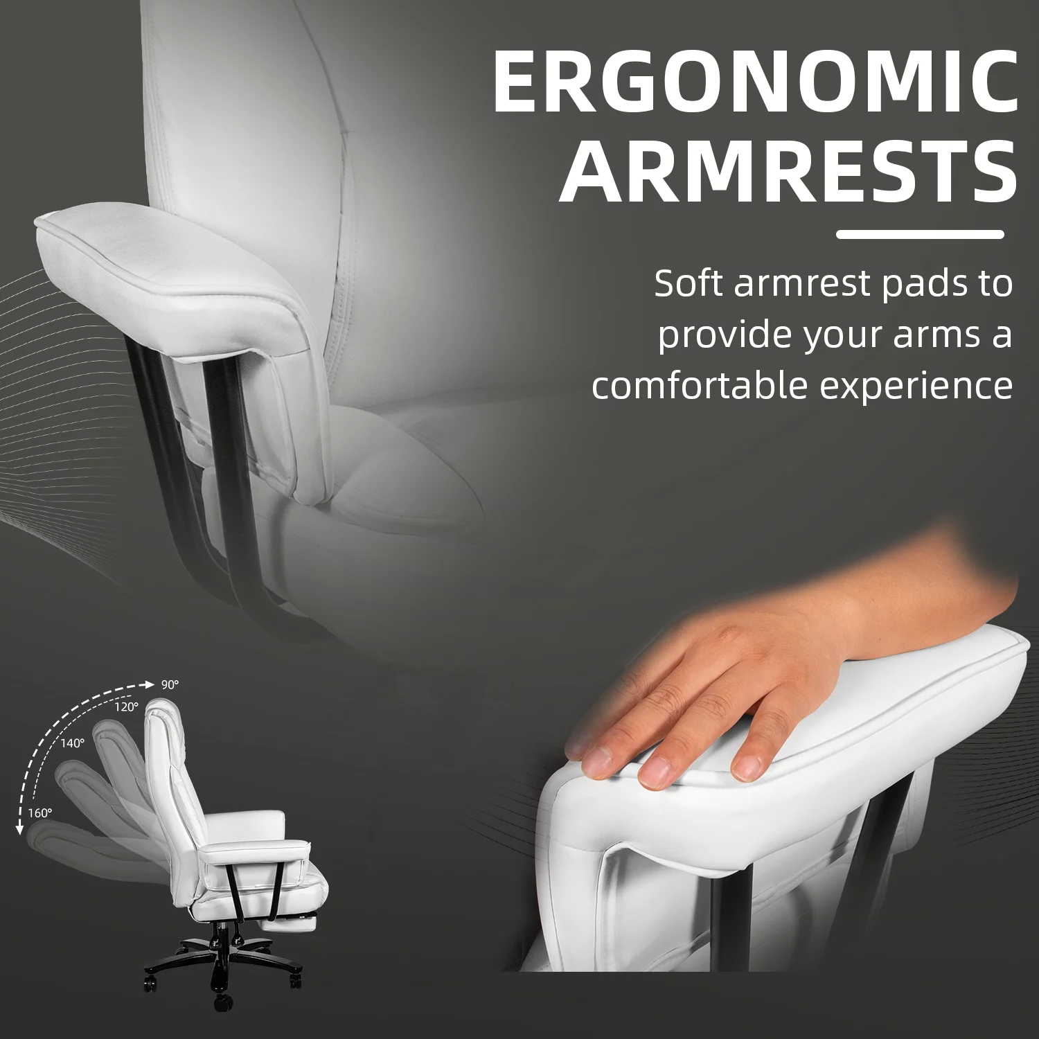 SeekFancy High Back Executive Office Chair, Ergonomic PU Leather Office Chair Heavy Duty Computer Desk Chair Reclining Office Chair with Footrest, White