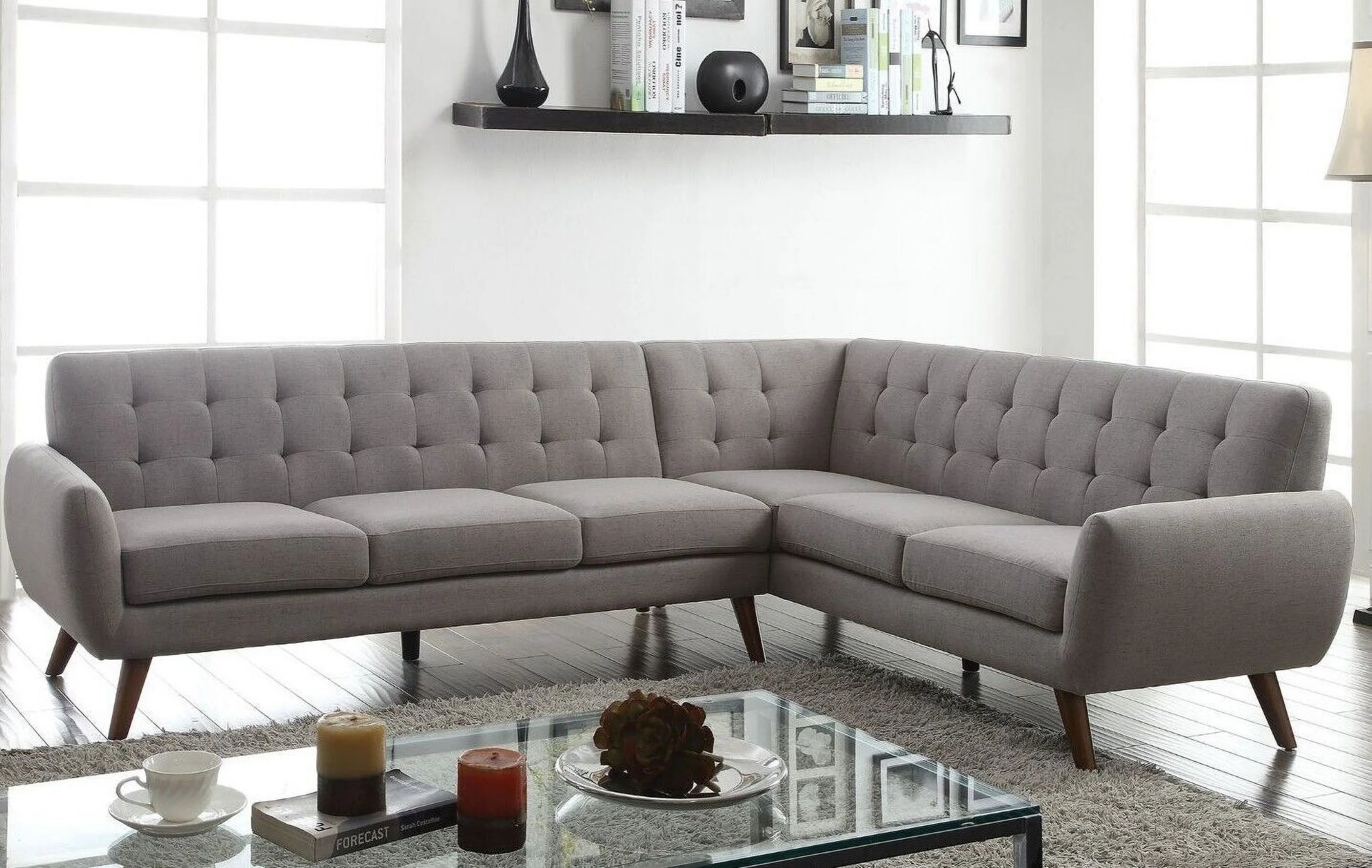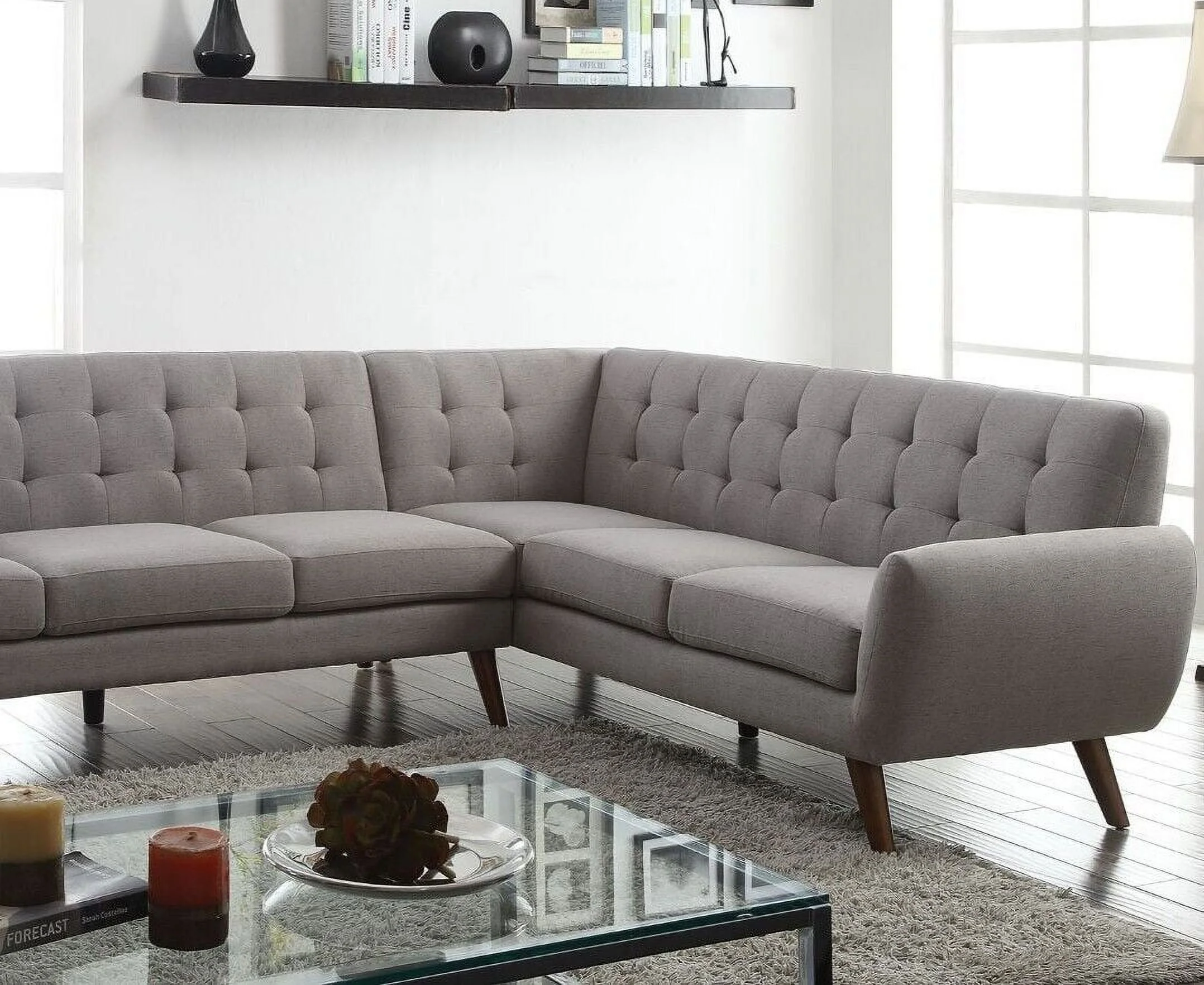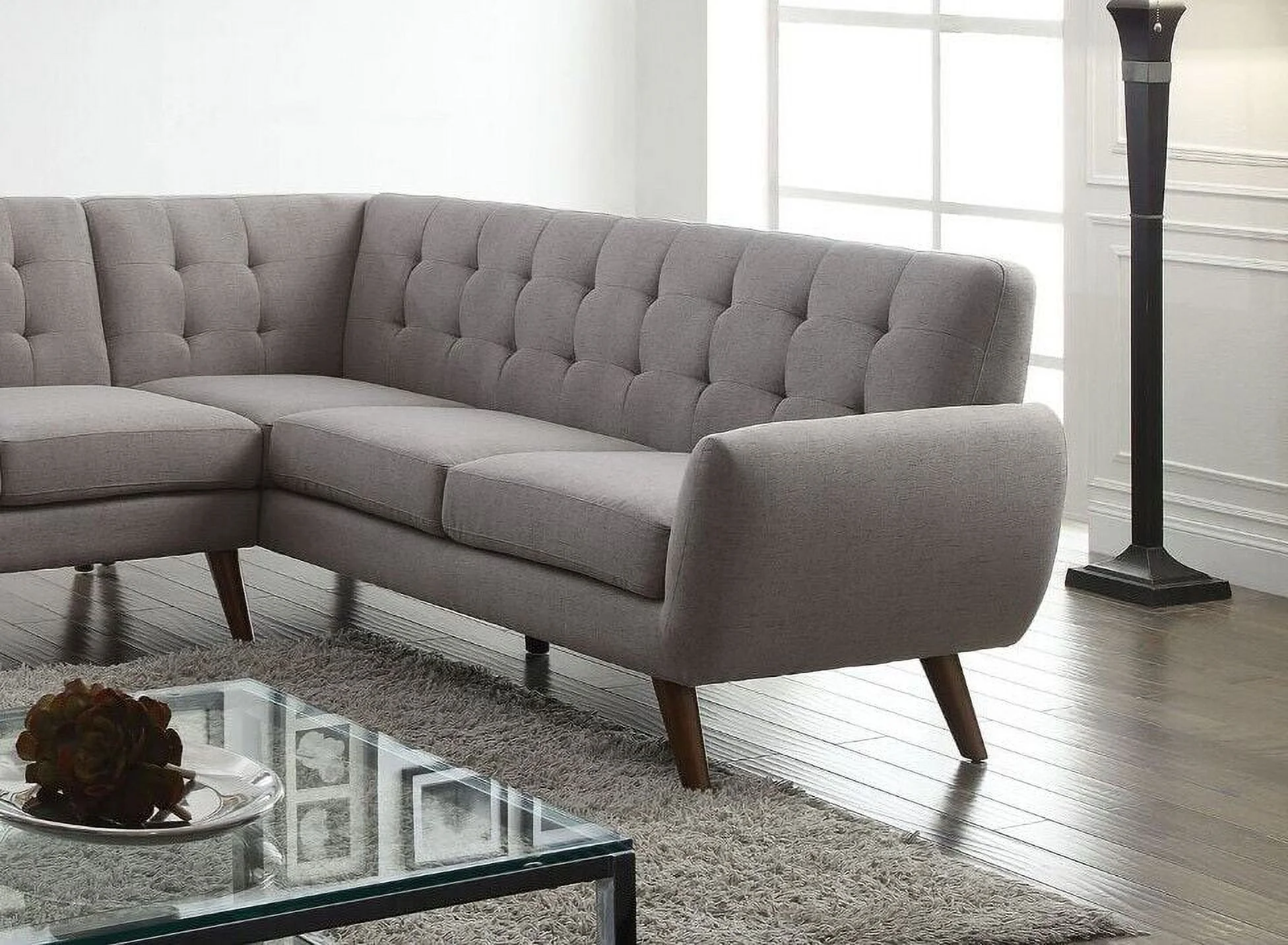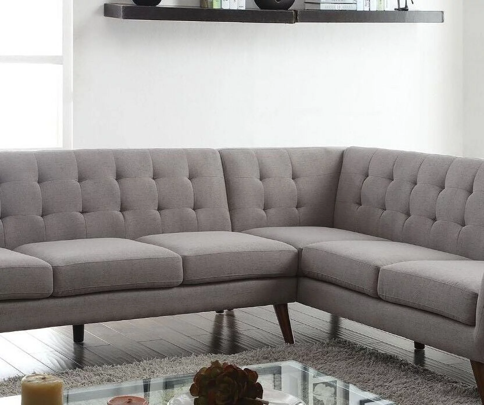 Contemporary Living Room 2pc Sectional Sofa Love Wedge Light Gray Fabric Tufted Back Cushion Flared Arm Style Furniture