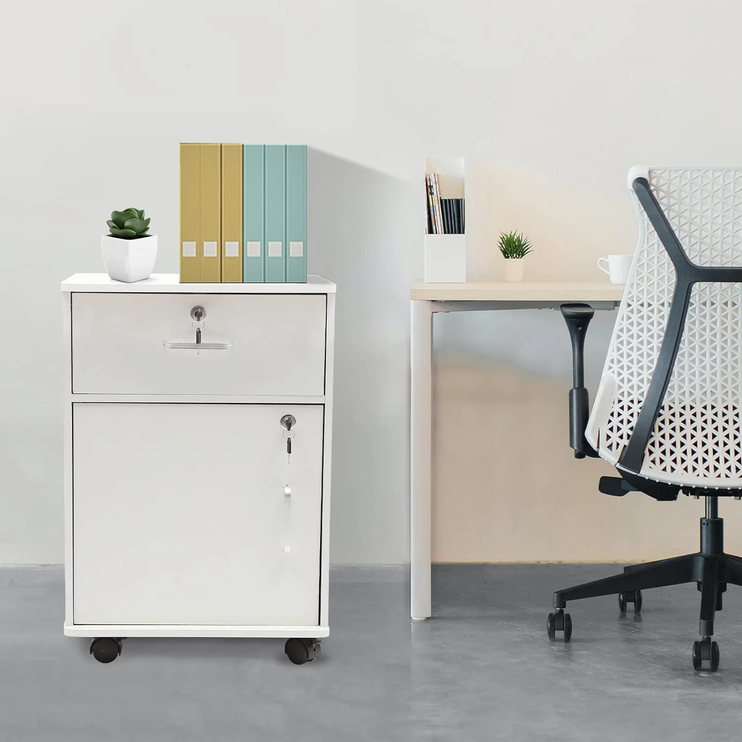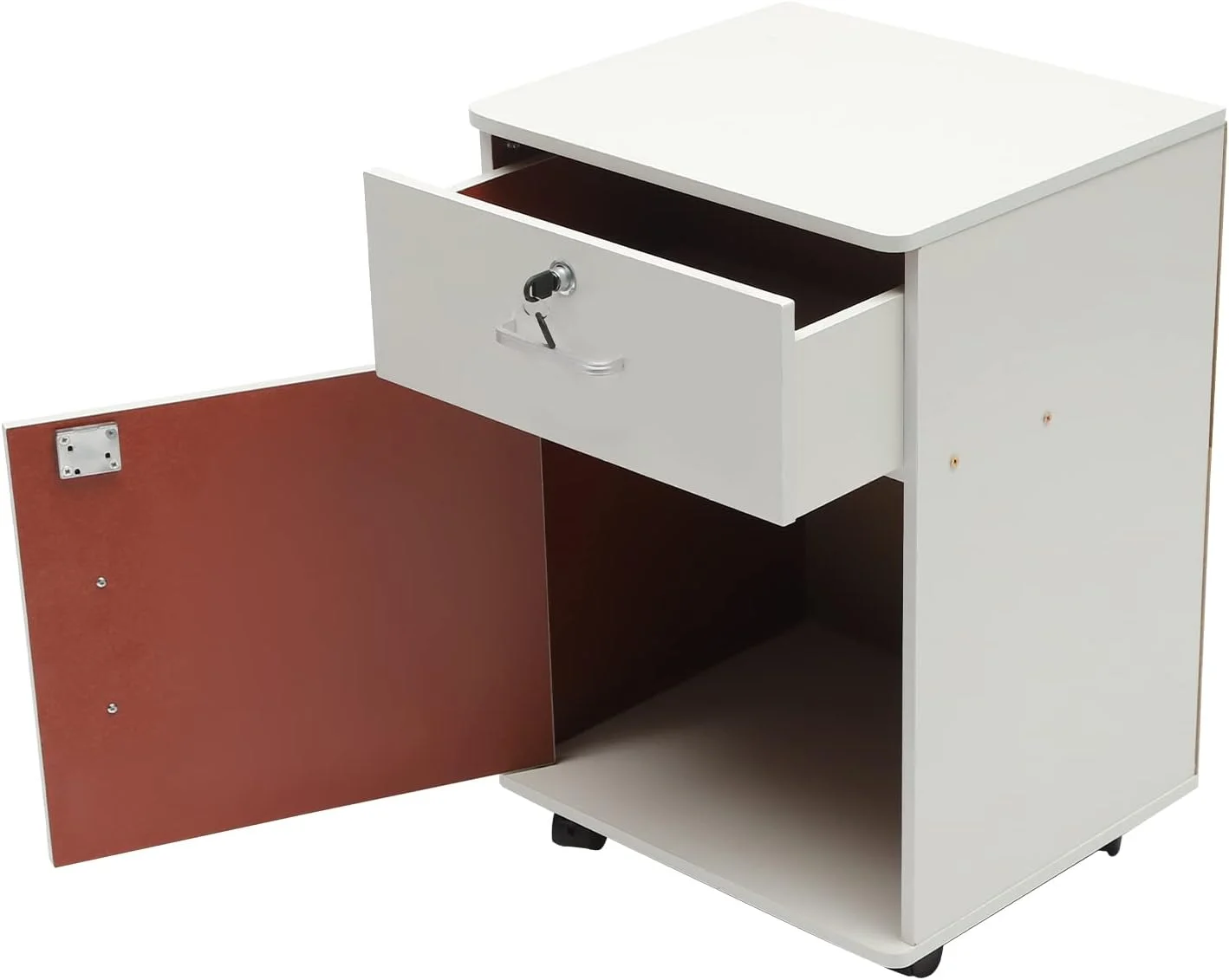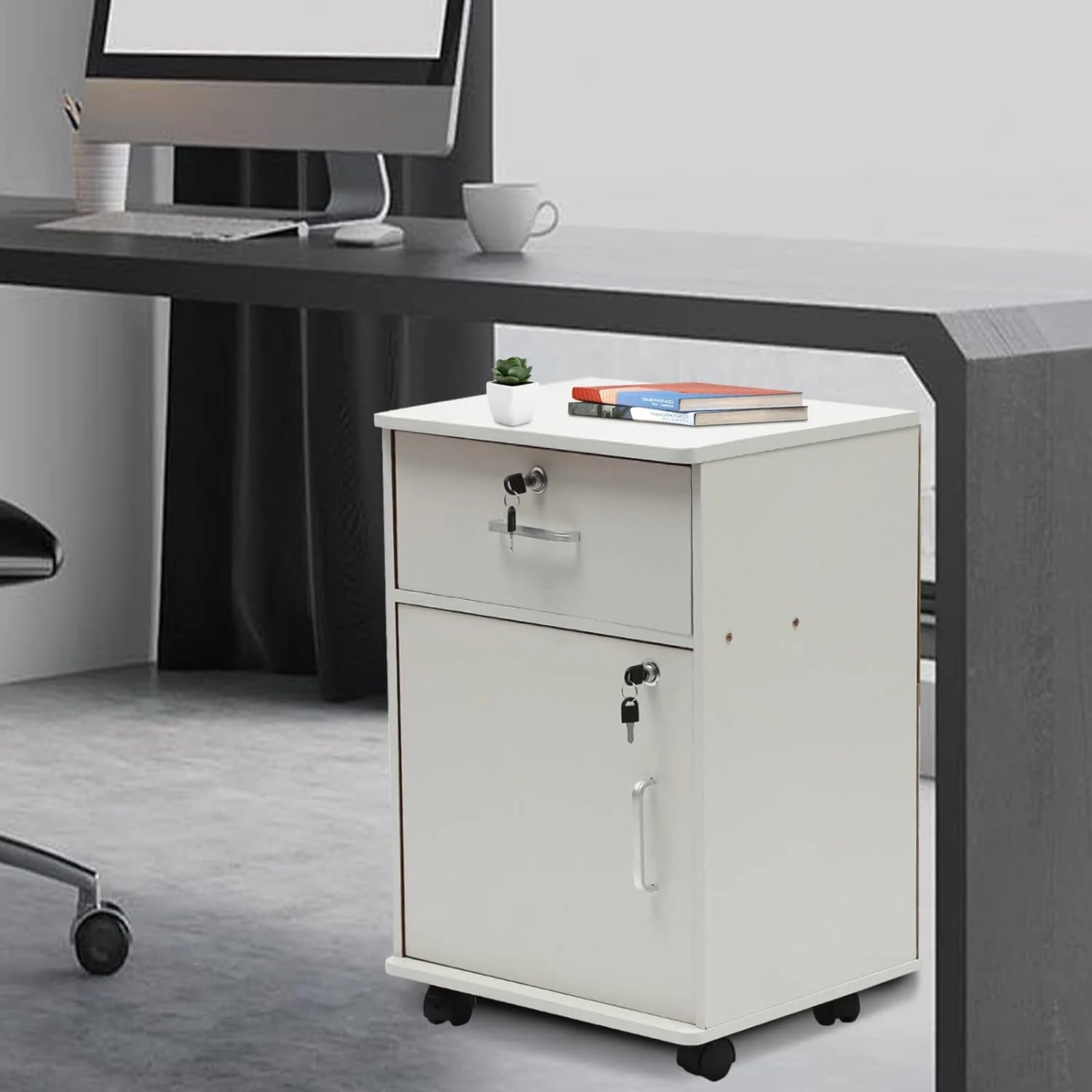 OUKANING 2-Tier Rolling Office Cabinet Organizer 1-Drawer Printer Table File Storage Cabinet Filing Cabinet with Lock