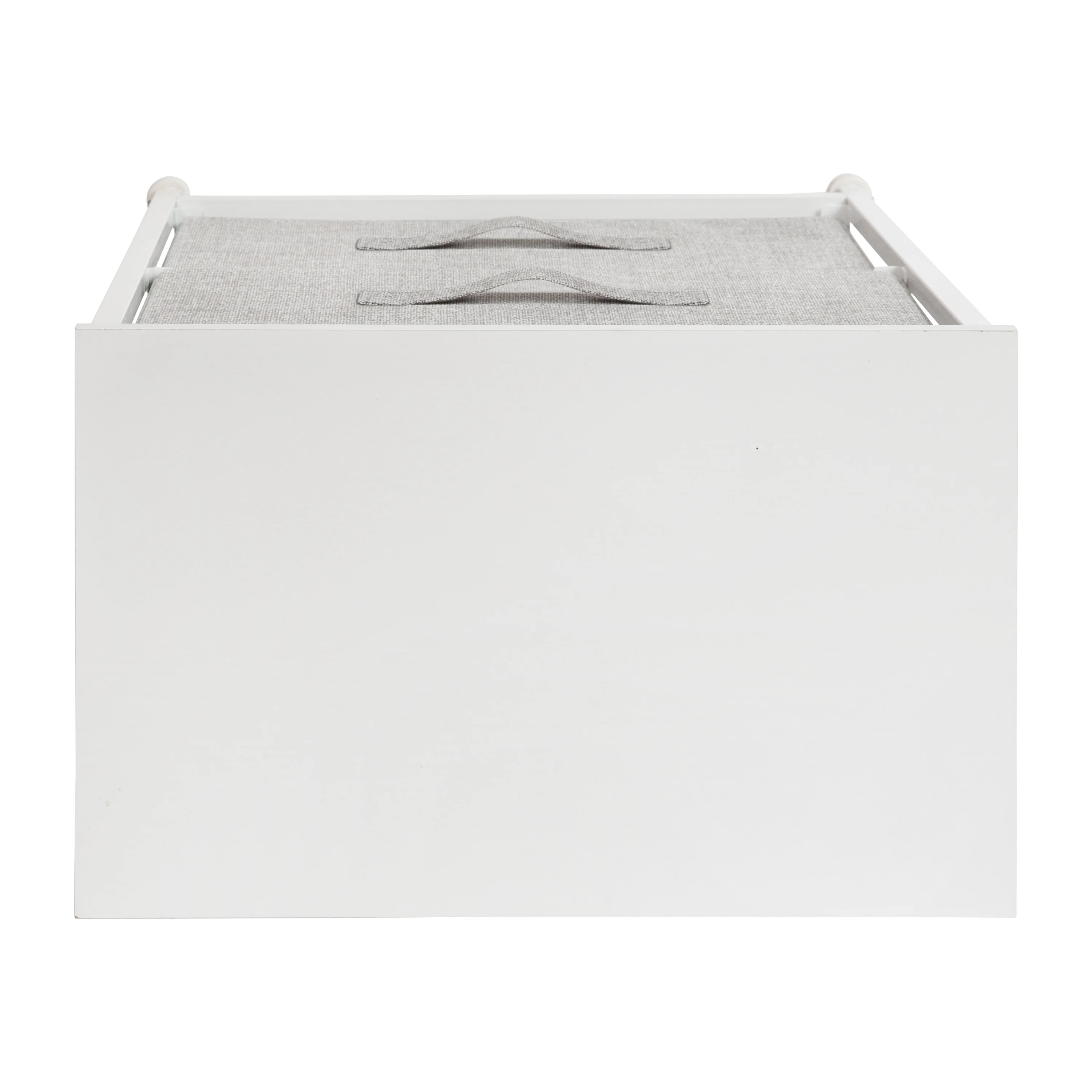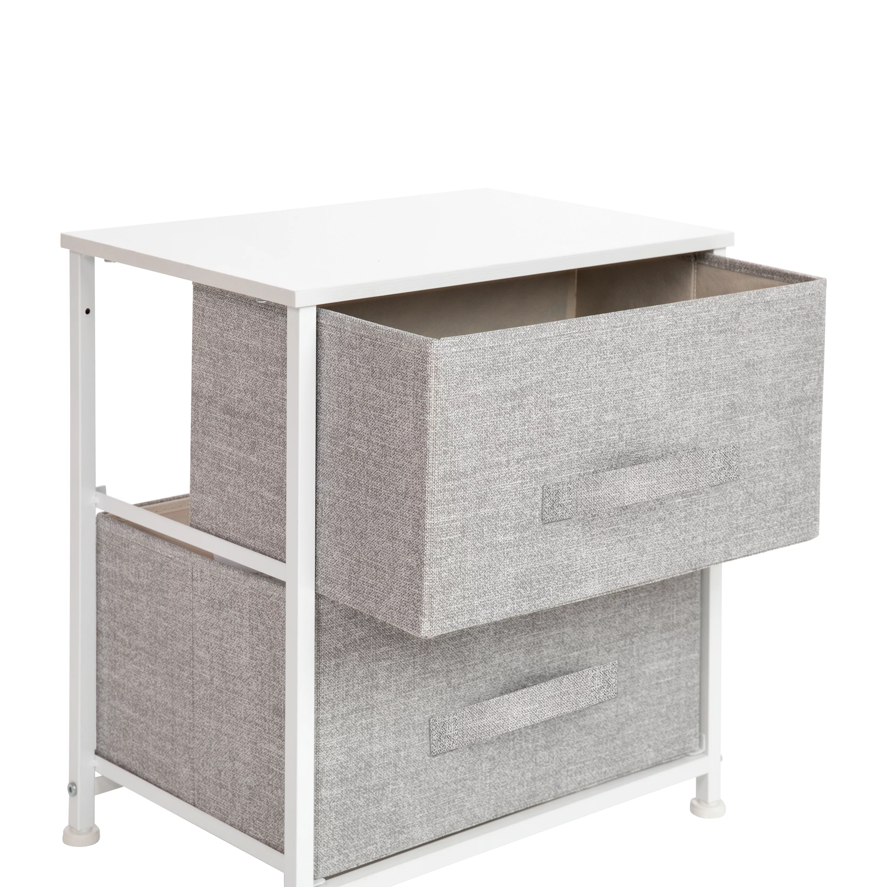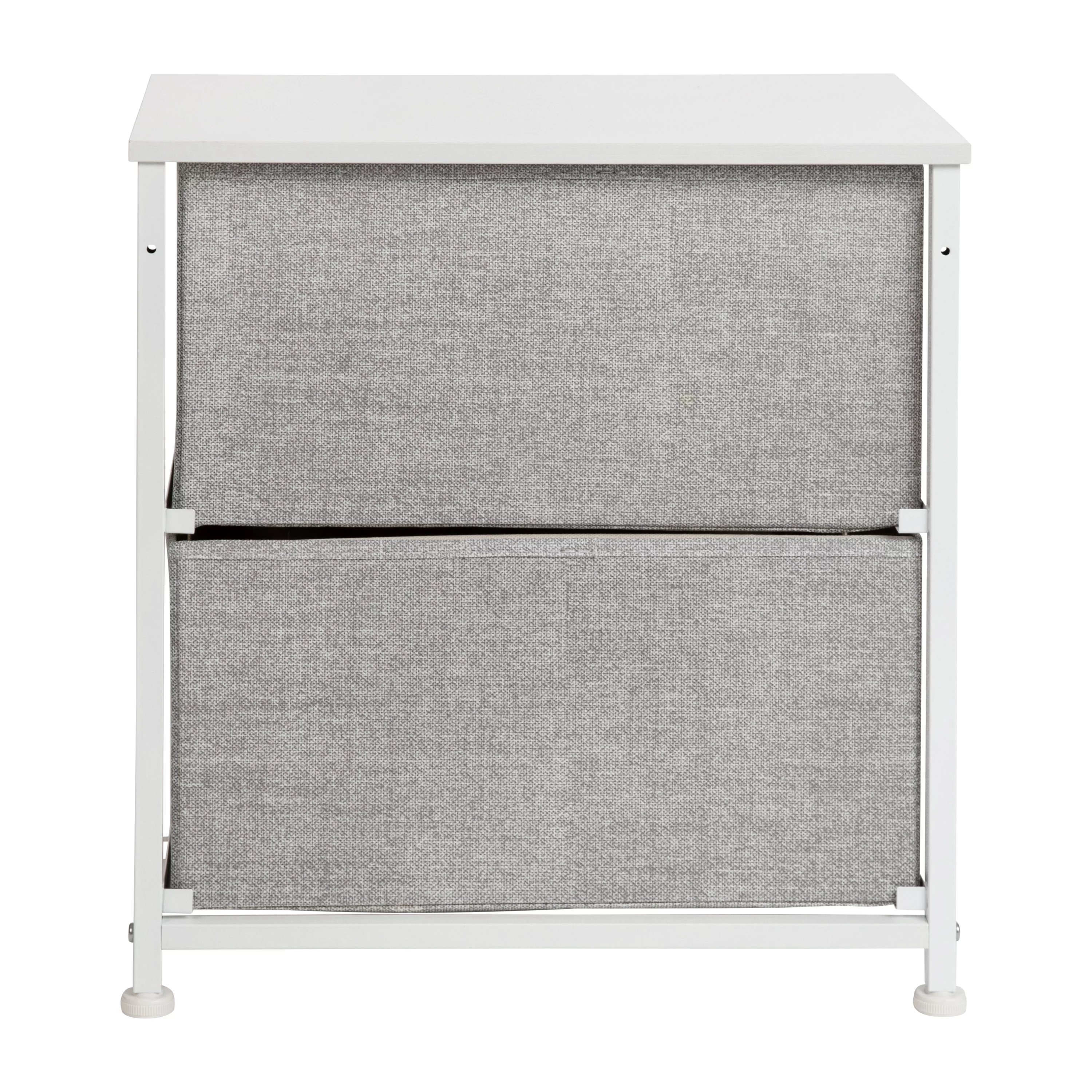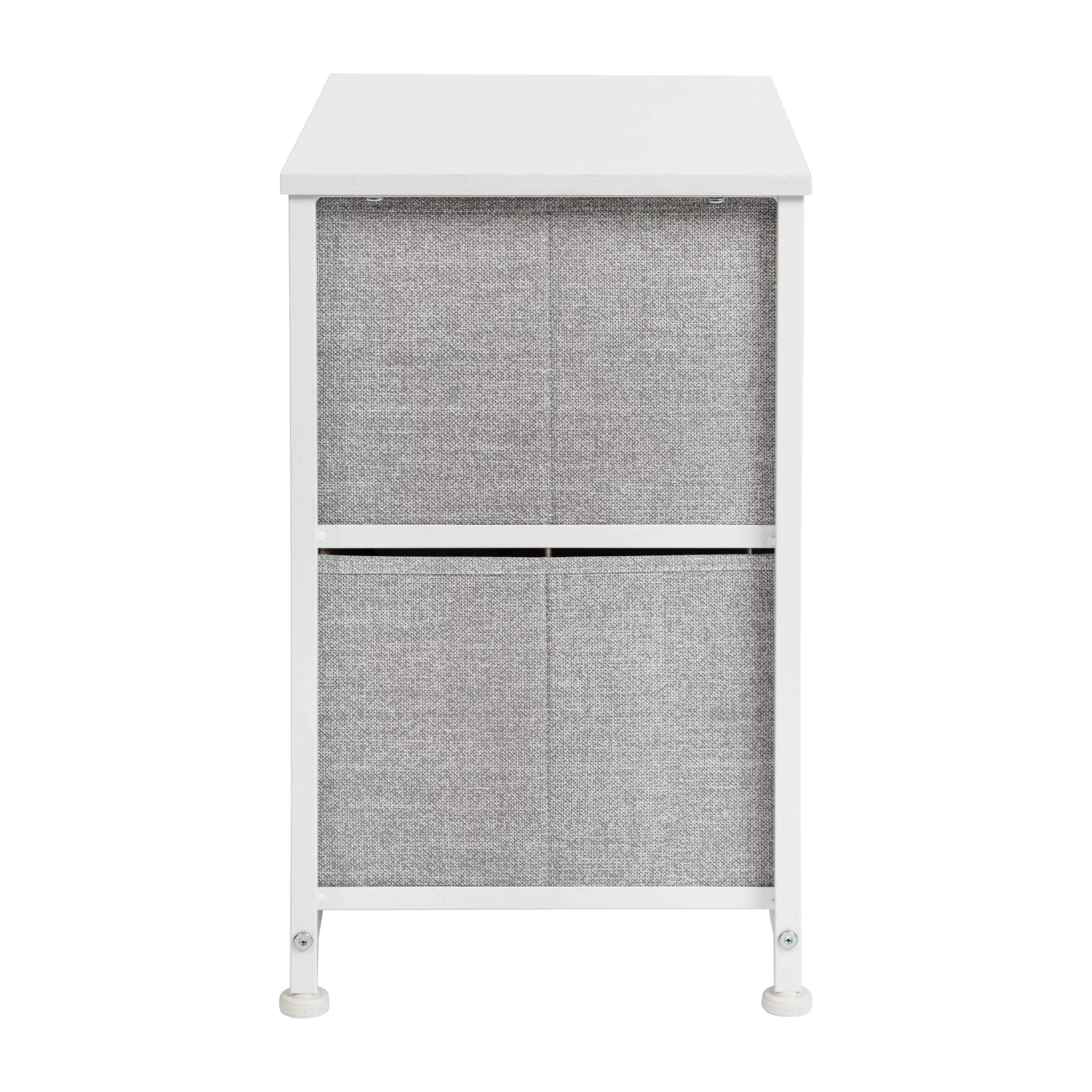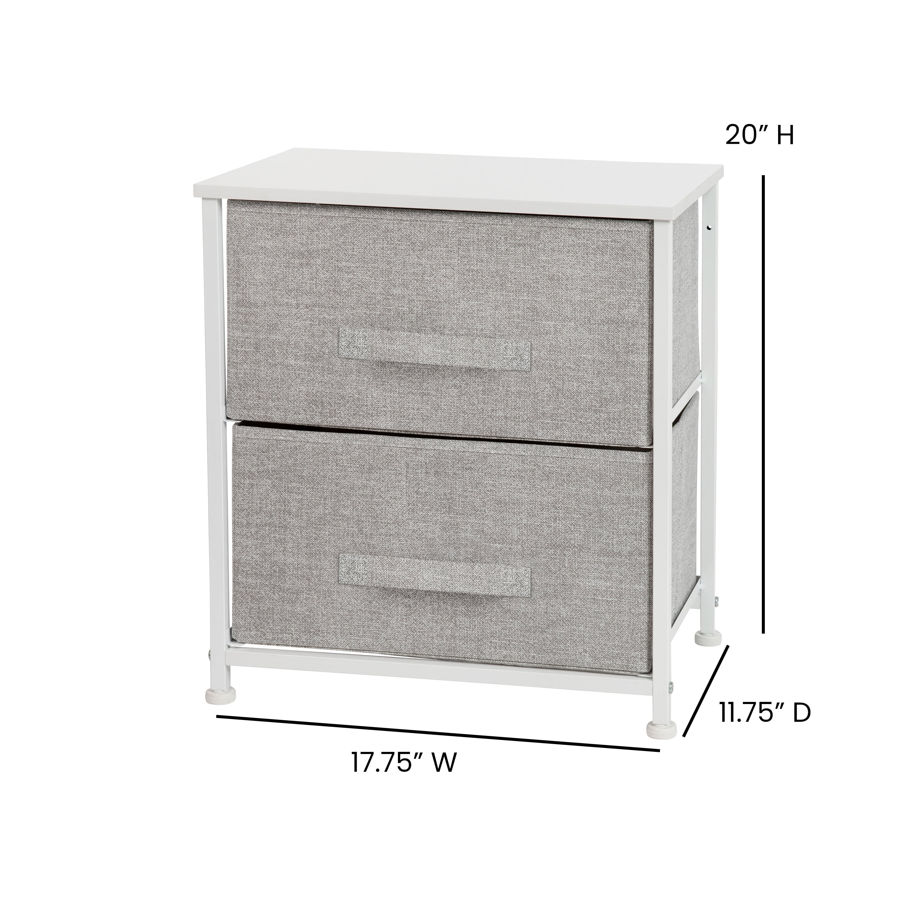 BizChair 2 Drawer Wood Top White Nightstand Storage Organizer with Cast Iron Frame and Light Gray Easy Pull Fabric Drawers