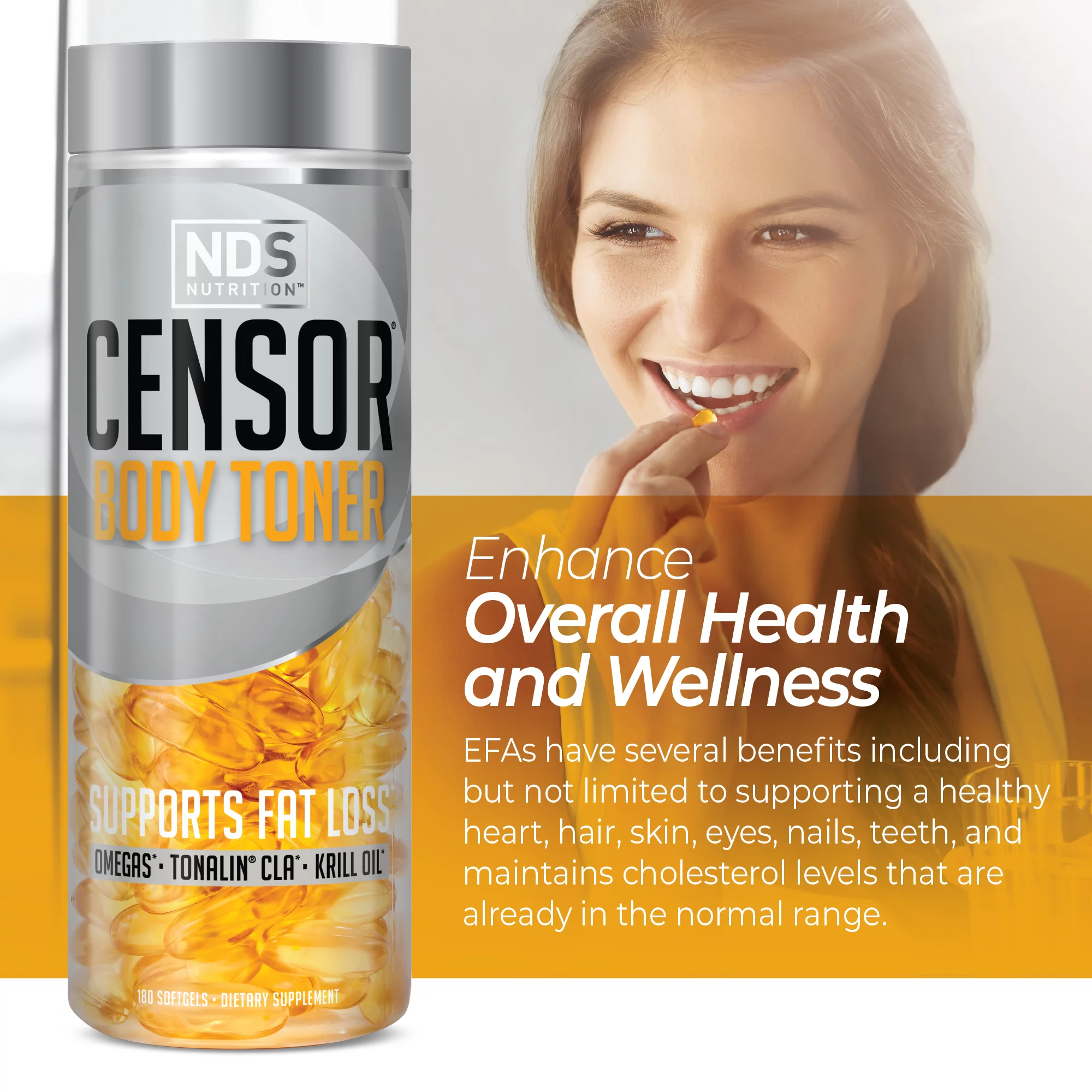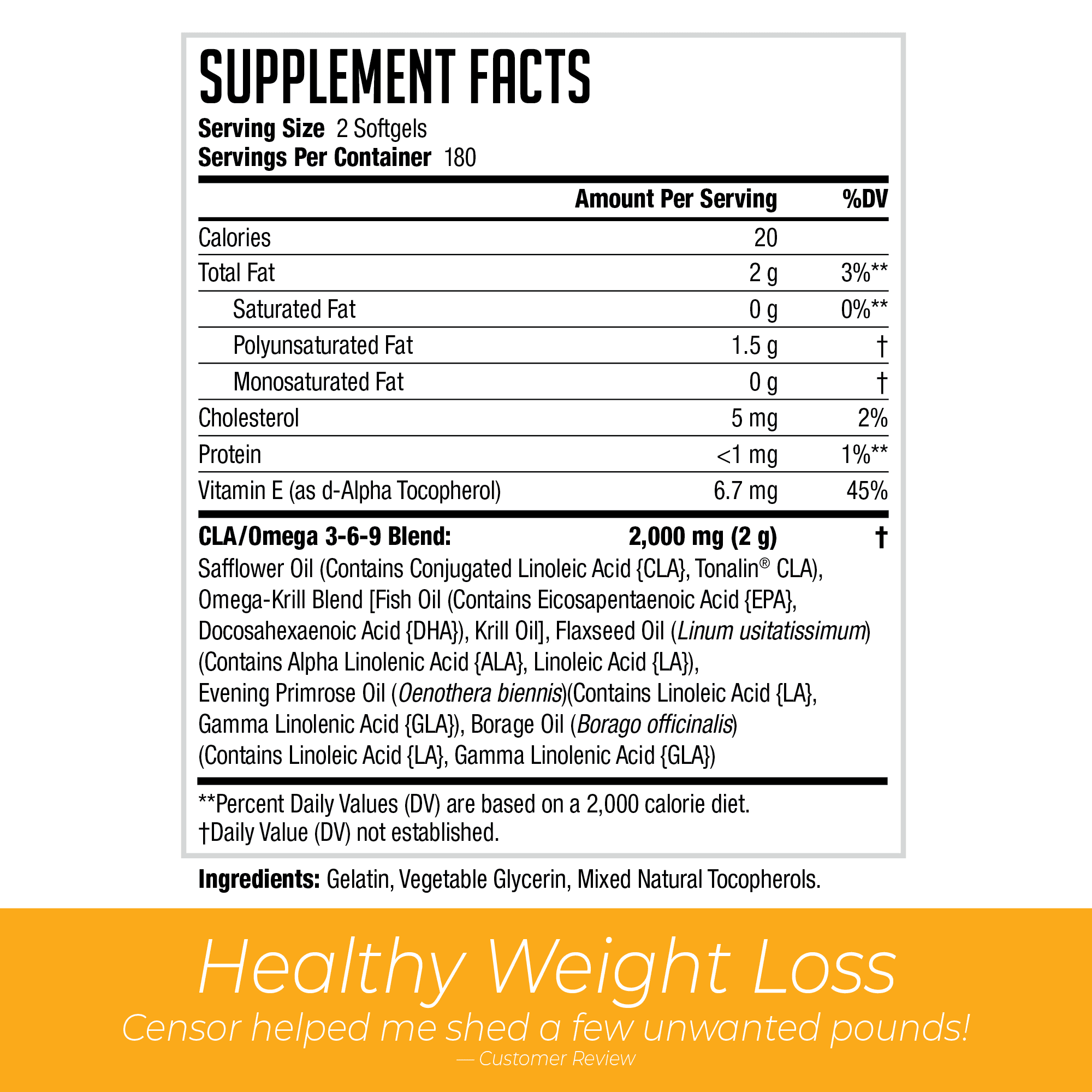 Censor - Fat Loss and Body Toner with CLA, Fish Oil, Safflower and Omega 3-6-9 Blend - Dietary Supplement for Improved Energy, Metabolism and Health - 180 Softgels