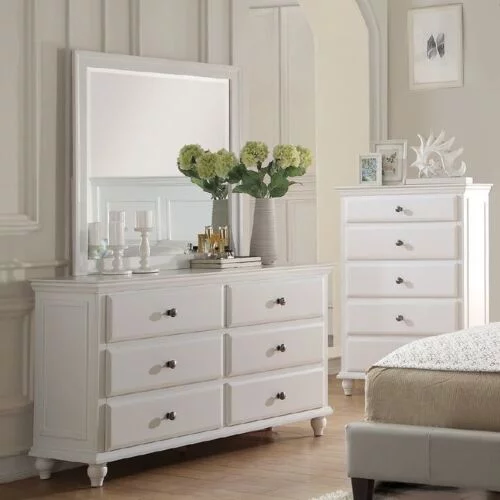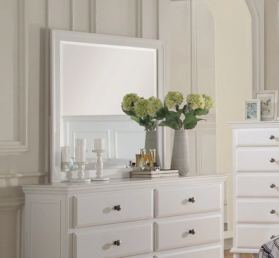 Contemporary Modern 6pc Bedroom Full Size Bed Set Dresser Mirror 2x Nightstands Chest White Furniture