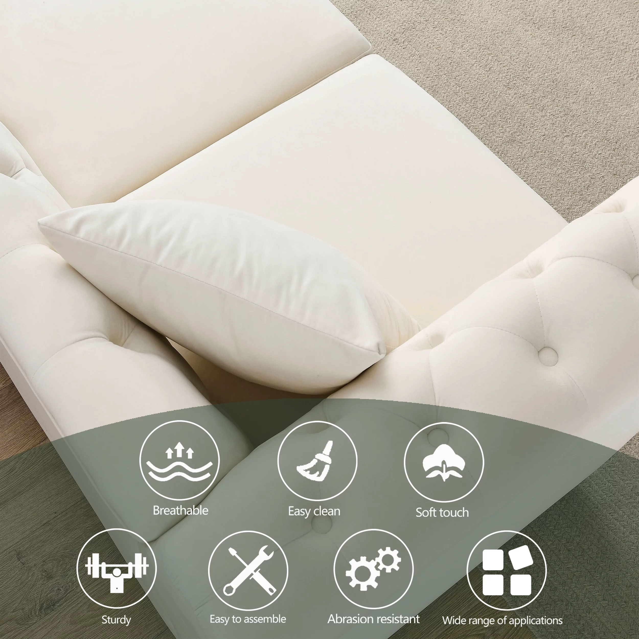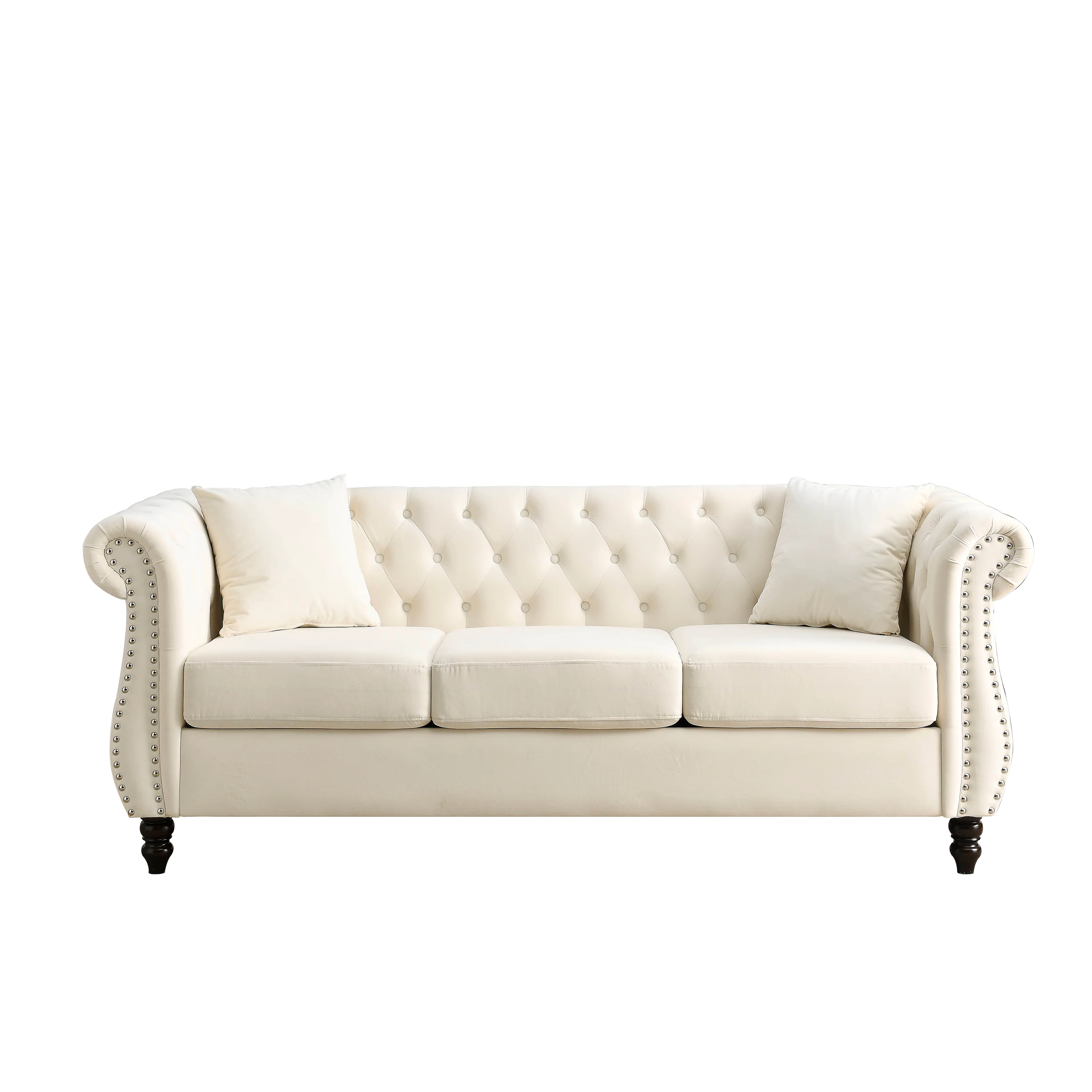 80" Sofas Velvet Tufted 3 Seats Living Furniture with Rolled Arms and Nailhead and Two Pillows,For Living Room Bedroom Office Apartment (Beige)