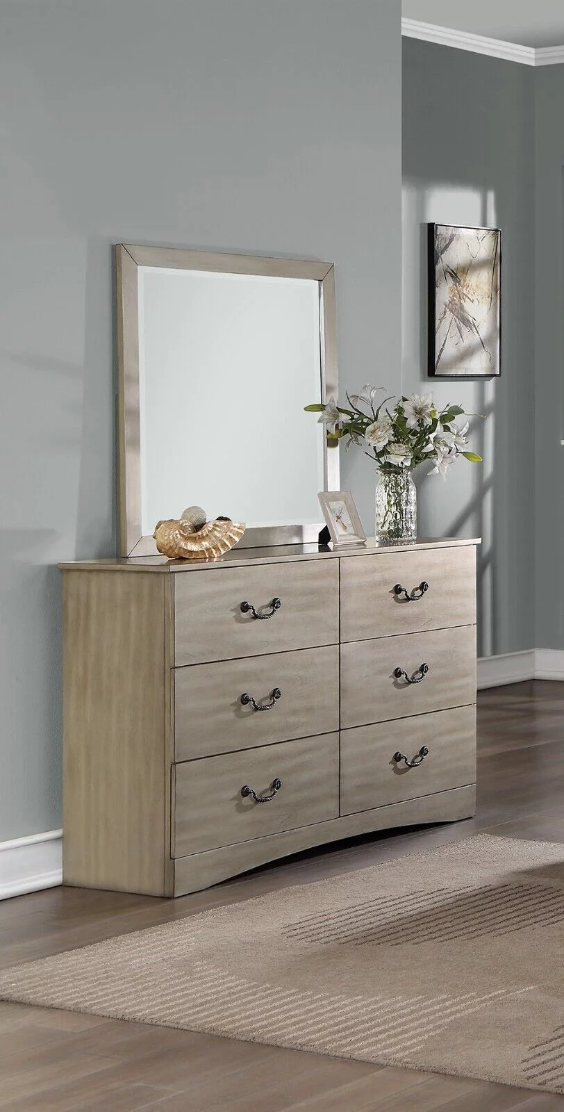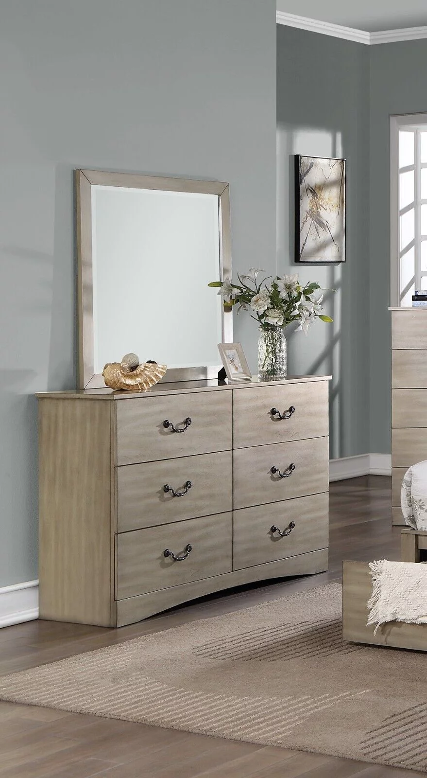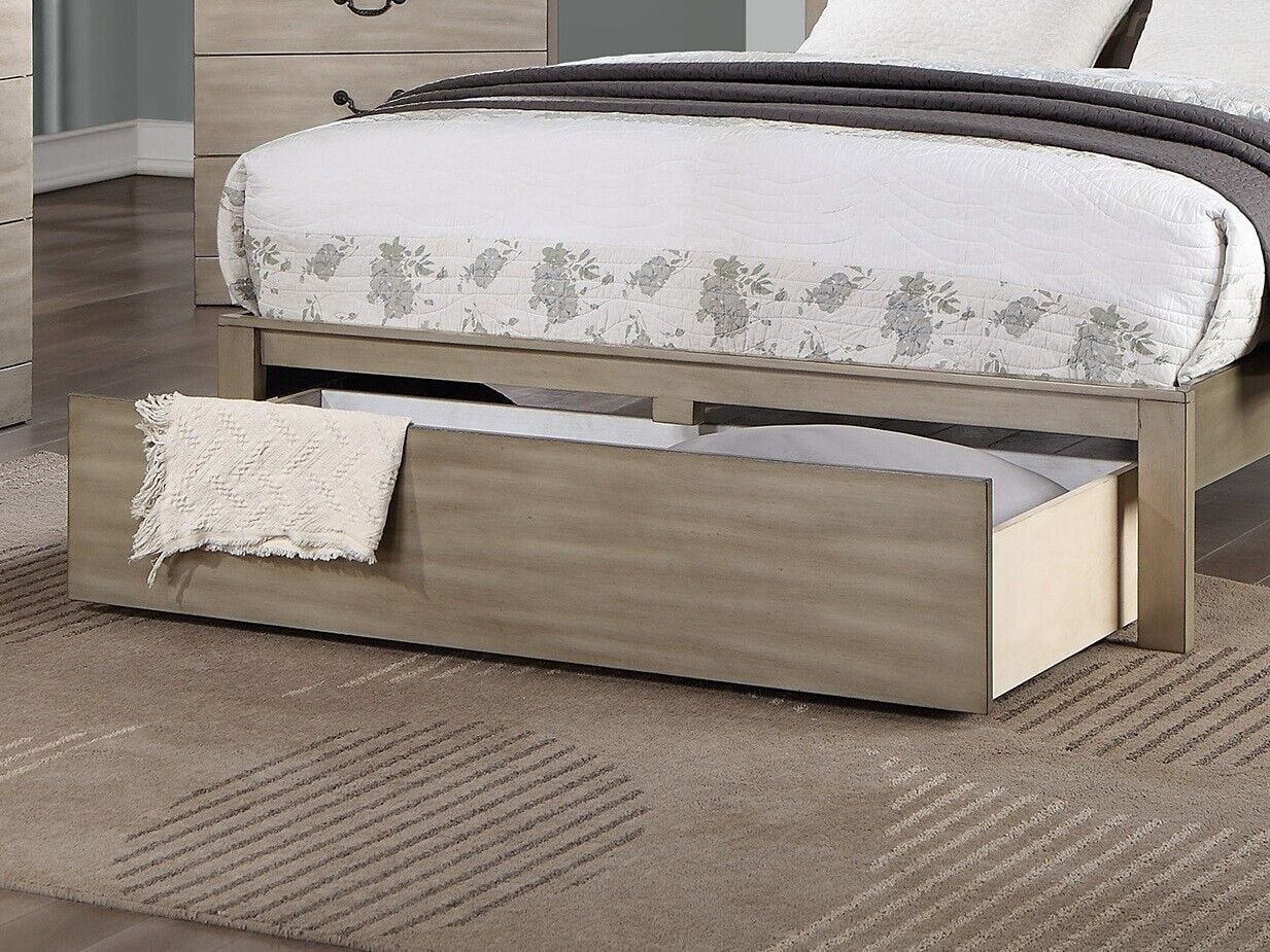 6pc Bedroom Set Classic Chic Cal King Size Bed w underbed Drawer Dresser Mirror Nightstands Chest Light Tan Finish Hue Furniture
