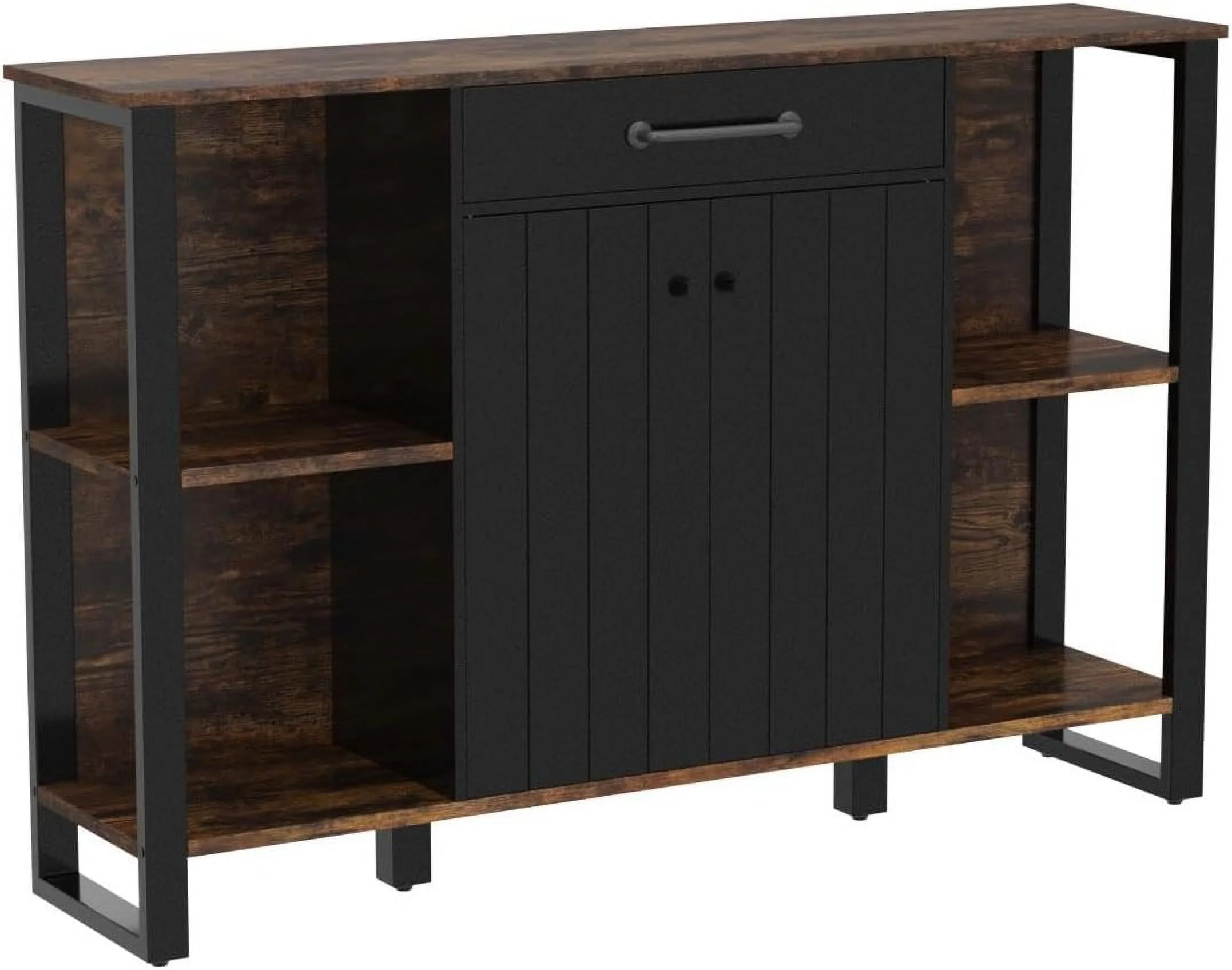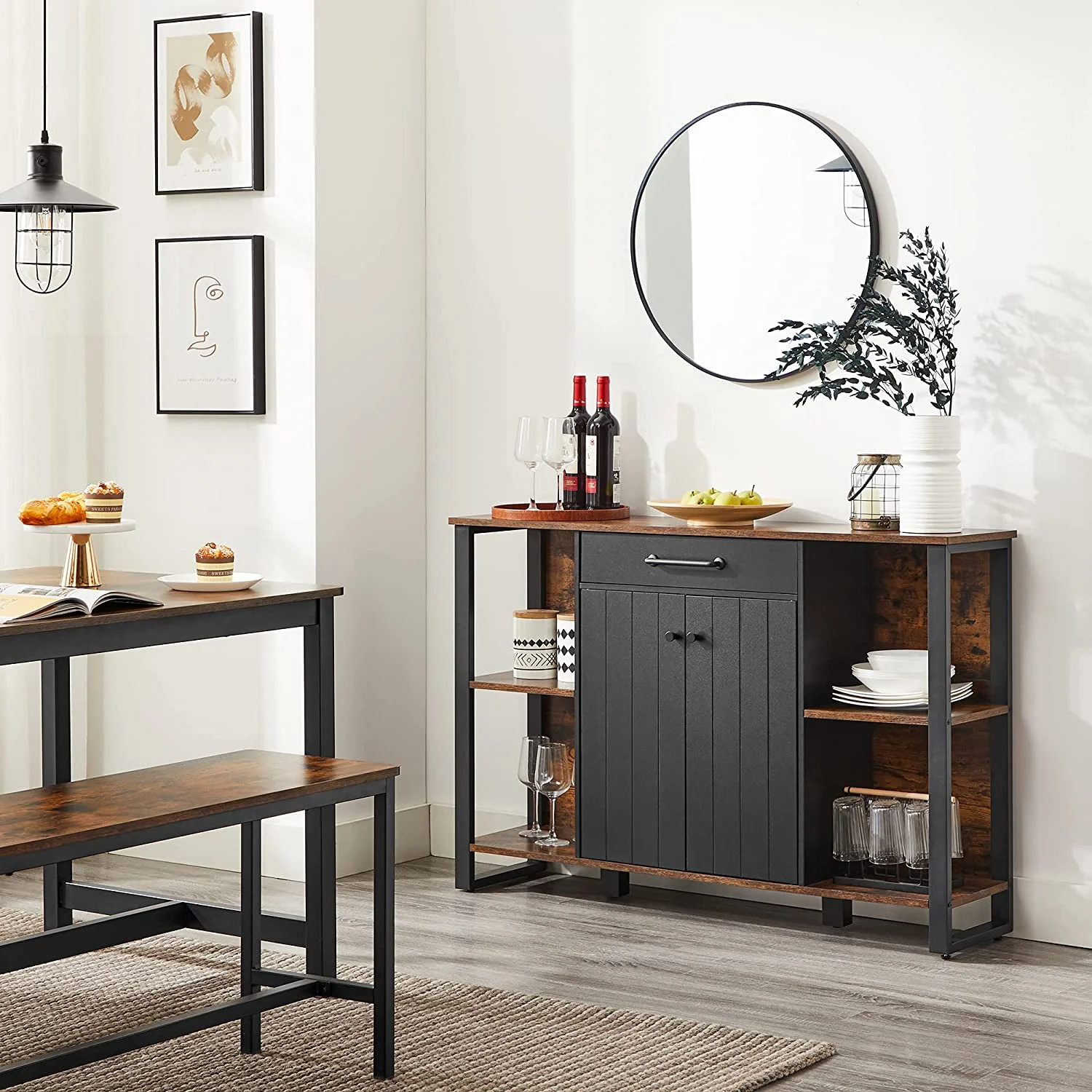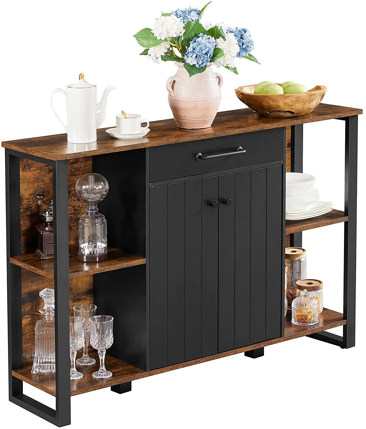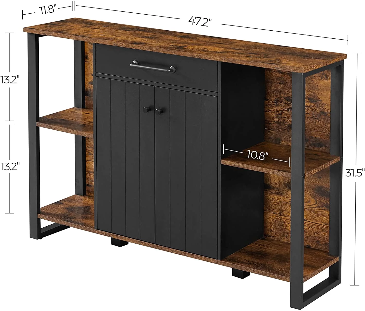 by SONGMICS Home Buffet Cabinet, Kitchen Sideboard, Storage Organizer with Drawer, Shelves, Door, for Living Room Hallway, 11.8 x 47.2 x 31.5 Inches, Rustic Brown and Black ULSC103B01