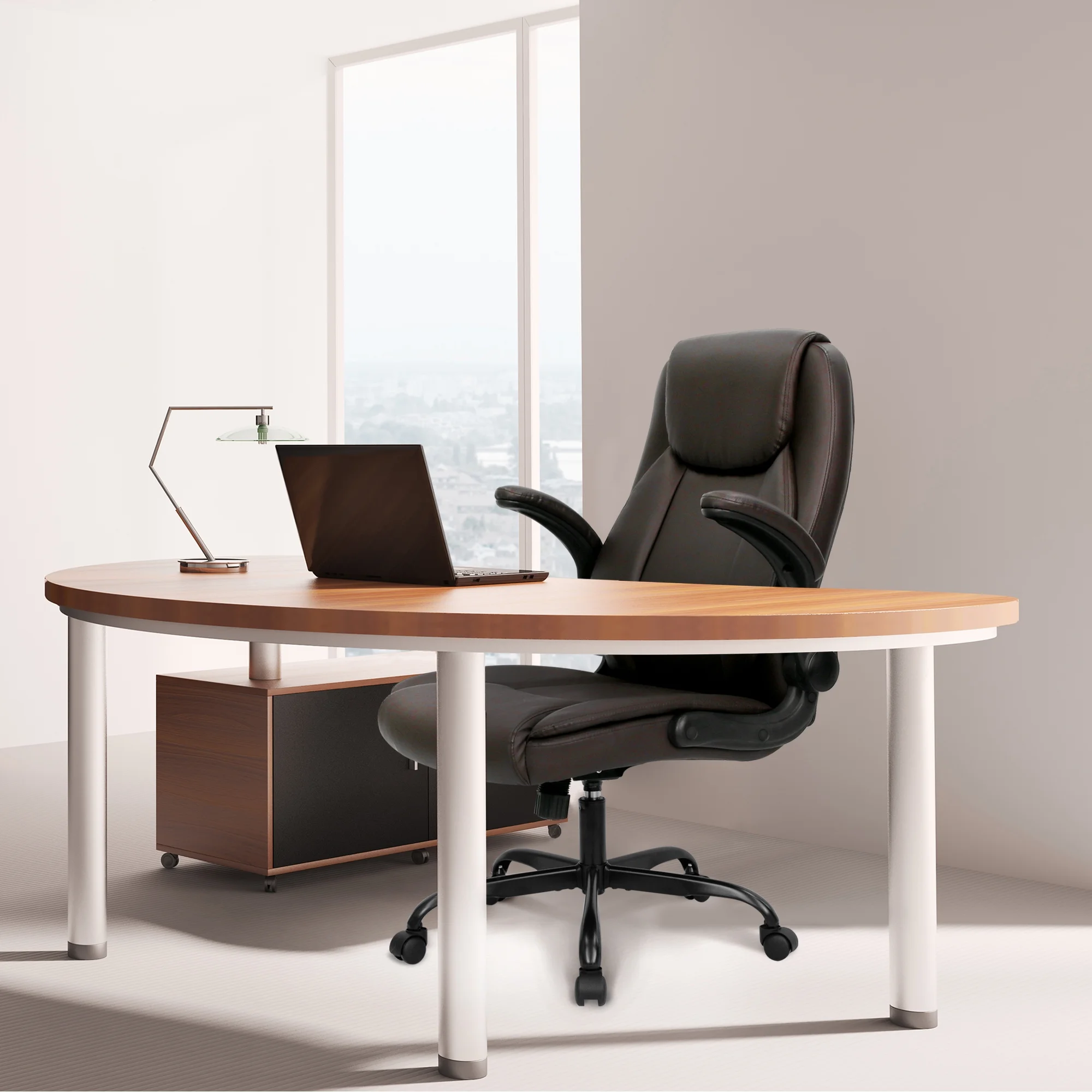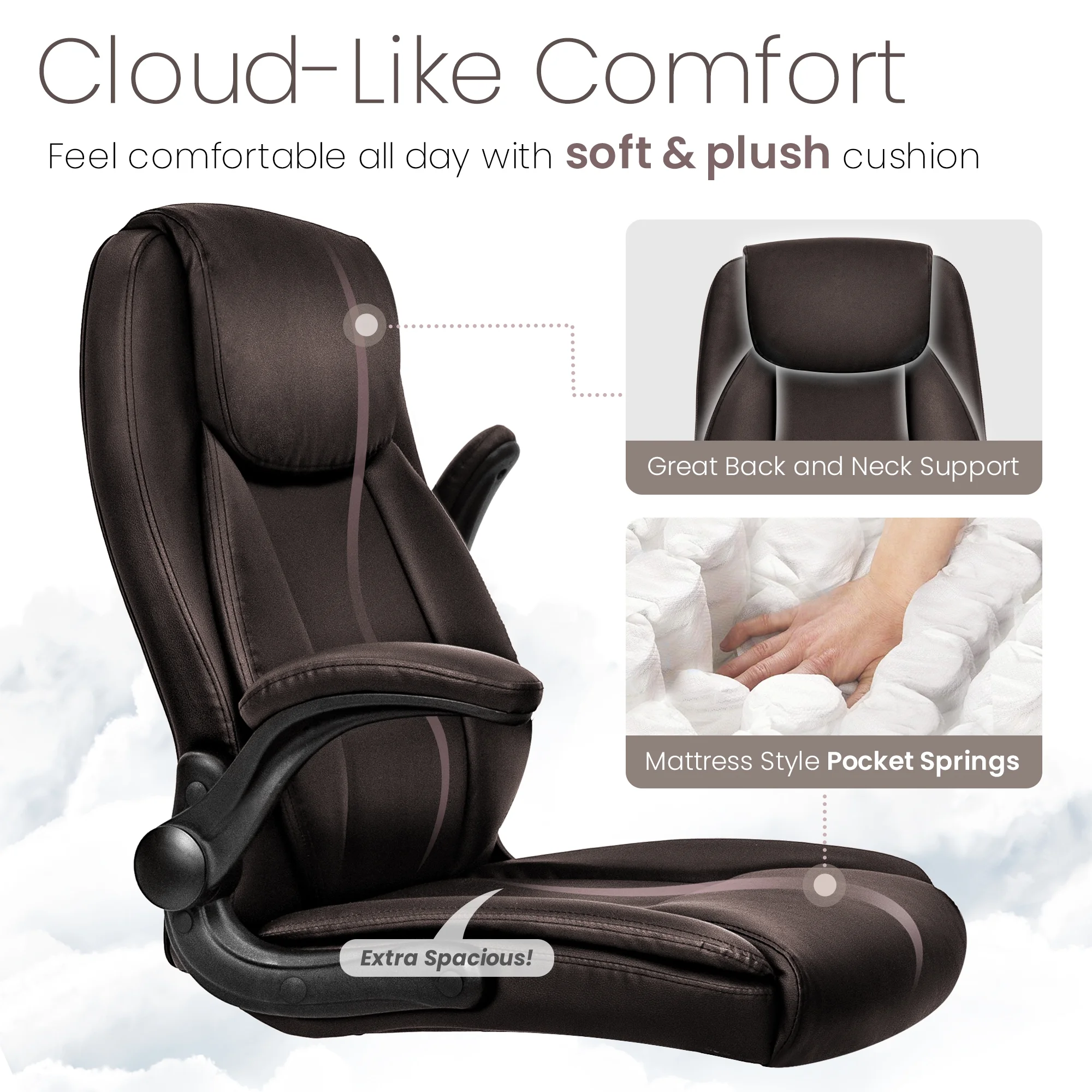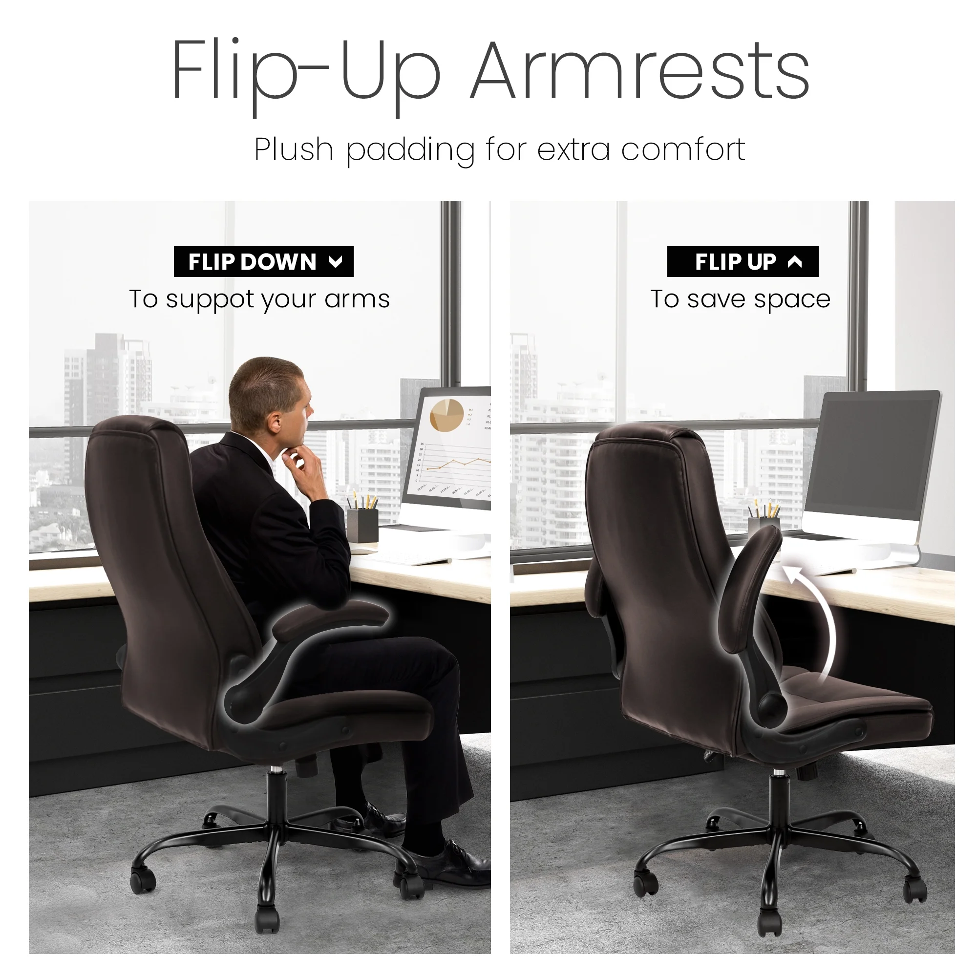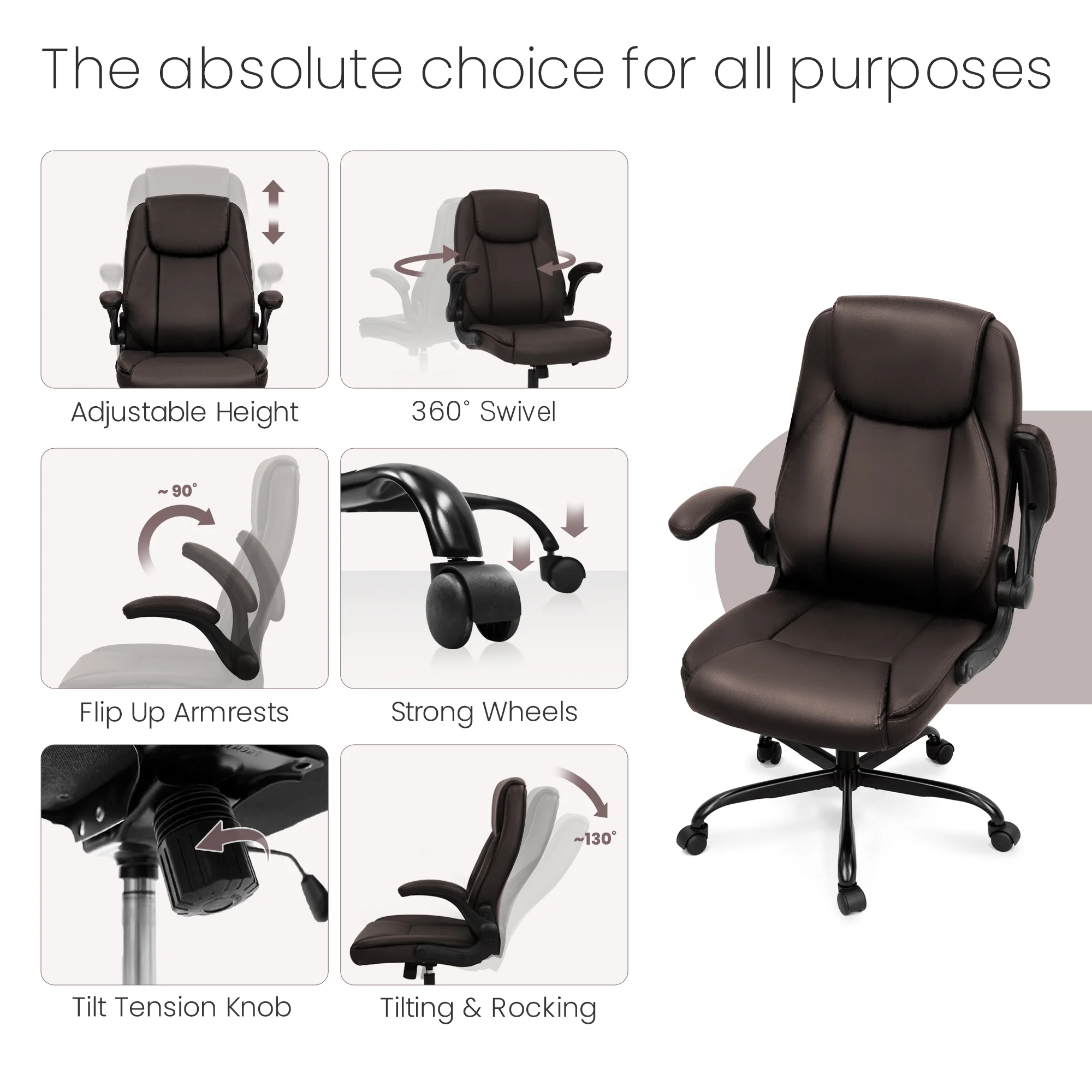 NEO CHAIR Ergonomic PU Leather Executive Office Chair Cushioned Back Support Flip-up Armrest, Brown