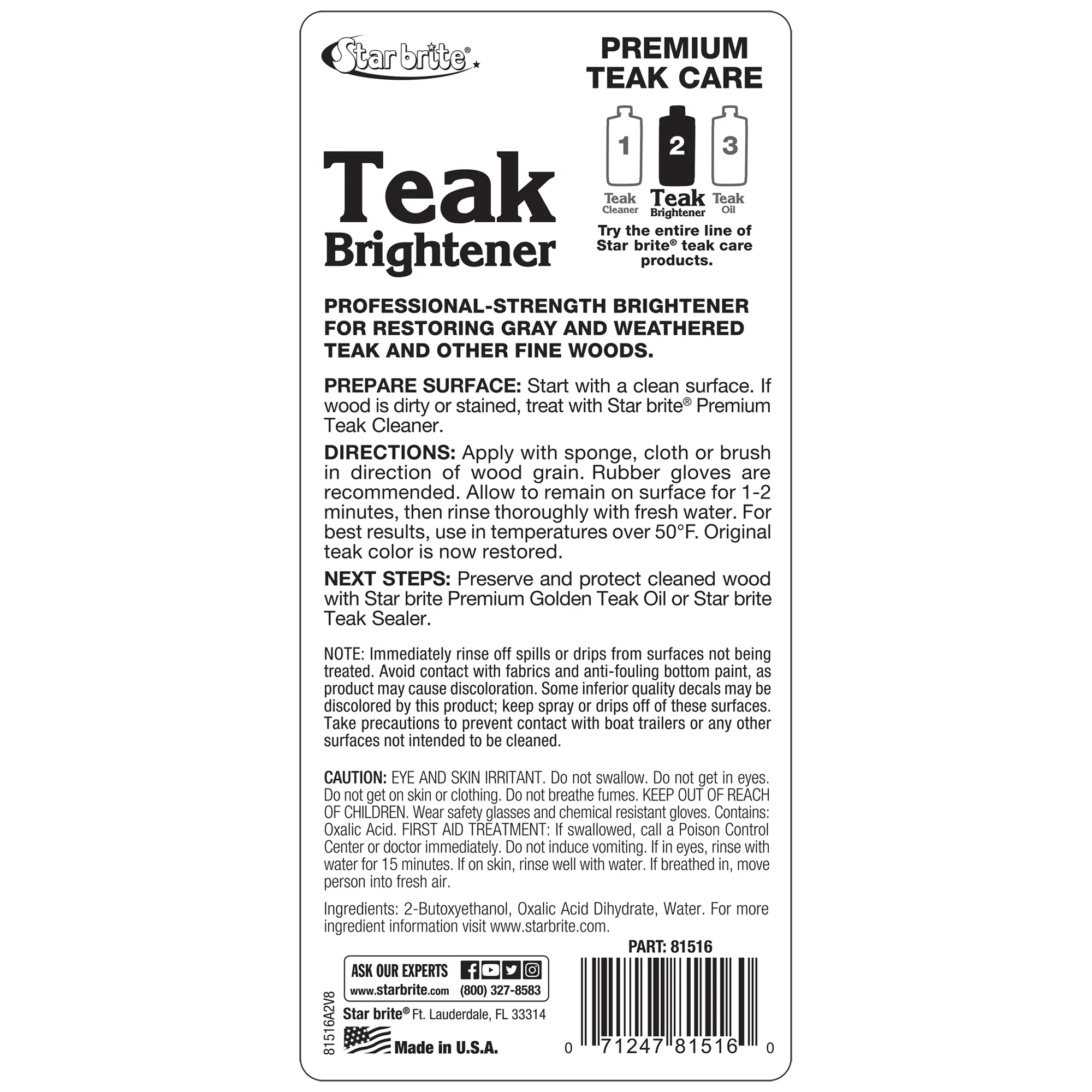 STAR BRITE Premium Teak Brightener - Enhances Natural Wood Grain & Restores Tone, Color & Provides a More Consistent Application of Teak Oil, Sealer or Stain - 16 OZ (081516)