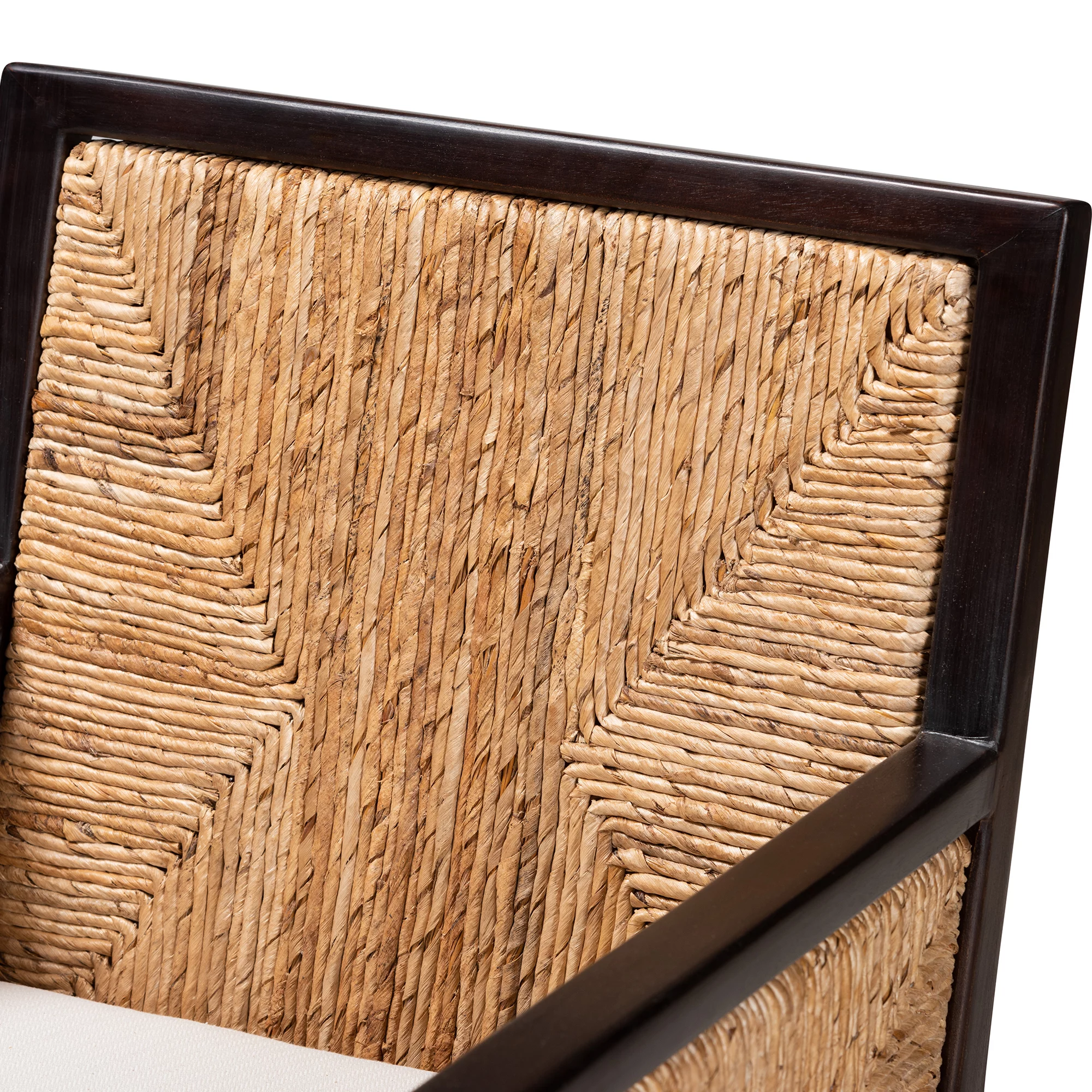 bali & pari Joana Modern Bohemian Dark Brown Mahogany Wood and Natural Abaca Dining Arm Chair