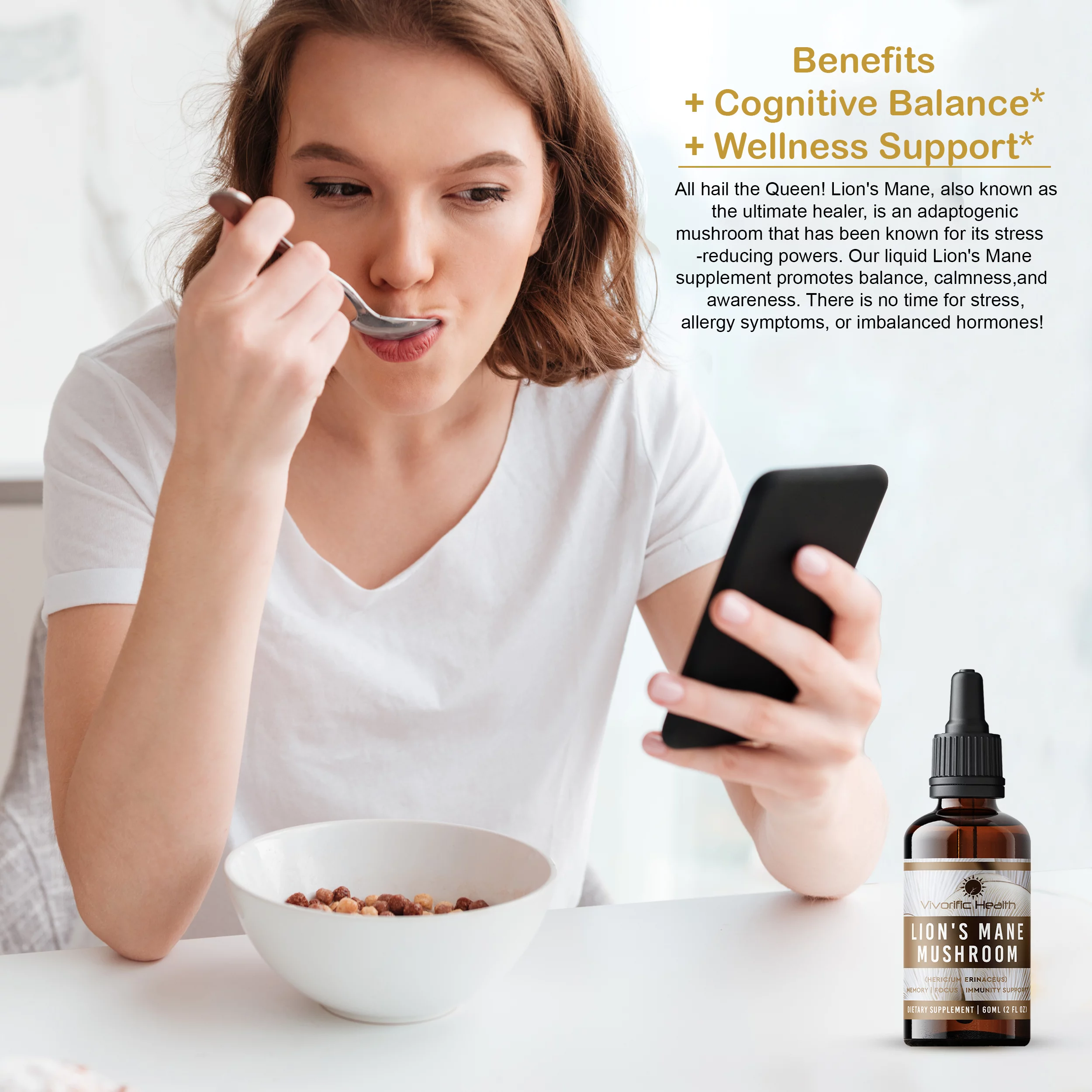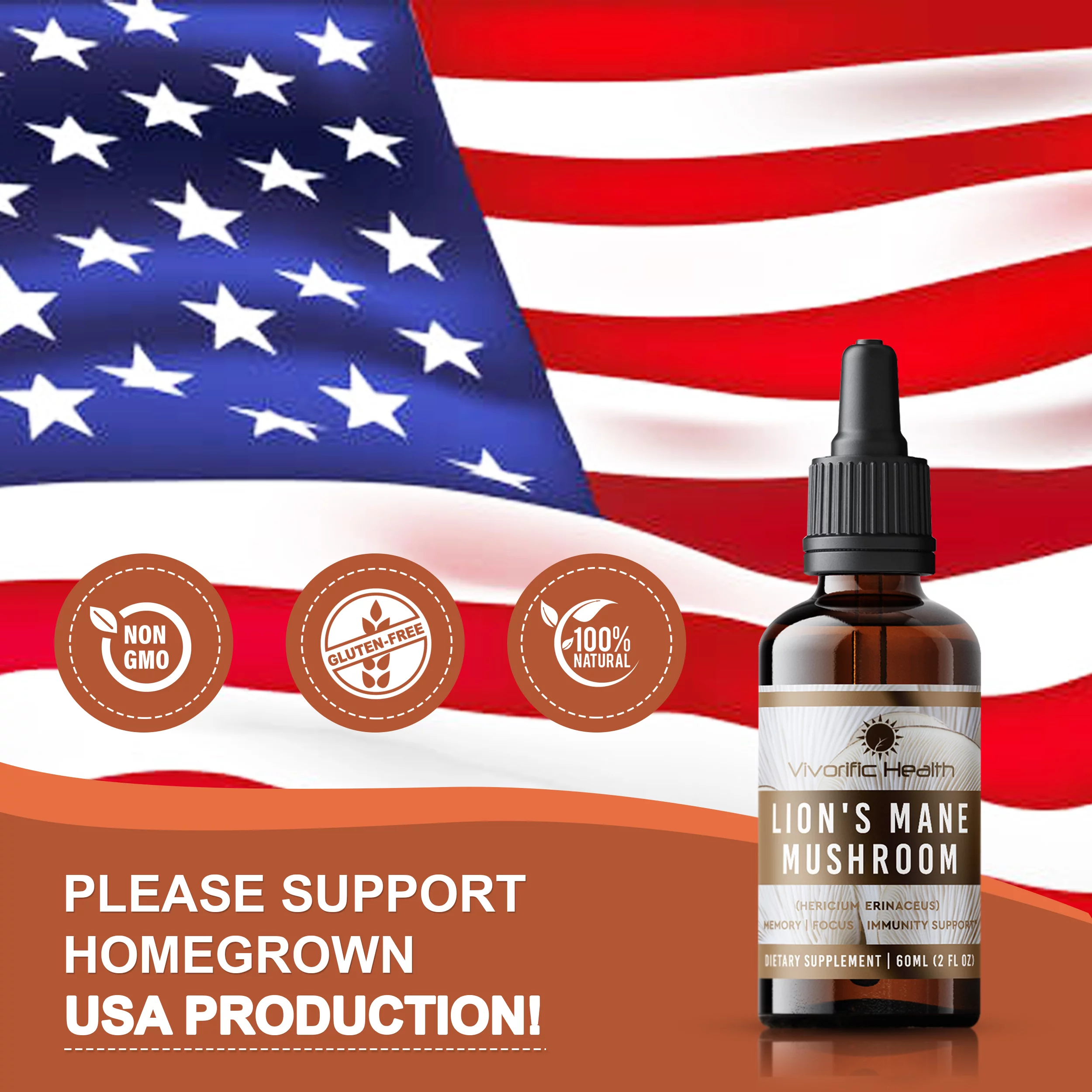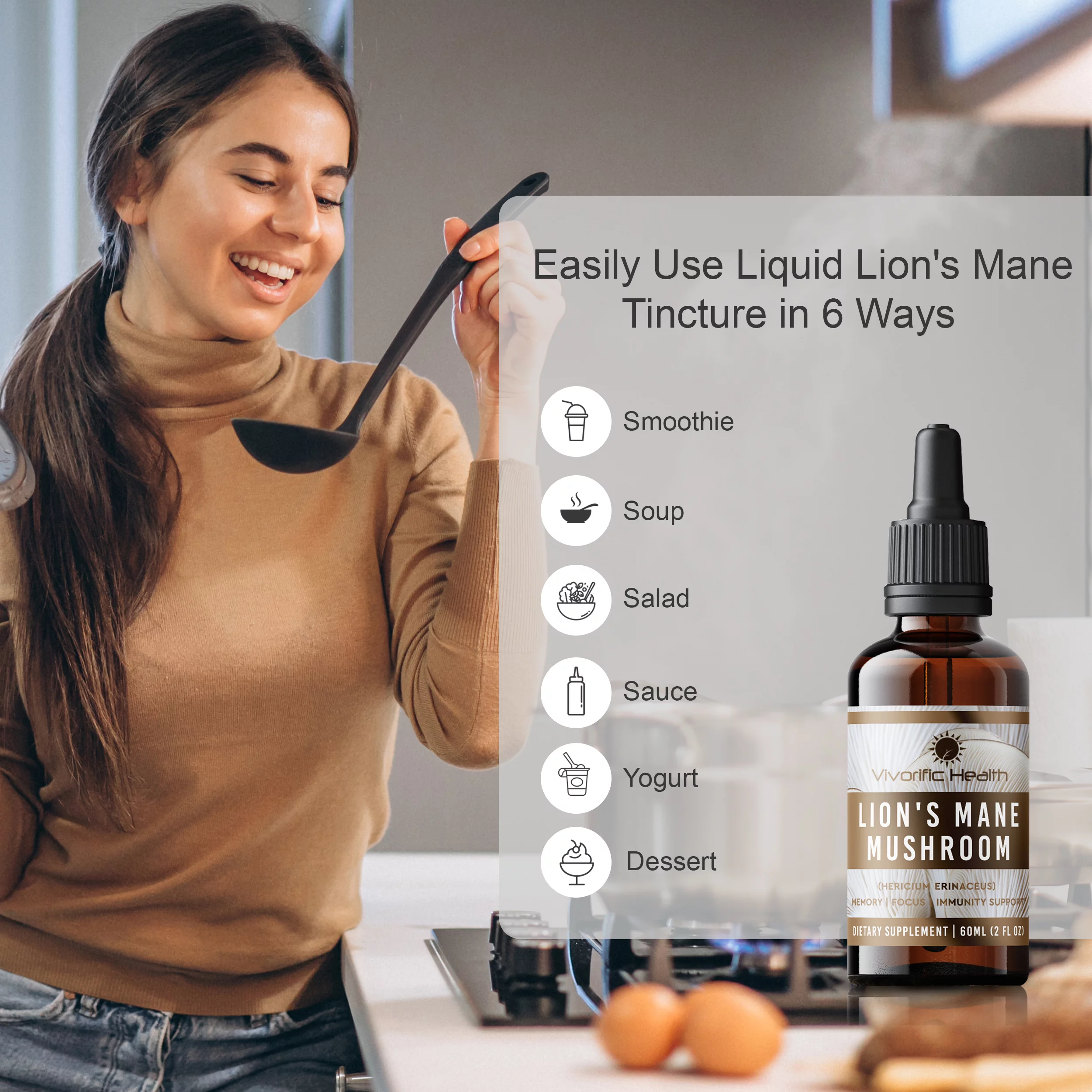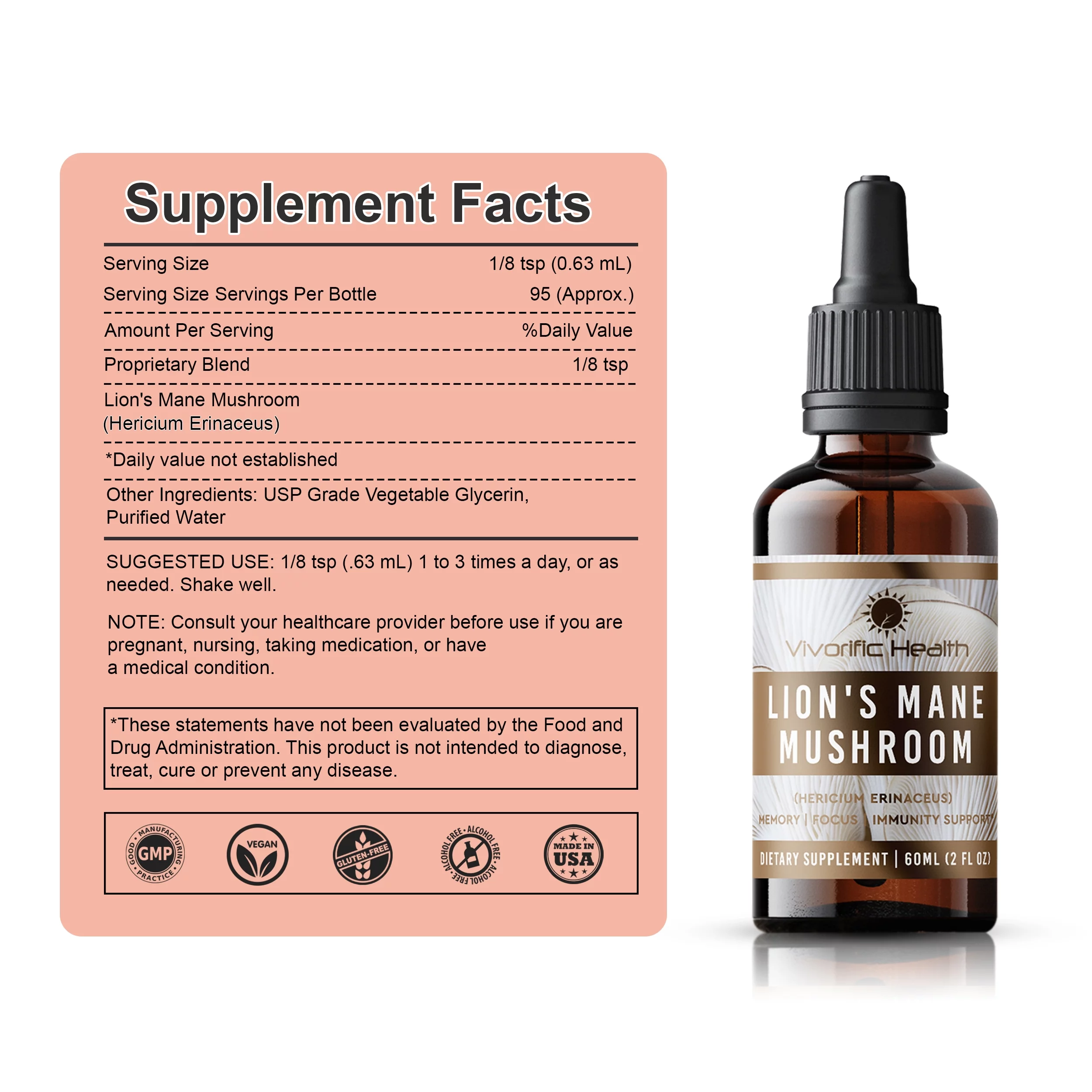 Vivorific Health Lion's Mane Mushroom Supplement Tincture | Alcohol Free Brain and Memory Drops | Mental Clarity, Focus and Memory Support 2 fl. Oz (95 Servings)