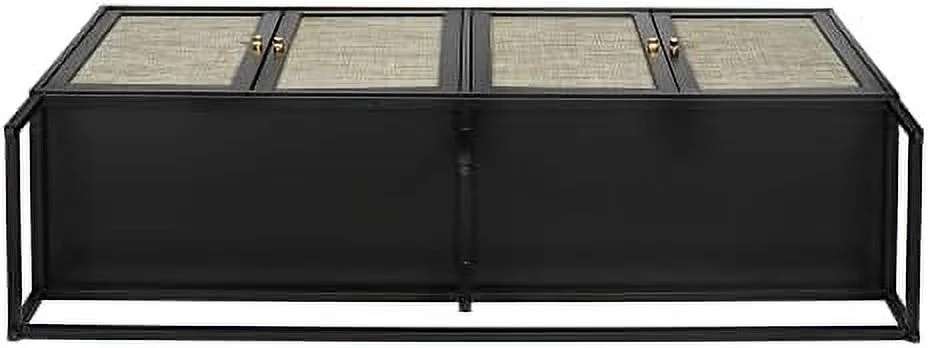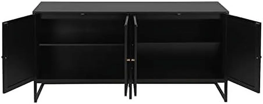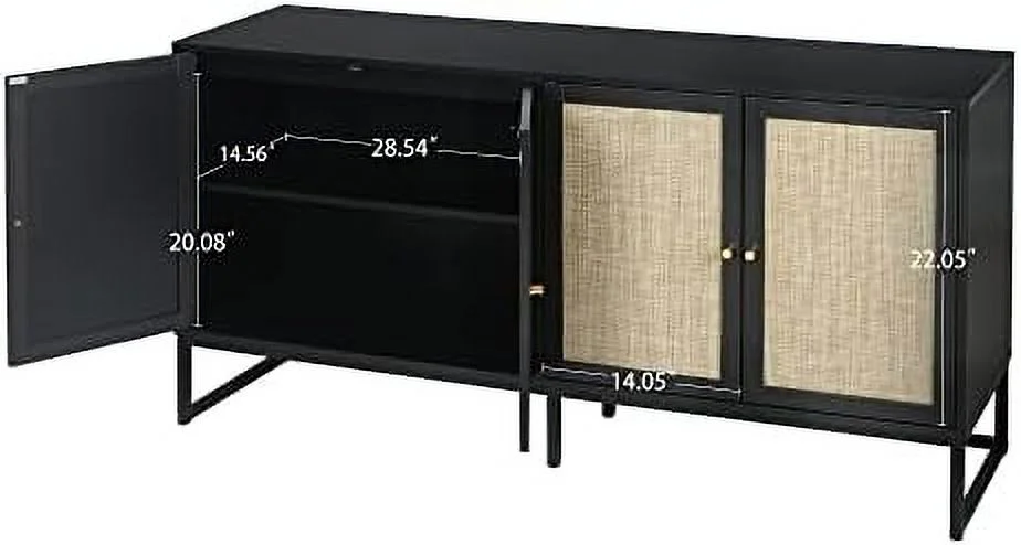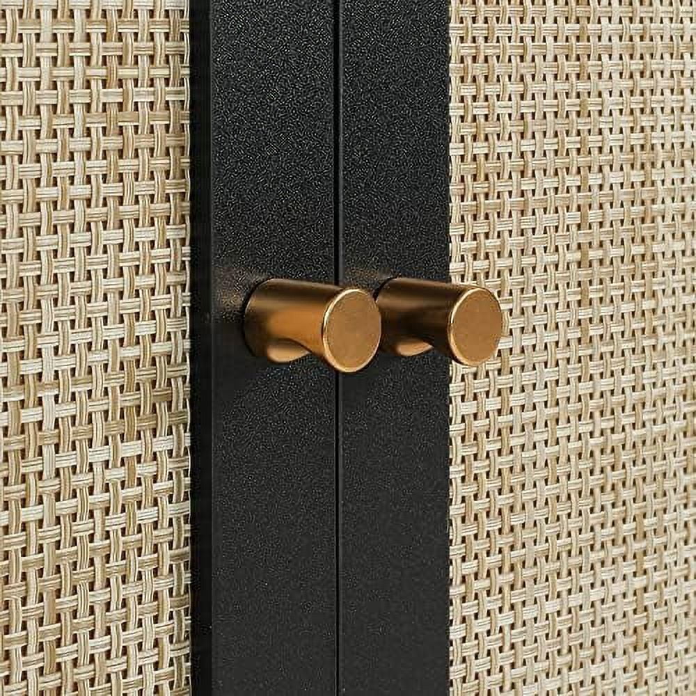 HJZUINIUNIU Modern Sideboard Cabinet Accent Cabinet with Rattan Doors and Adjustable Shelves Freestanding Sideboard Cabinet for Kitchen Dining Living Room Hallway Office (Black)