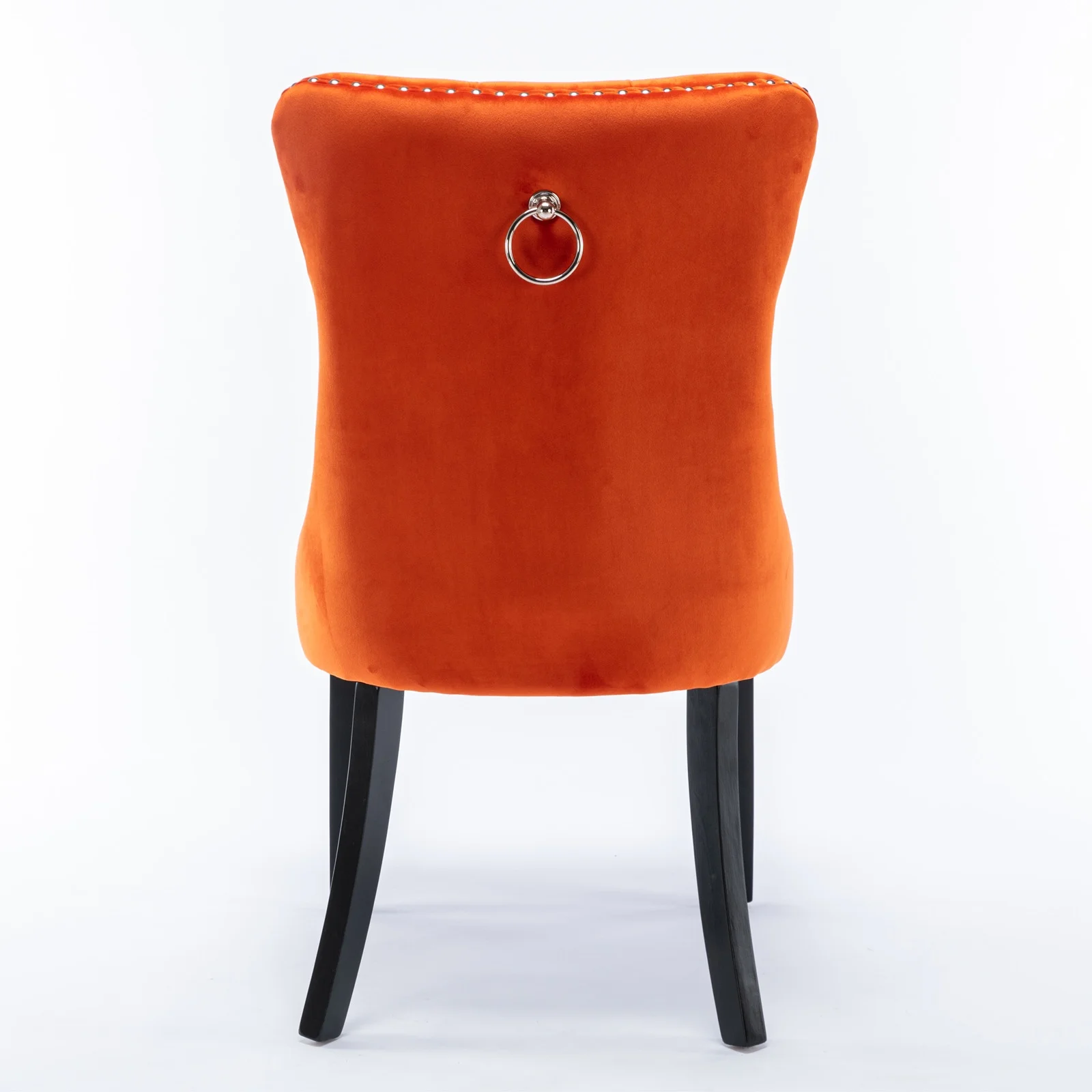 Nikki Collection Modern, High-end Tufted Solid Wood Contemporary Velvet Upholstered Dining Chair with Wood Legs Nailhead Trim 2-Pcs Set, Orange, SW2001OG