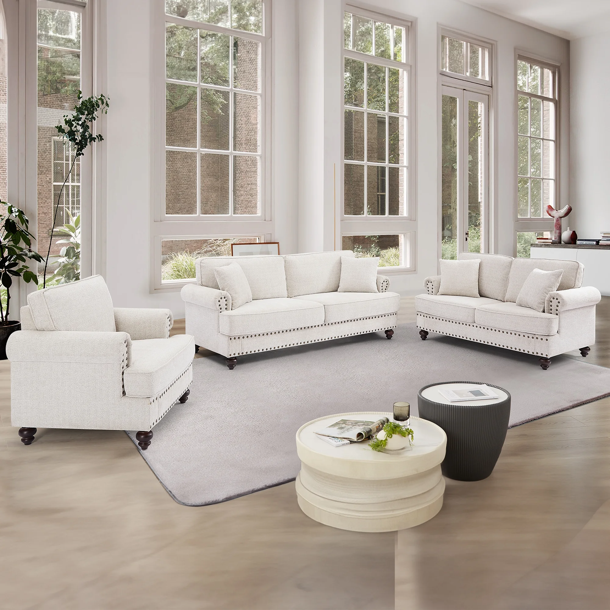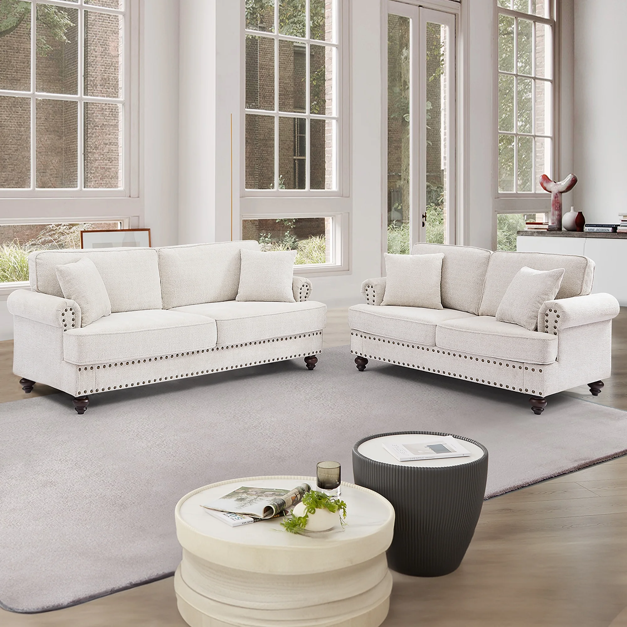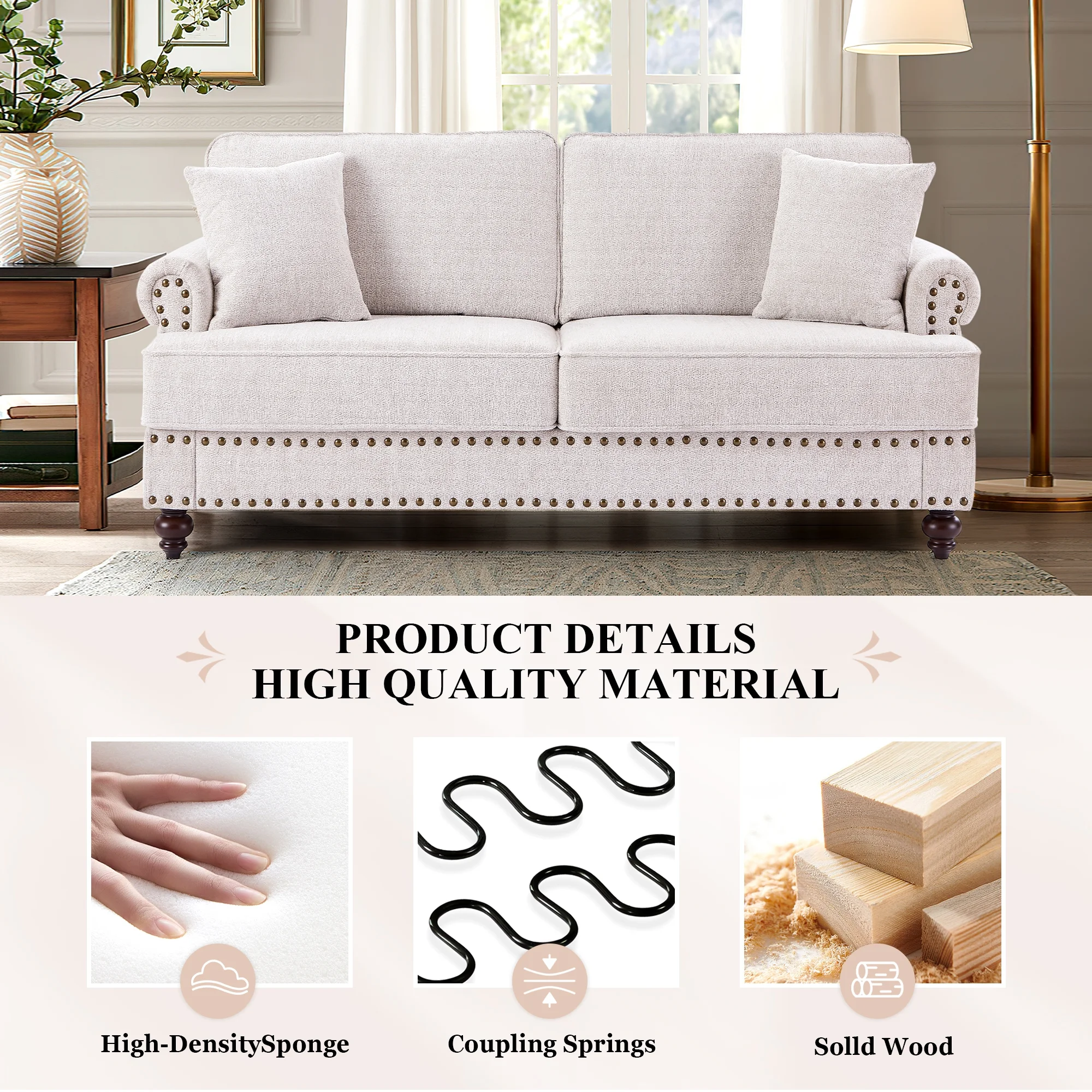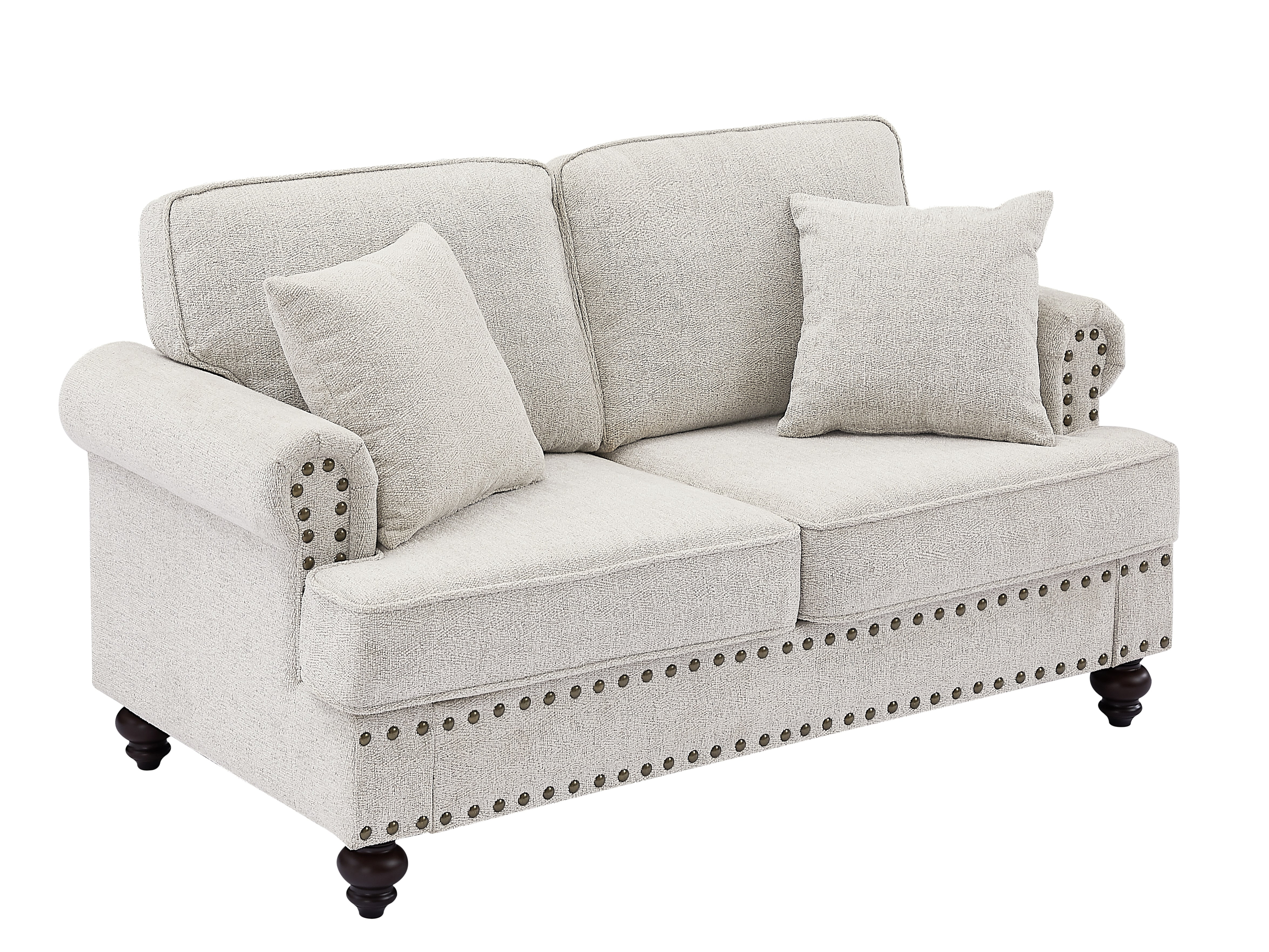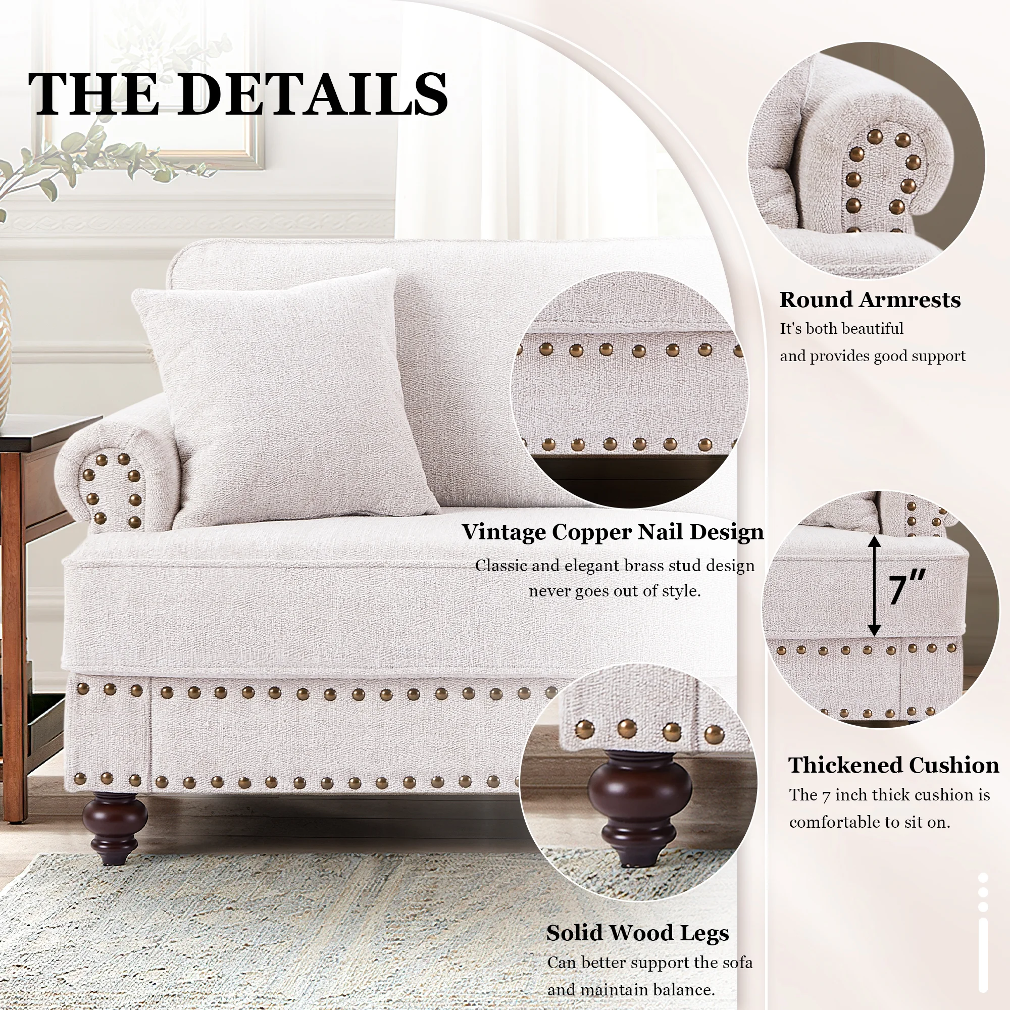 Muumblus Mid-Century Loveseat Sofa, 2 Seater Sofa with Nailhead, 61" Chenille Upholstered Couches for Living Room, White