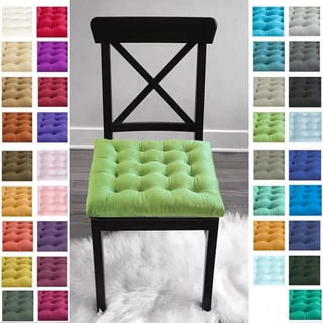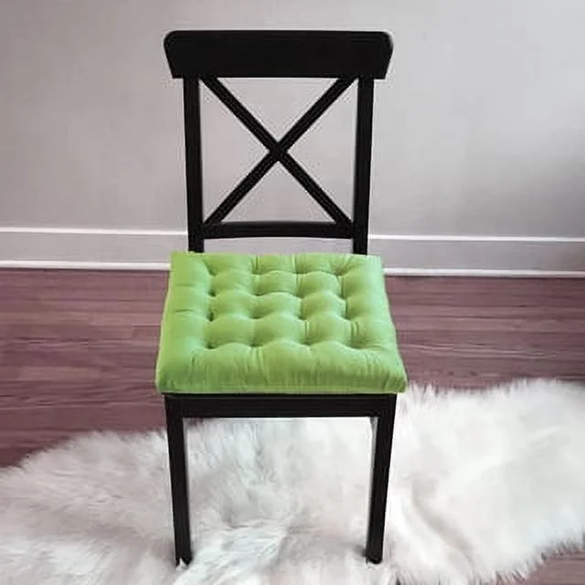 My Infinity Store 16" Plush Square Tufted Chair Pad/Cushions Tie-Backs (Sage Green, 4 Piece)
