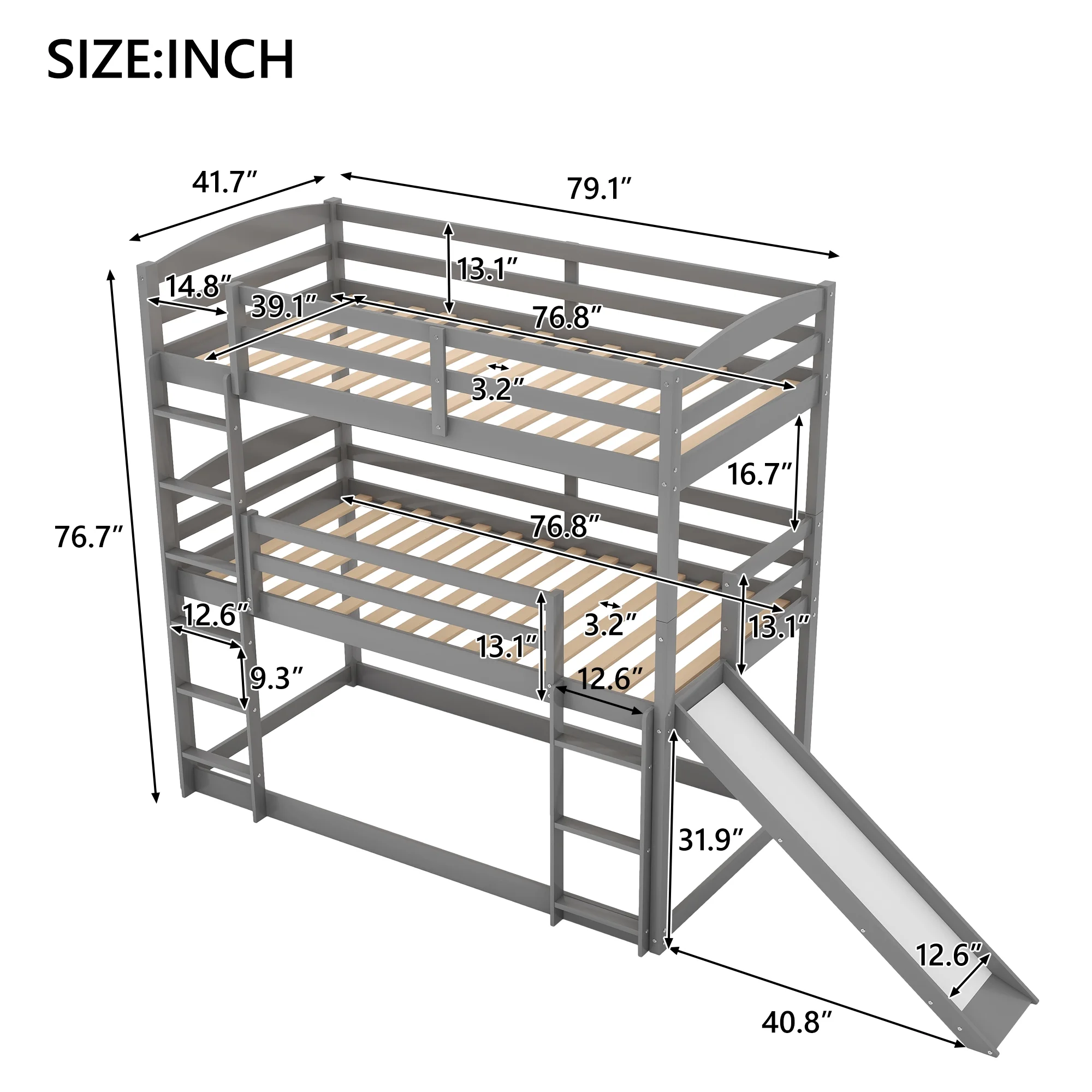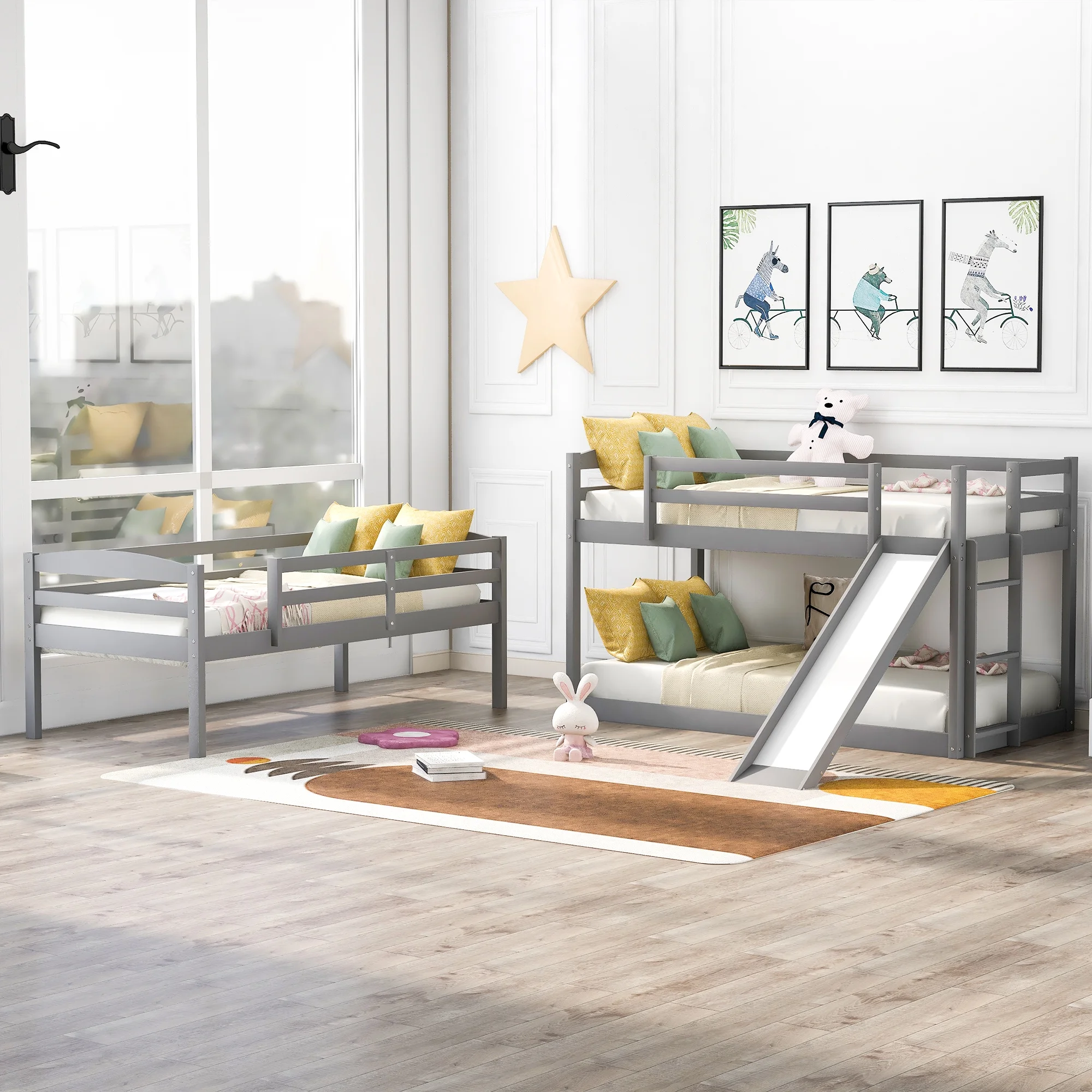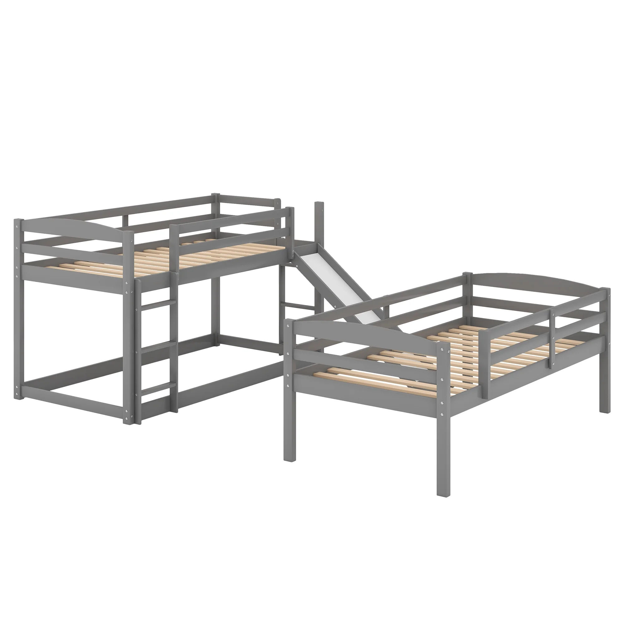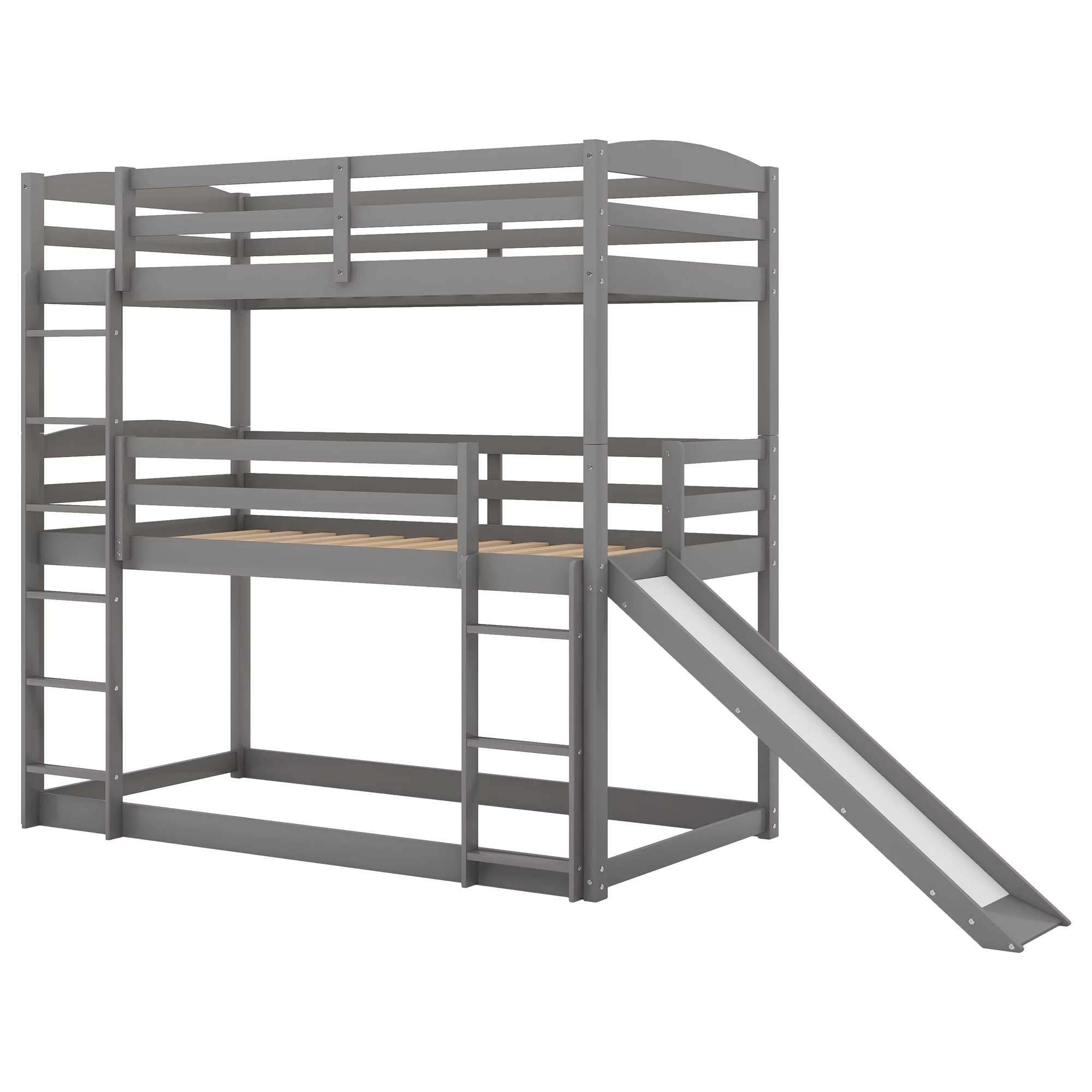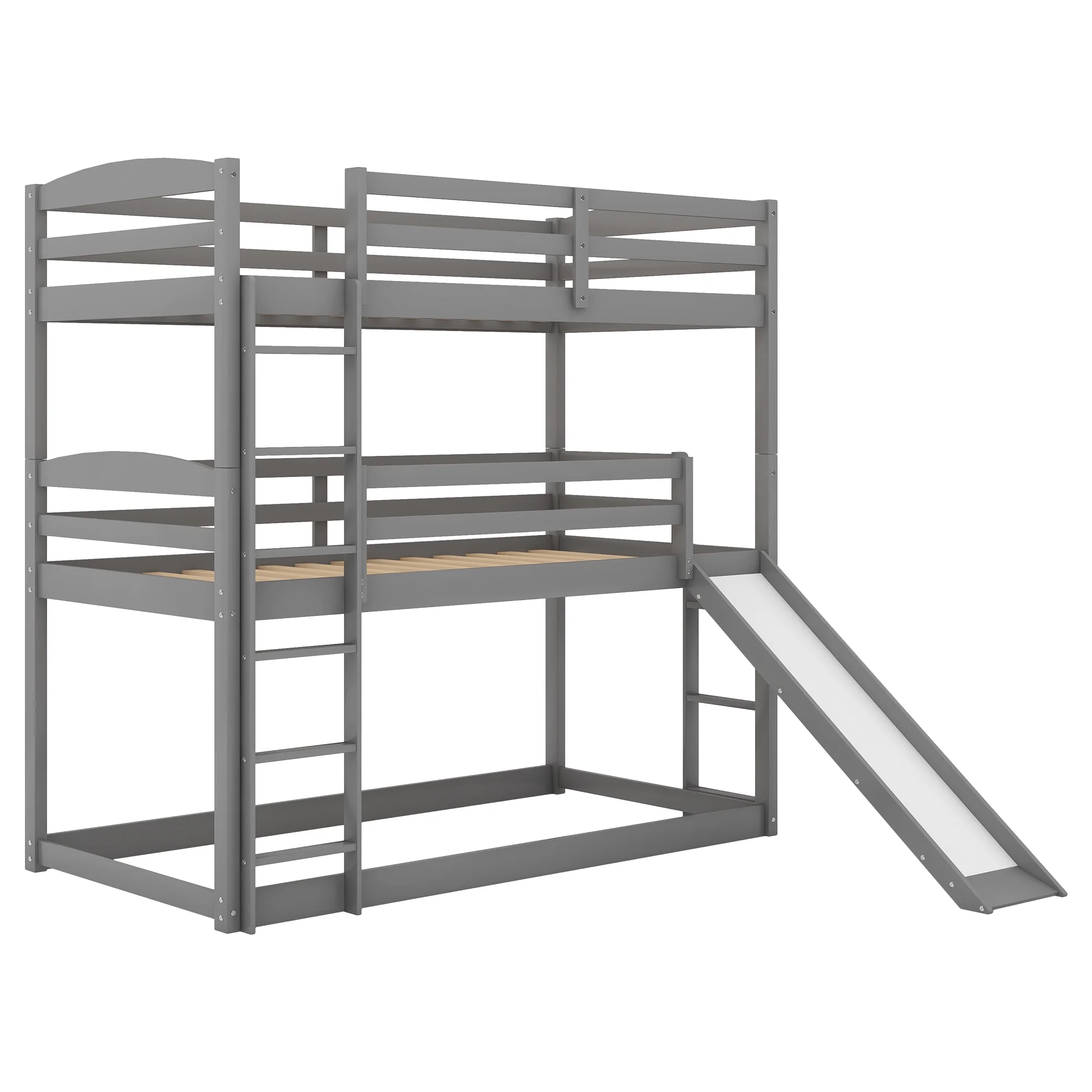 Merax Wood Twin-over-Twin-over-Twin Floor Triple Bunk Bed for Kids Room, Gray