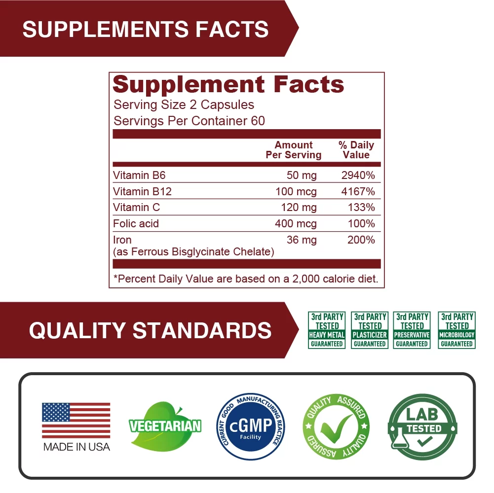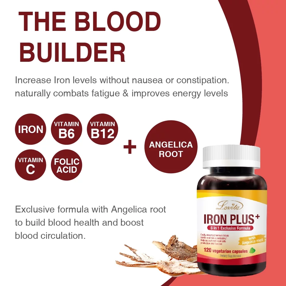 Lovita Iron Plus, Iron Supplement 18 mg (from Ferrous Bisglycinate Chelated Iron) Plus Vitamin C & Angelica Root, Gentle Iron Supplement for Anemia, Non Constipating Formula, 120 Capsules (Pack of 3)
