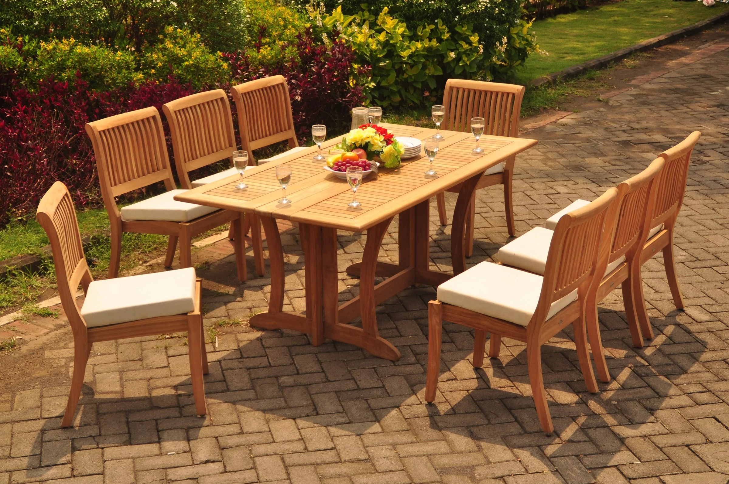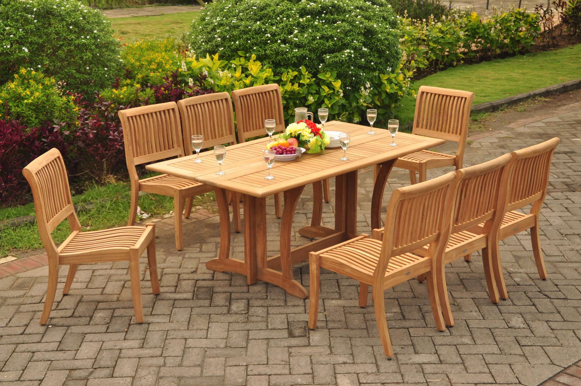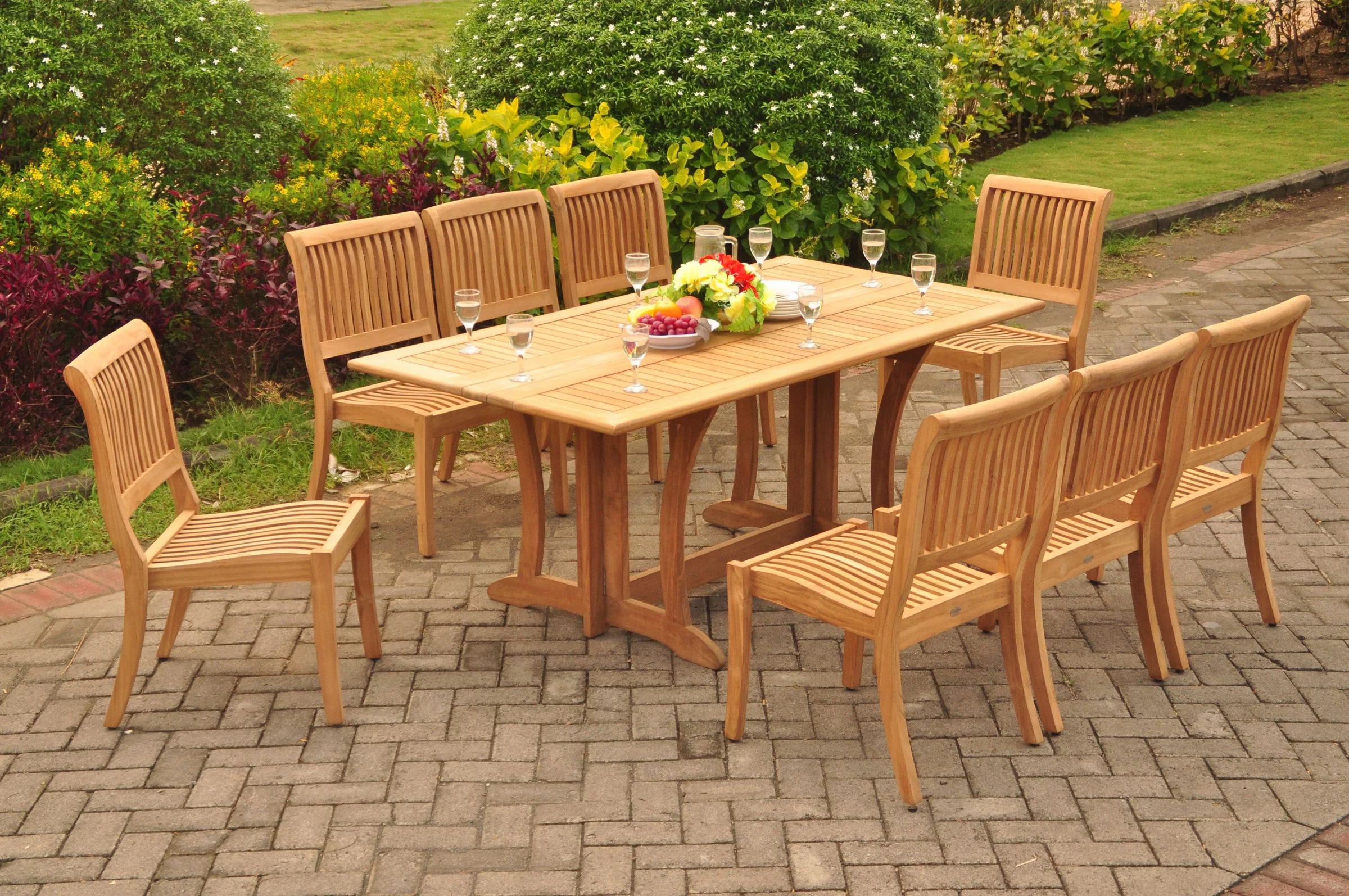 Teak Dining Set: 6 Seater 7 Pc: 69" Warwick Console Folding Dining Rectangle Table And 8 Arbor Armless Chairs Outdoor Patio Grade-A Teak Wood WholesaleTeak #WMDSAB37