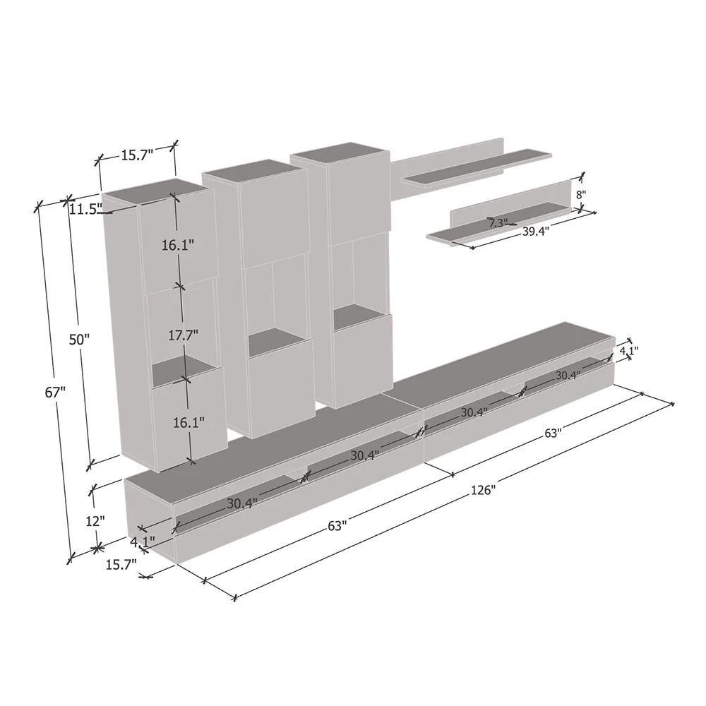 Fly E2 35TV Wall Mounted Floating Modern Entertainment Center