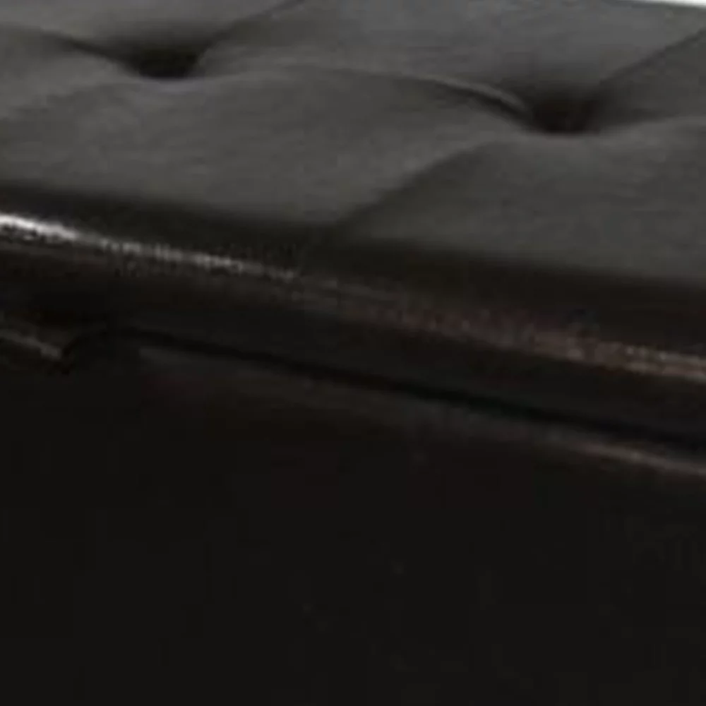 Wooden Shoe Storage Bench with Tufted Leatherette Seating, Dark Brown- Saltoro Sherpi
