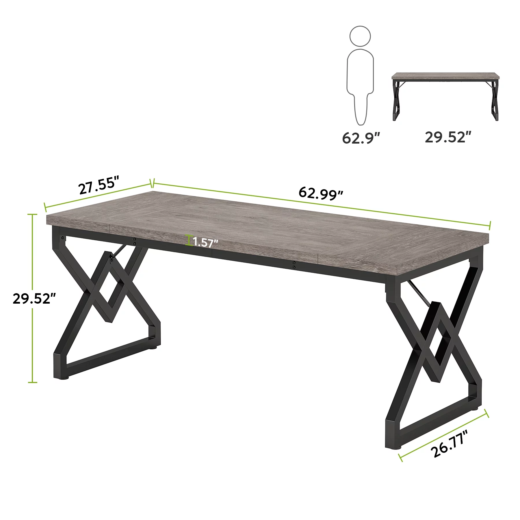 Tribesigns 63 in. Computer Desk, Executive Desk Dining Table with Extra Thick Wooden Tabletop and Thicken Frame, Modern Simple Workstation Business Furniture for Home Office