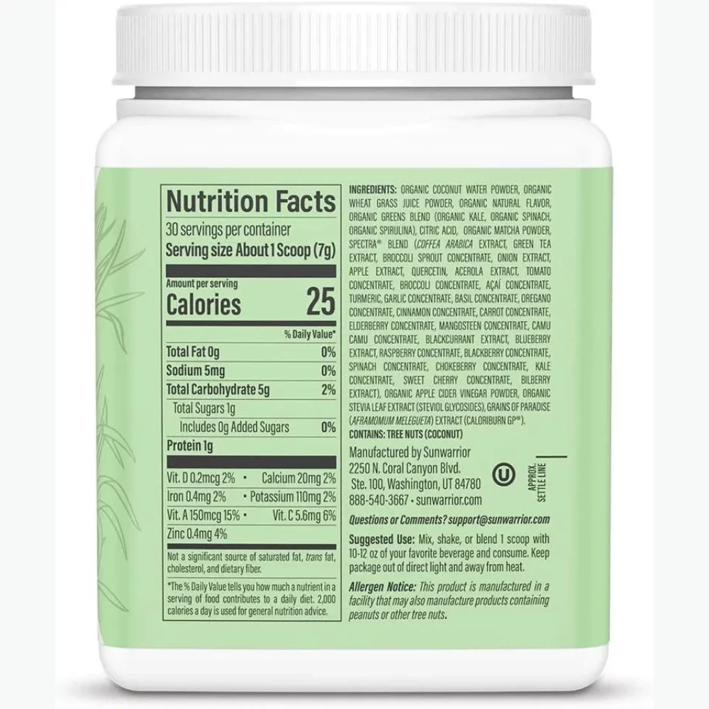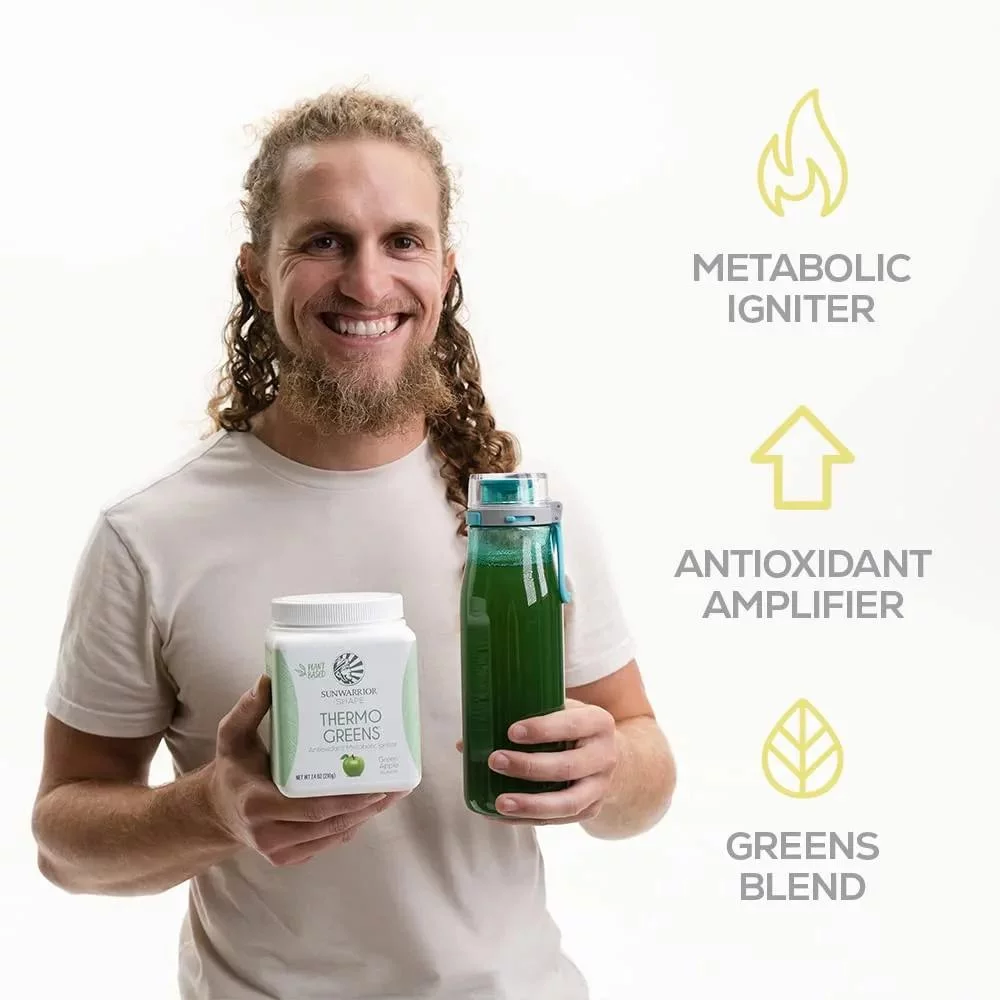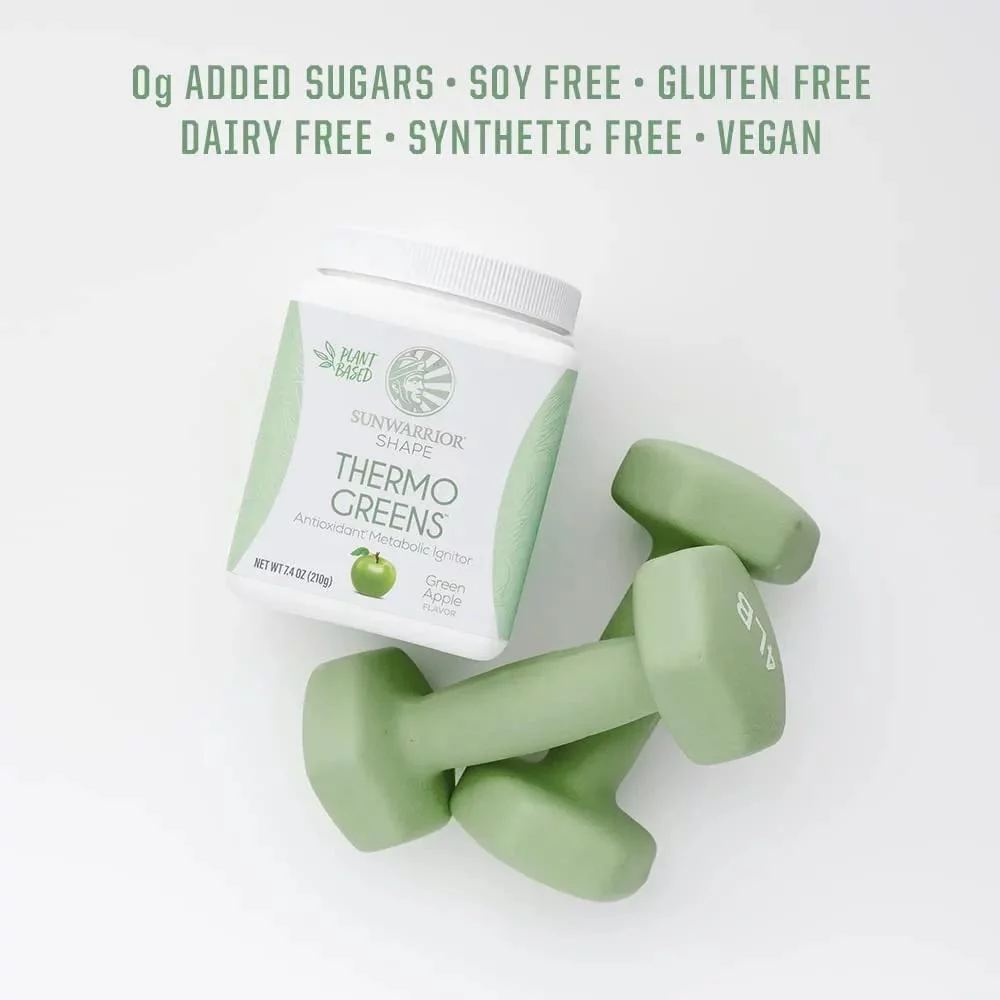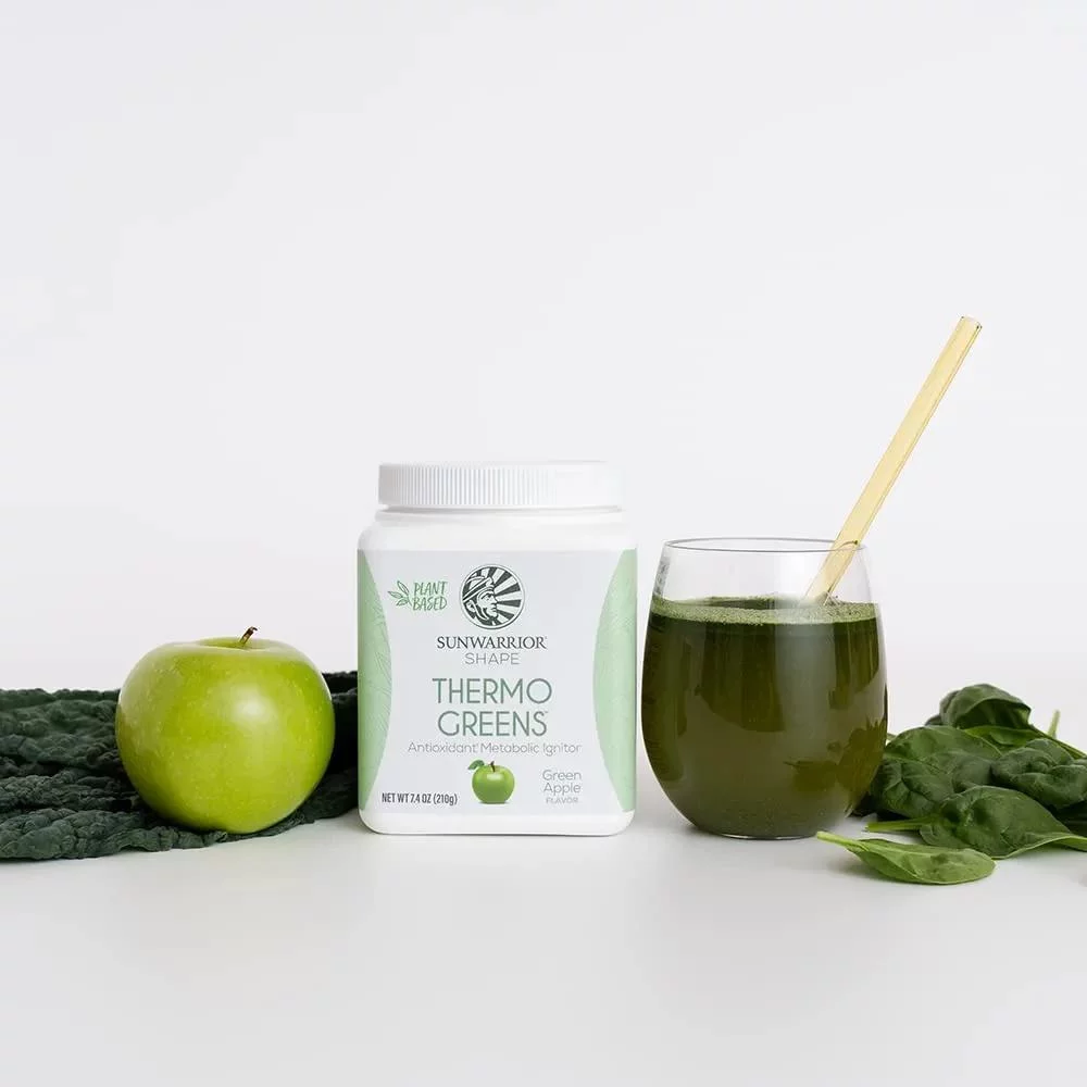 Sunwarrior Thermo Greens Blend Powder | Supergreens Powder Mix Metabolism Booster, Green Apple, 7.4 oz
