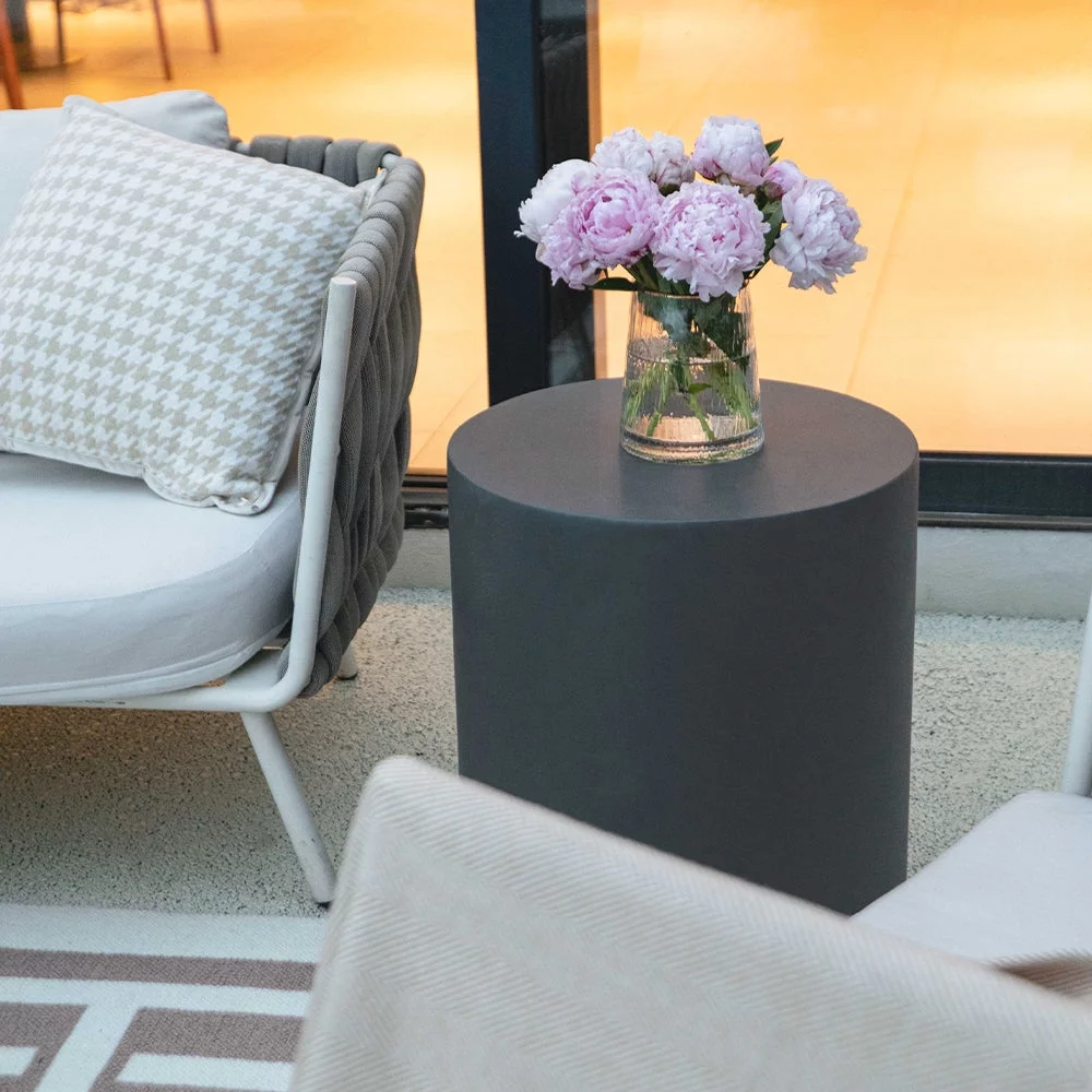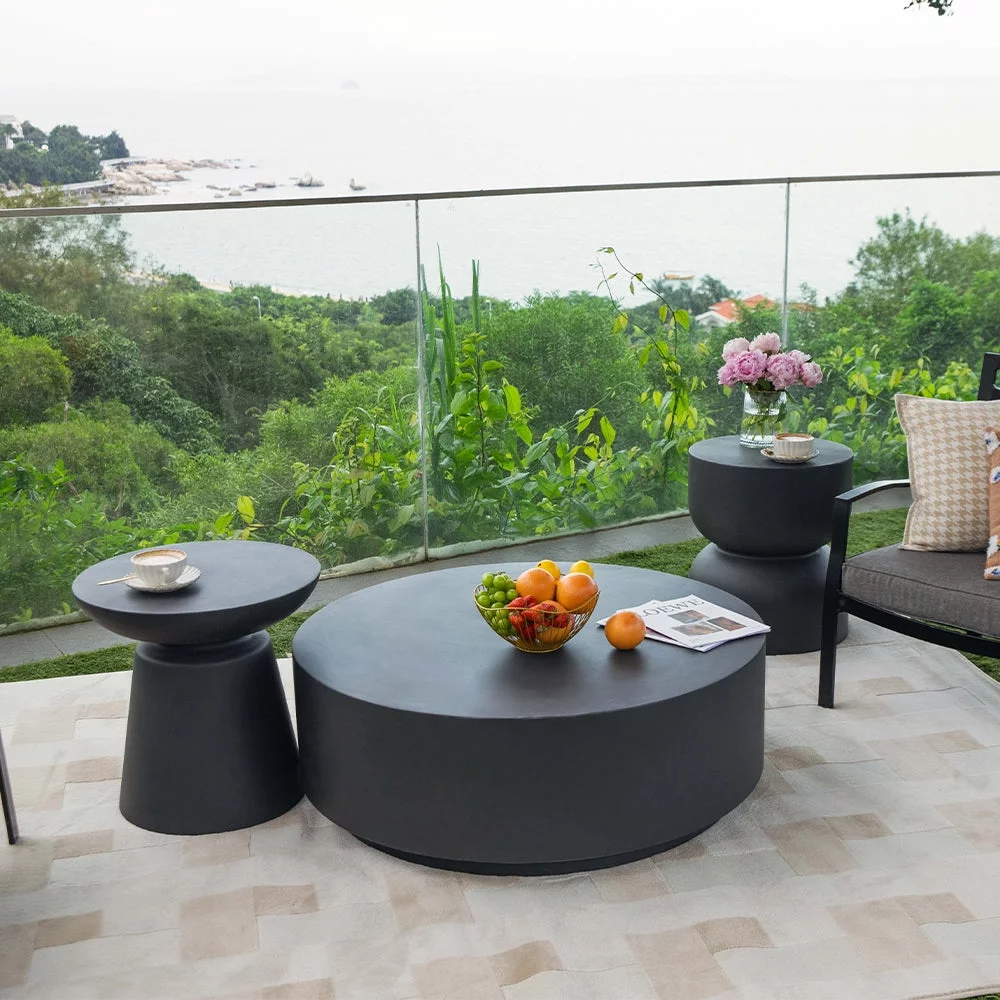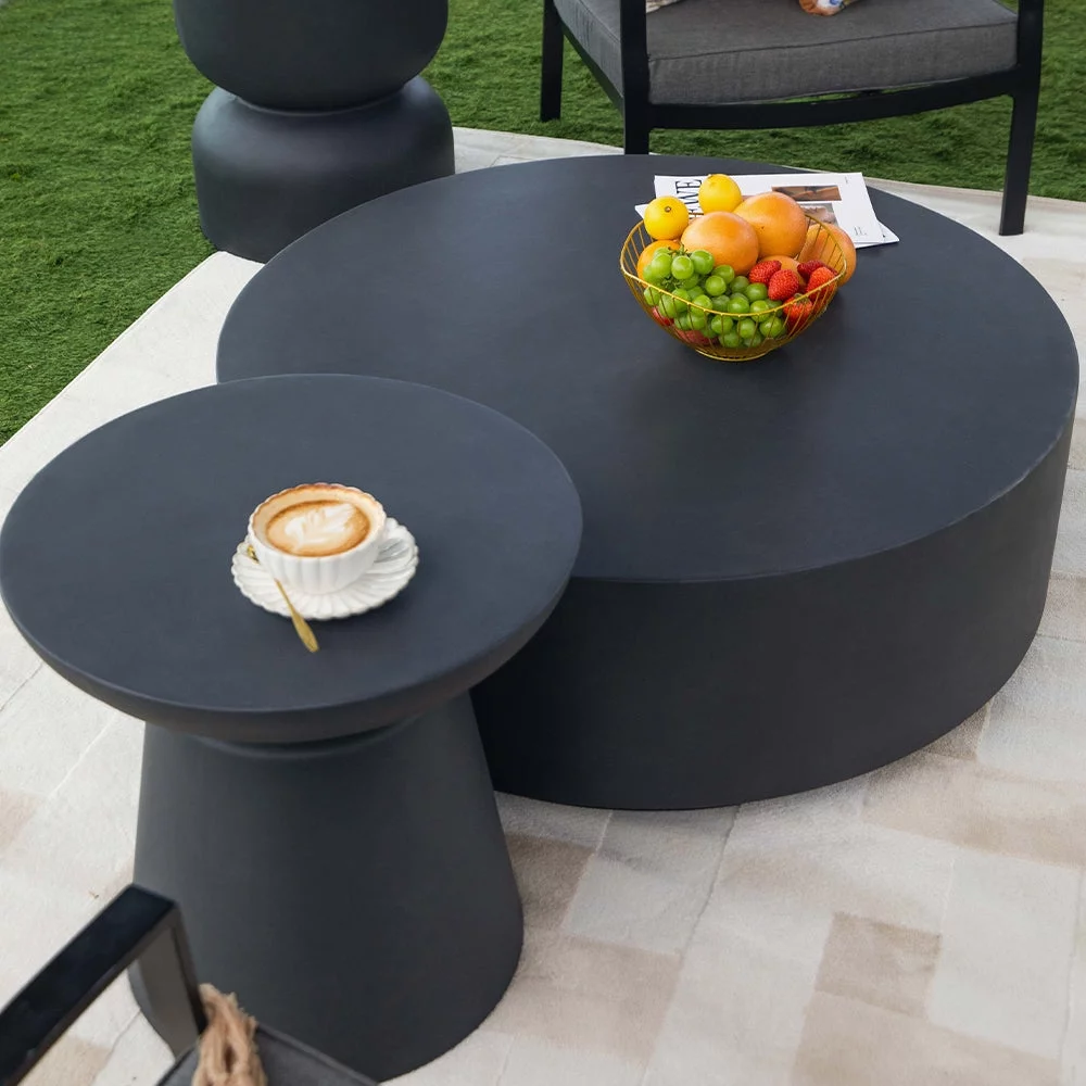 Elementi Rome Coffee Table End Table Set of 3 for Indoor Outdoor Patio Tables Outdoor Furniture Coffee Table Set Side Table Living Room Furniture Center Table Nightstand Concrete, Slate Black - Round