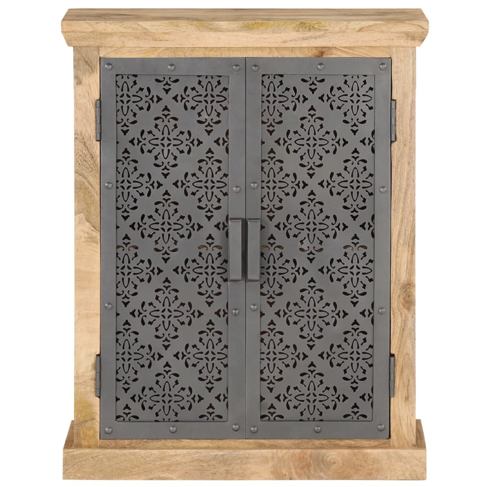 moobody Sideboard with Steel Doors 23.6in x 13.8in x 29.5in Solid Mango Wood Storage Cabinet Sofa End Table for Living Room, Bedroom, Home Furniture
