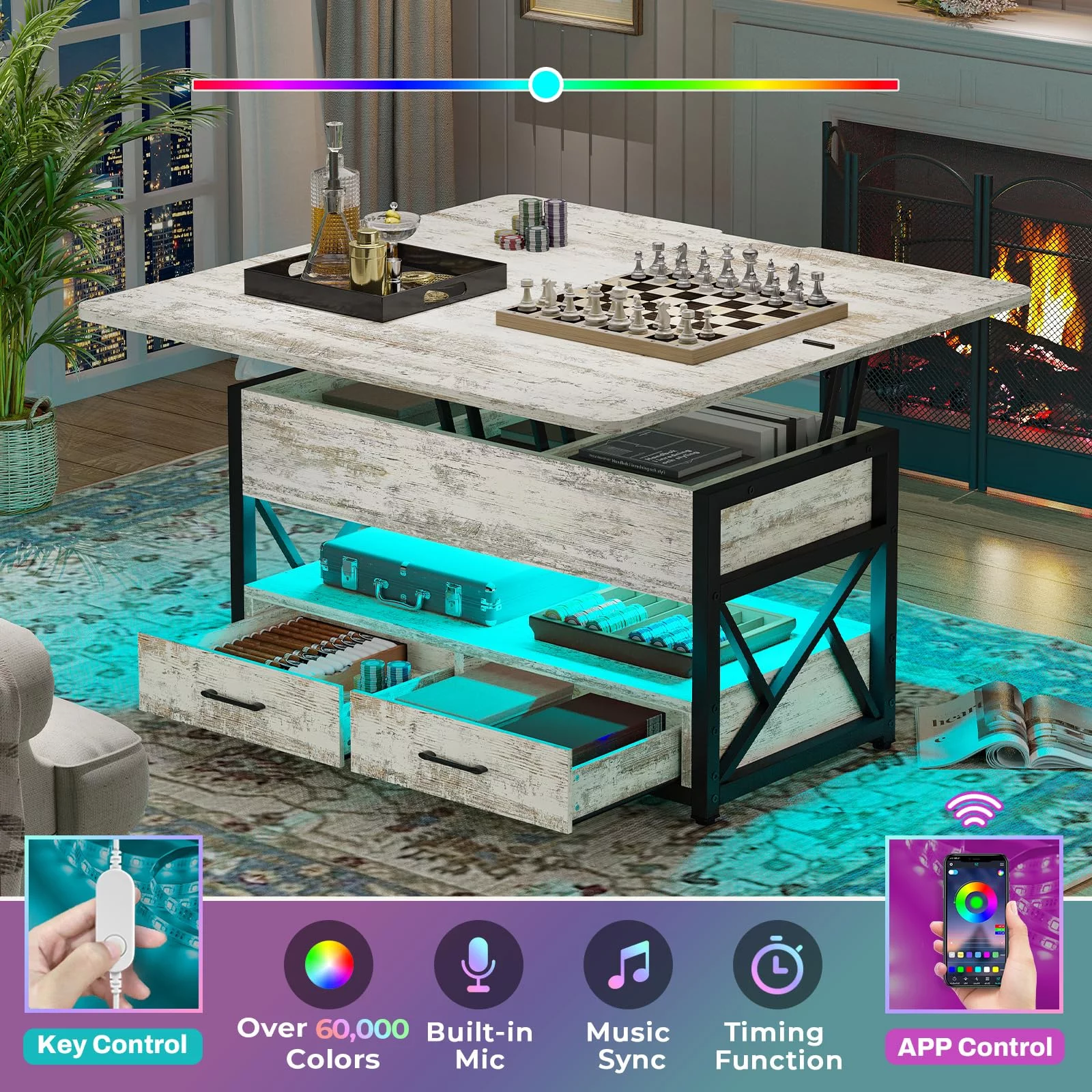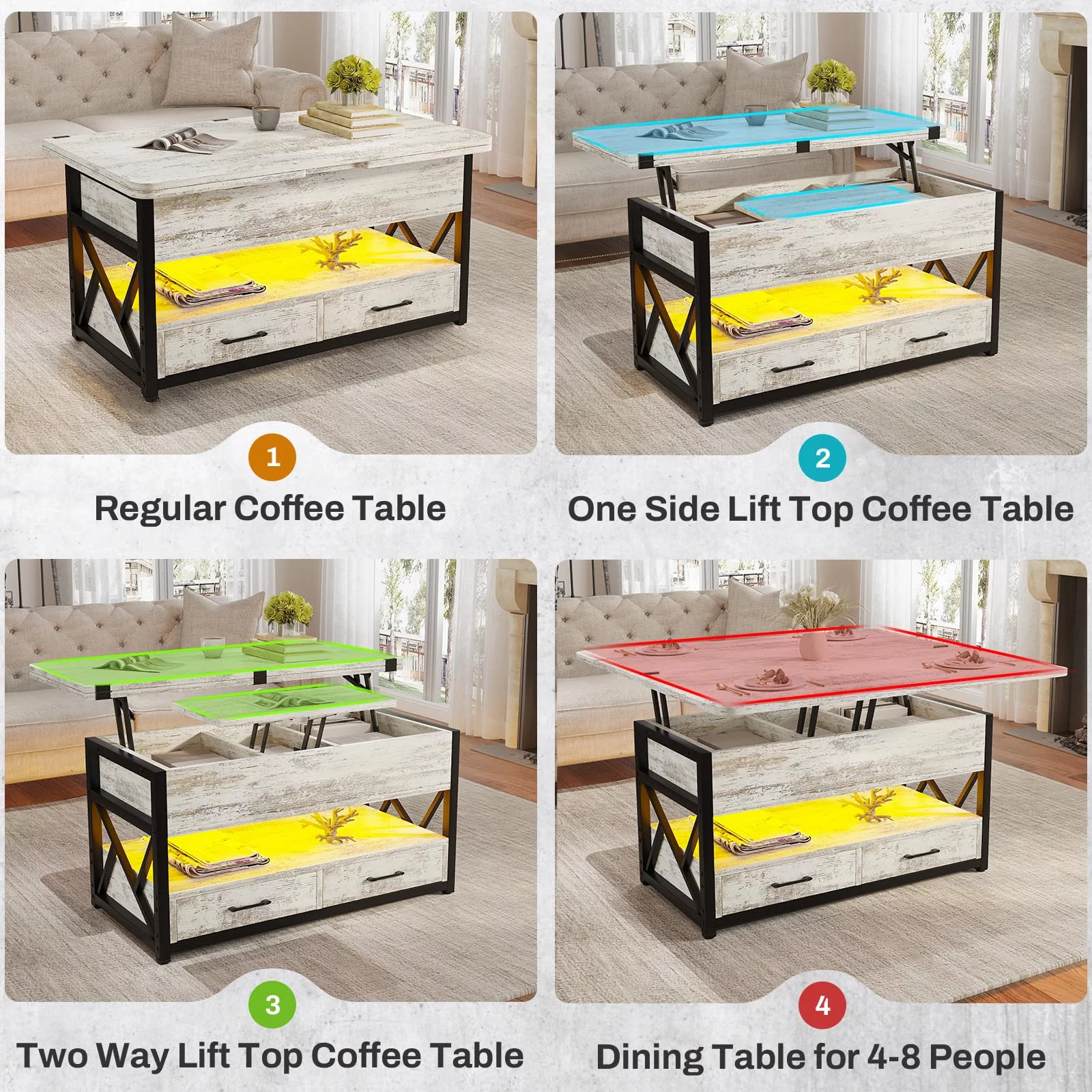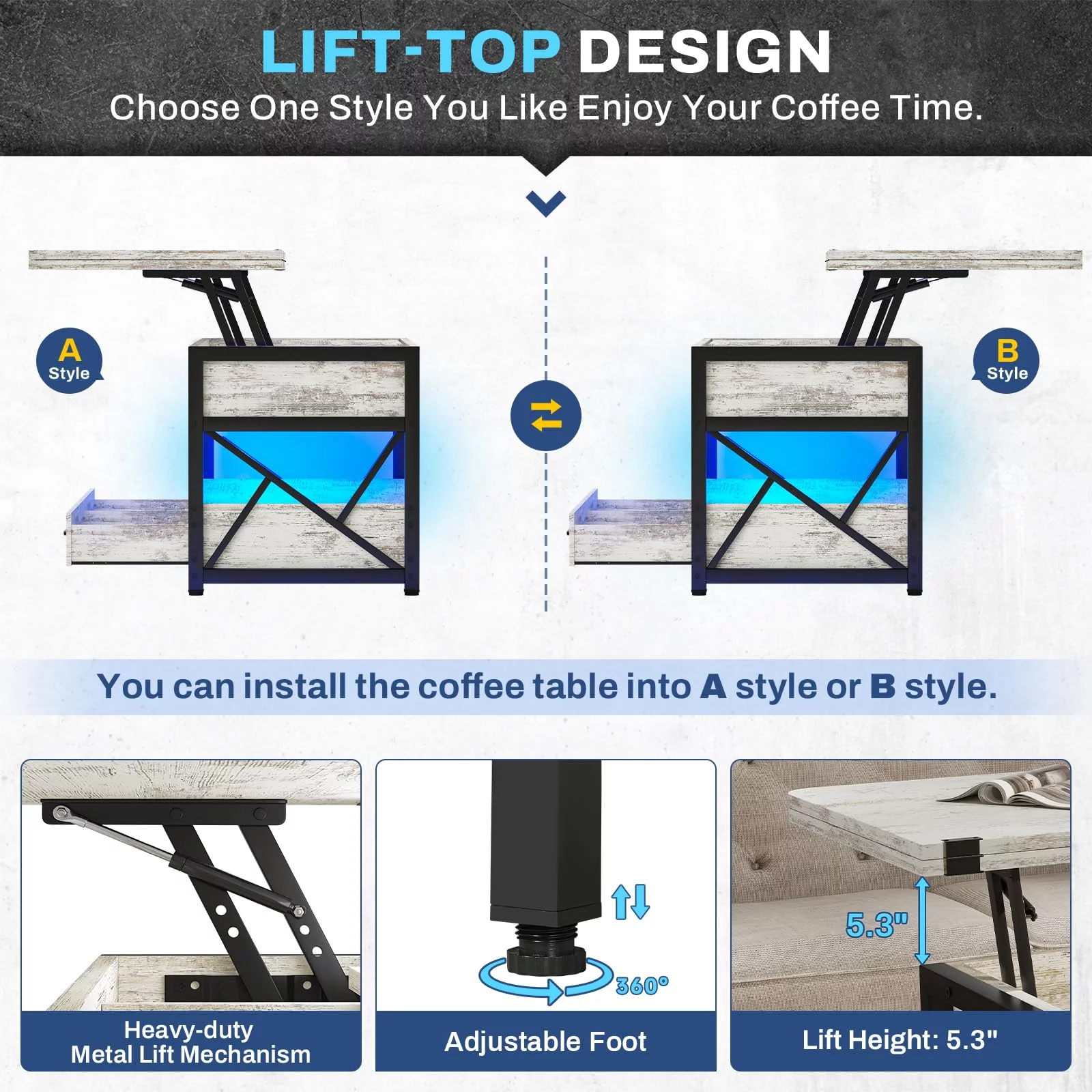 YJTONWIN Oak Wood Grain 3 Piece Coffee Table Set Brown Oak