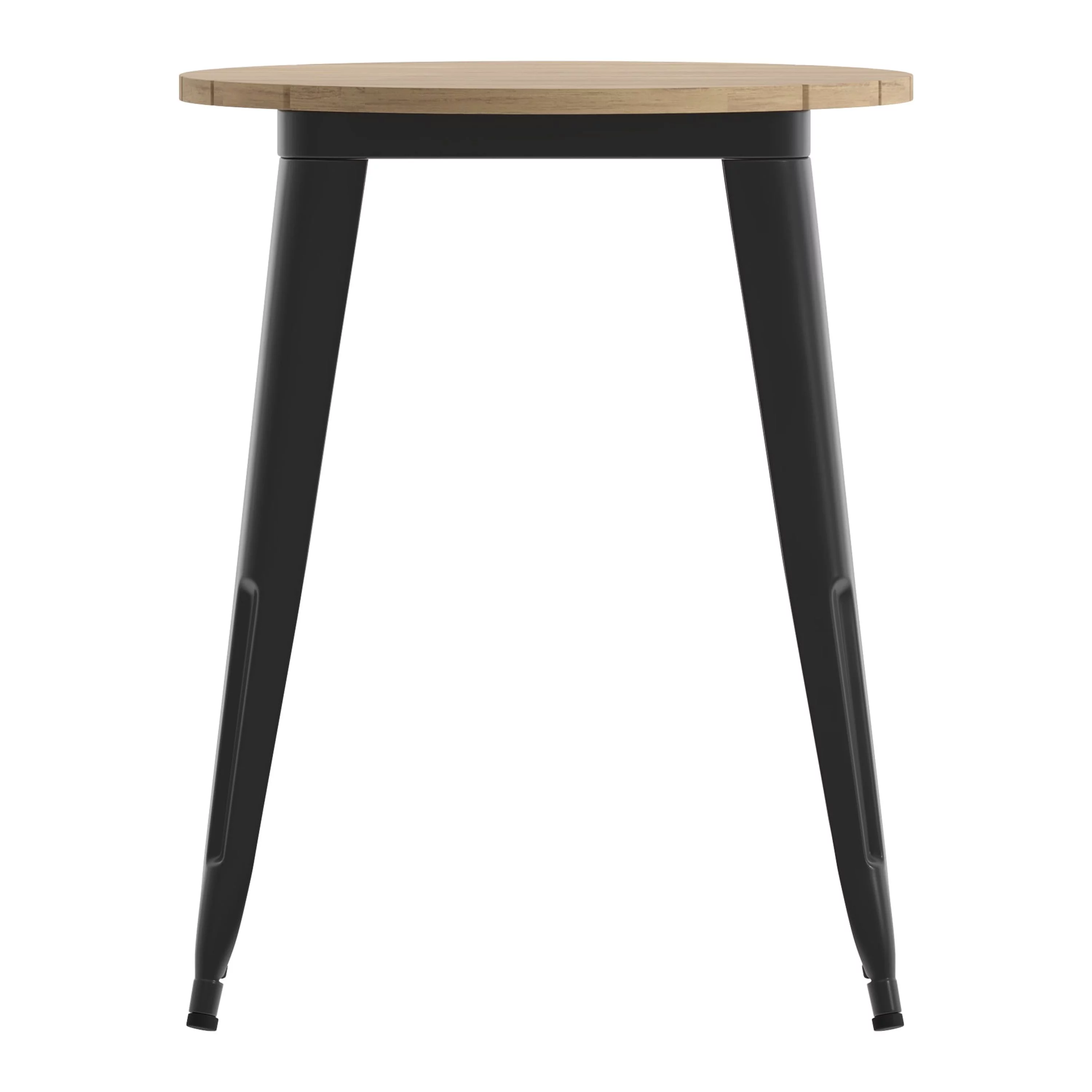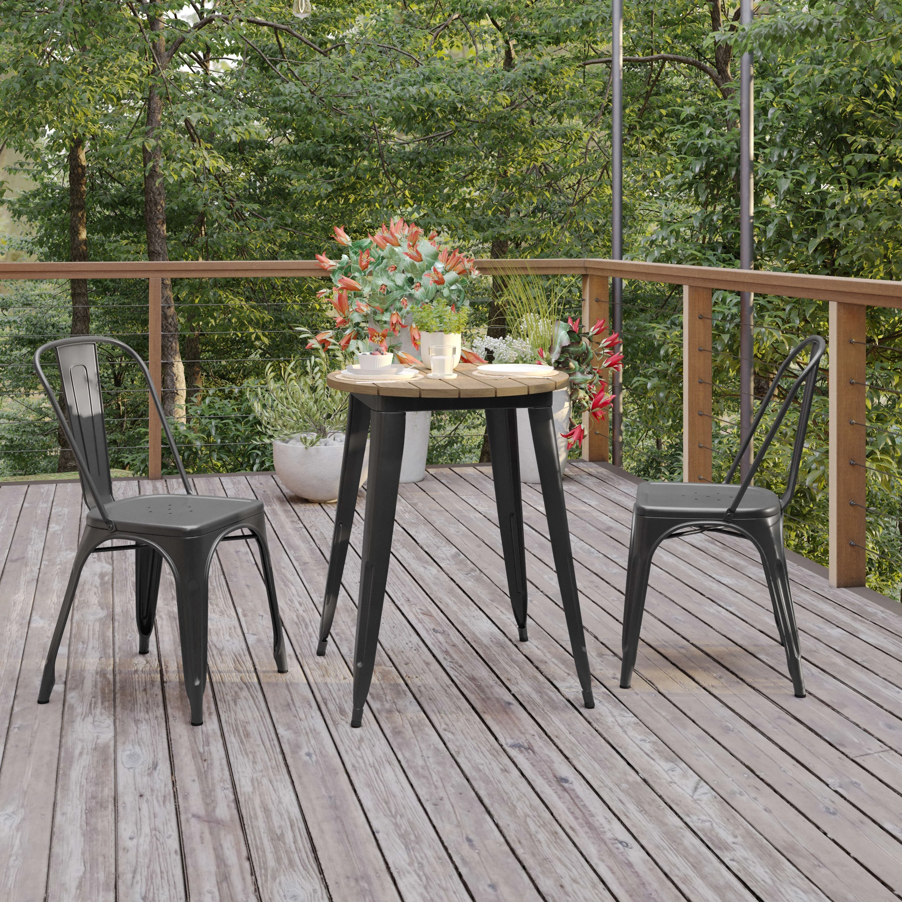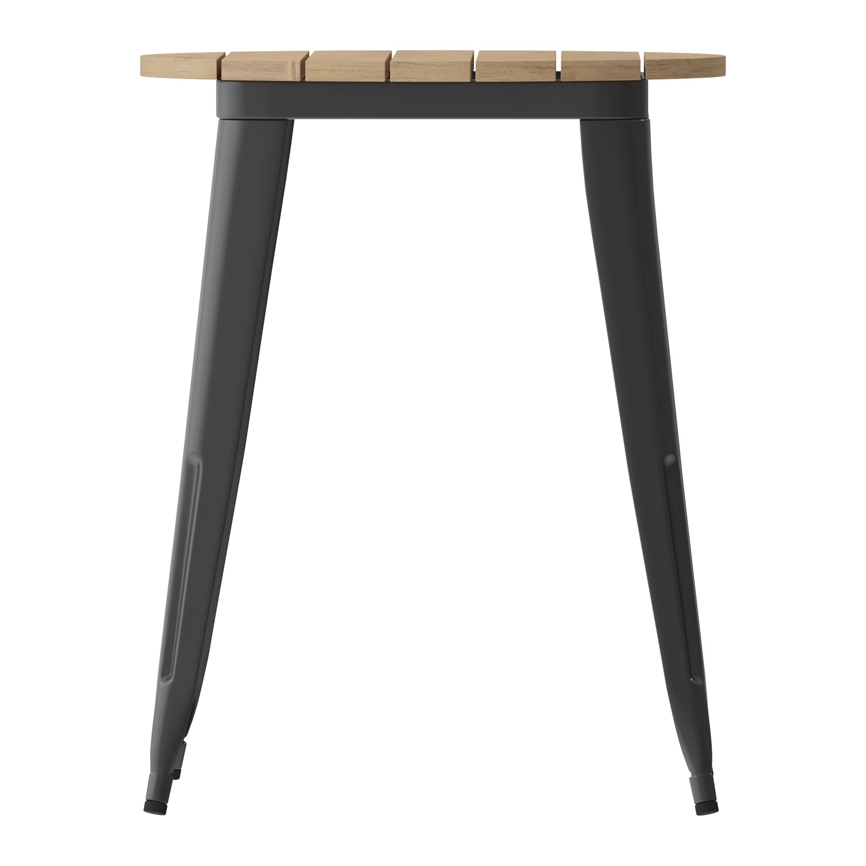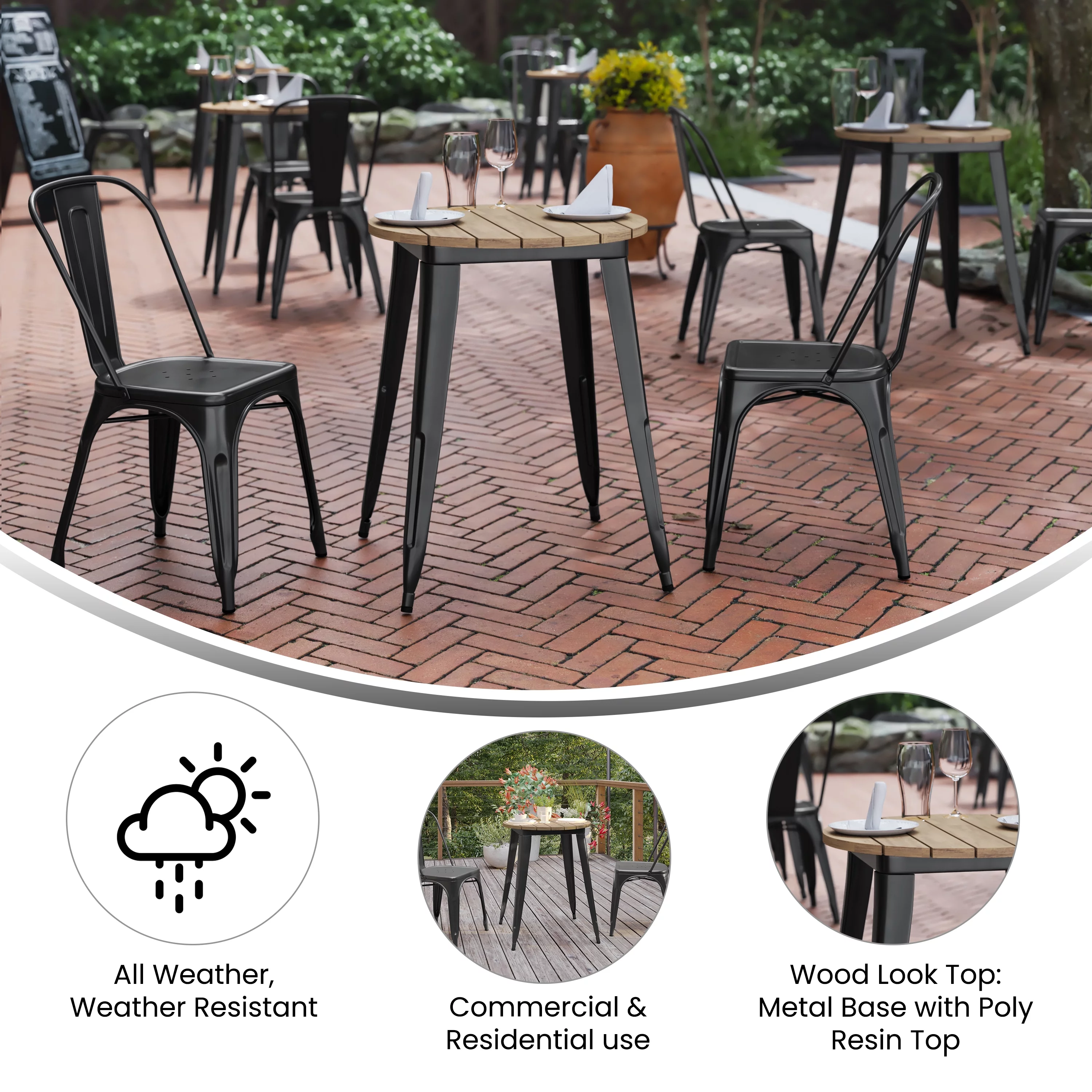 BizChair Commercial Grade Indoor/Outdoor Dining Table, 23.75" Round All Weather Brown Poly Resin Top with Black Steel Base