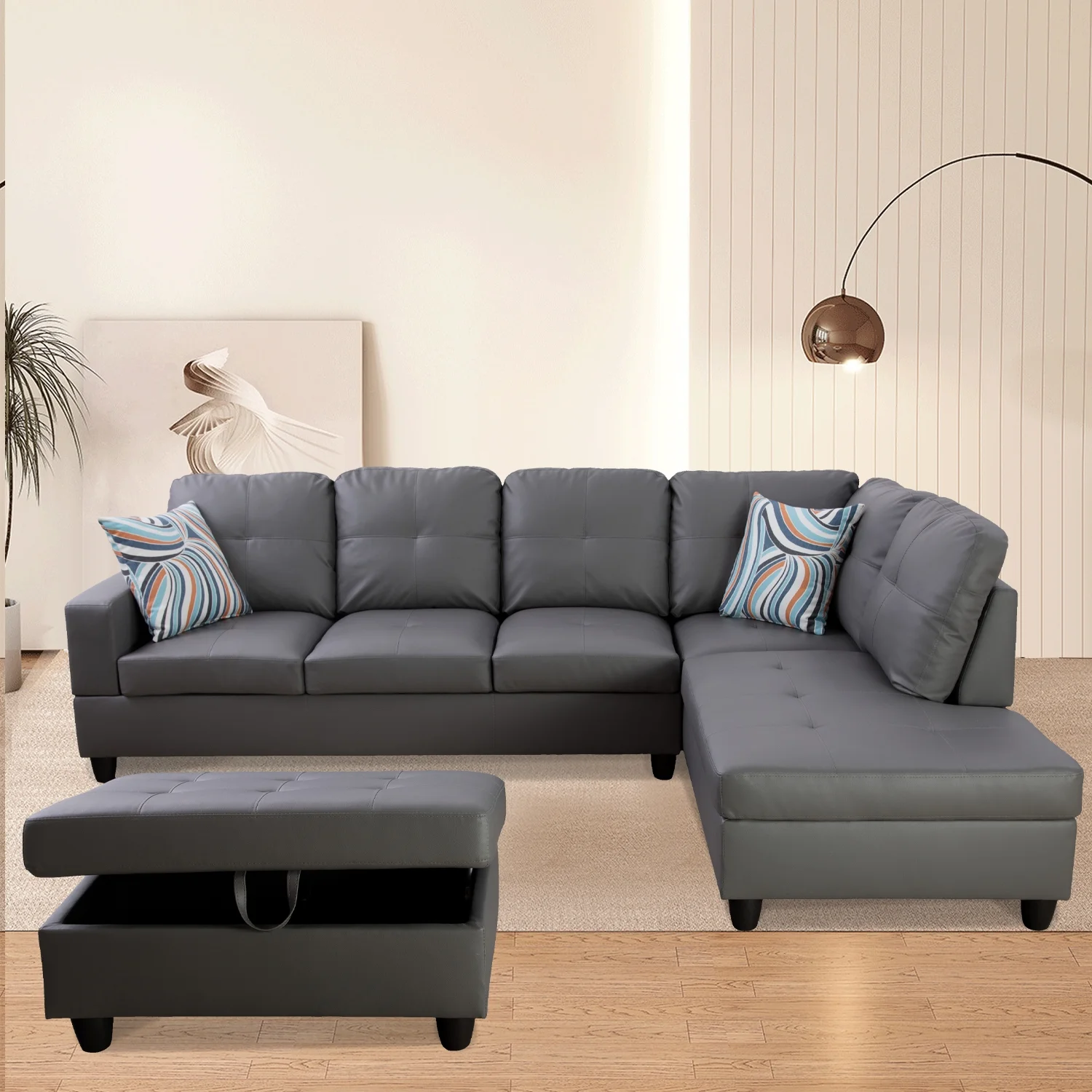 PonLiving Sectional Sofa Couch, L-Shaped 3-Piece Couch Living Room Sofa Set for Small Space, Apartment, Loft, Office, Right Hand Facing, Dark Grey