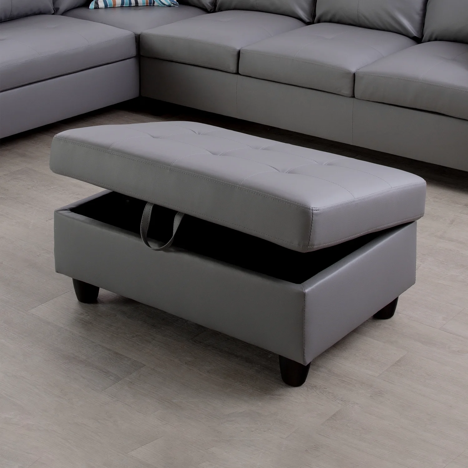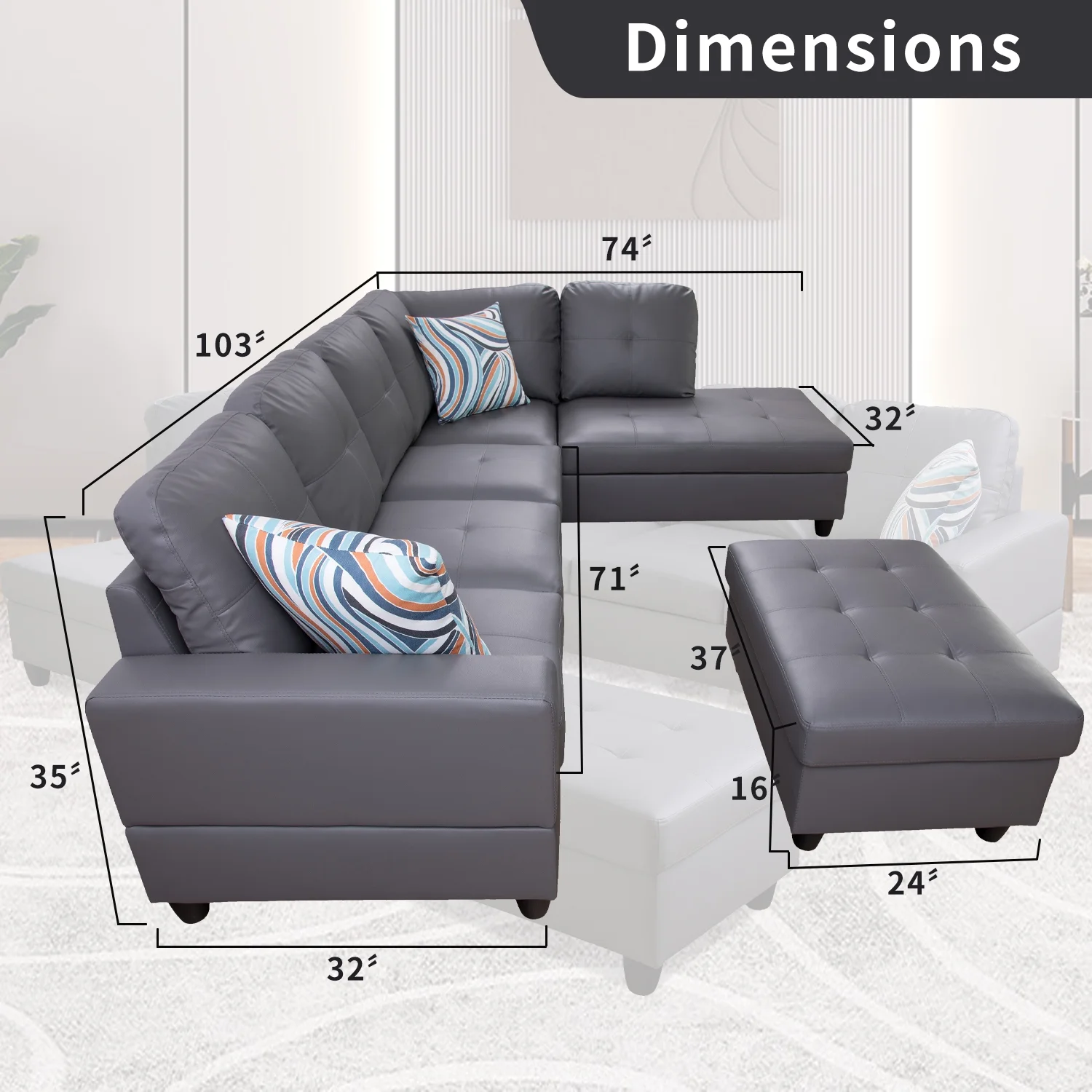 Star Home Living 3PC Faux Leather Sectional w/ottoman(Denim)