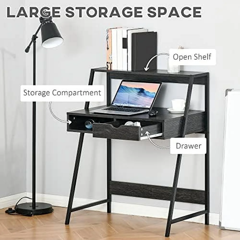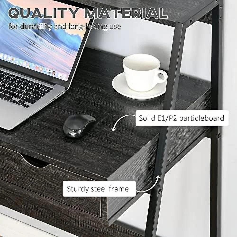 HJZBNONE Home Office Desk Computer Desk for Small Spaces Writing Table with Drawer and Shelves Grey