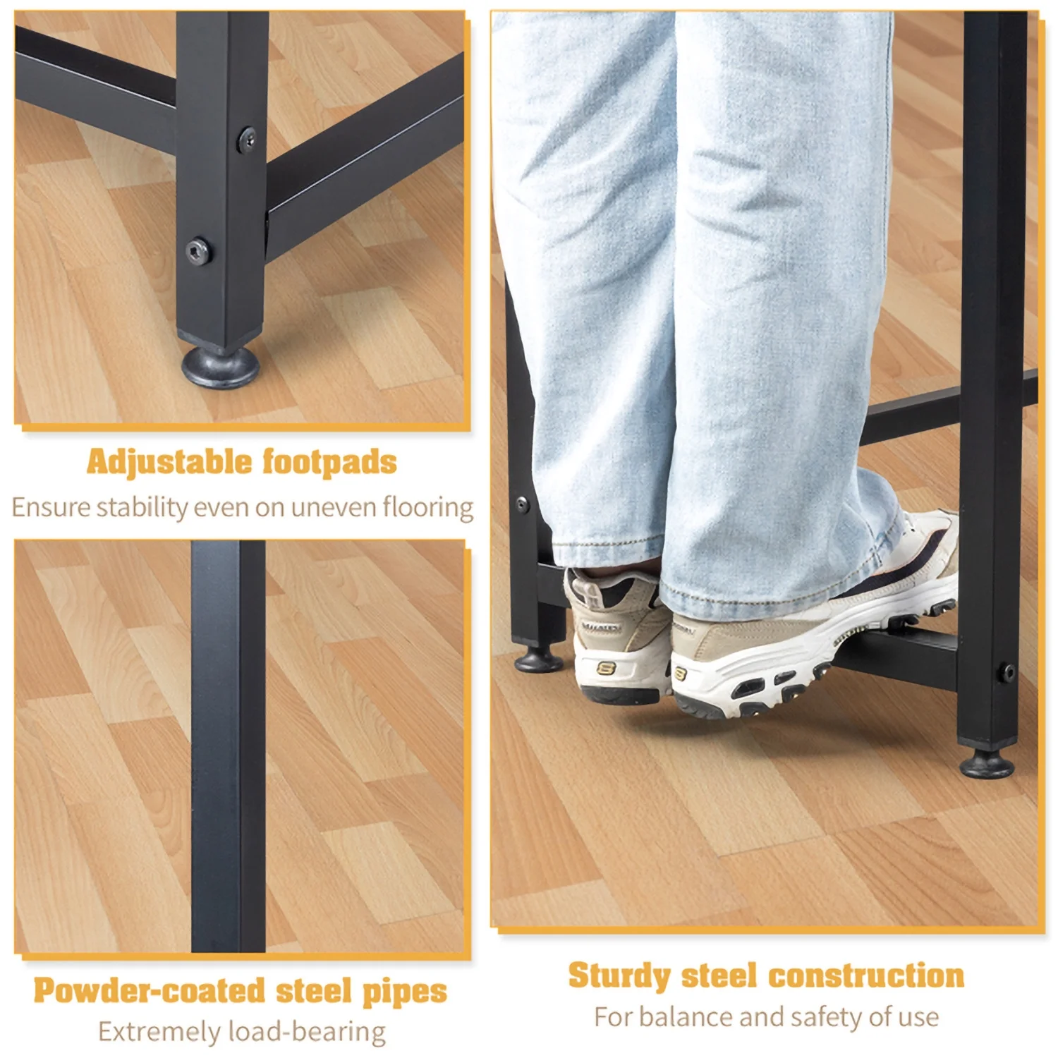 RUseeN L-Shaped Desktop Computer Desk with Power Outlets & Shelf Tiger Black