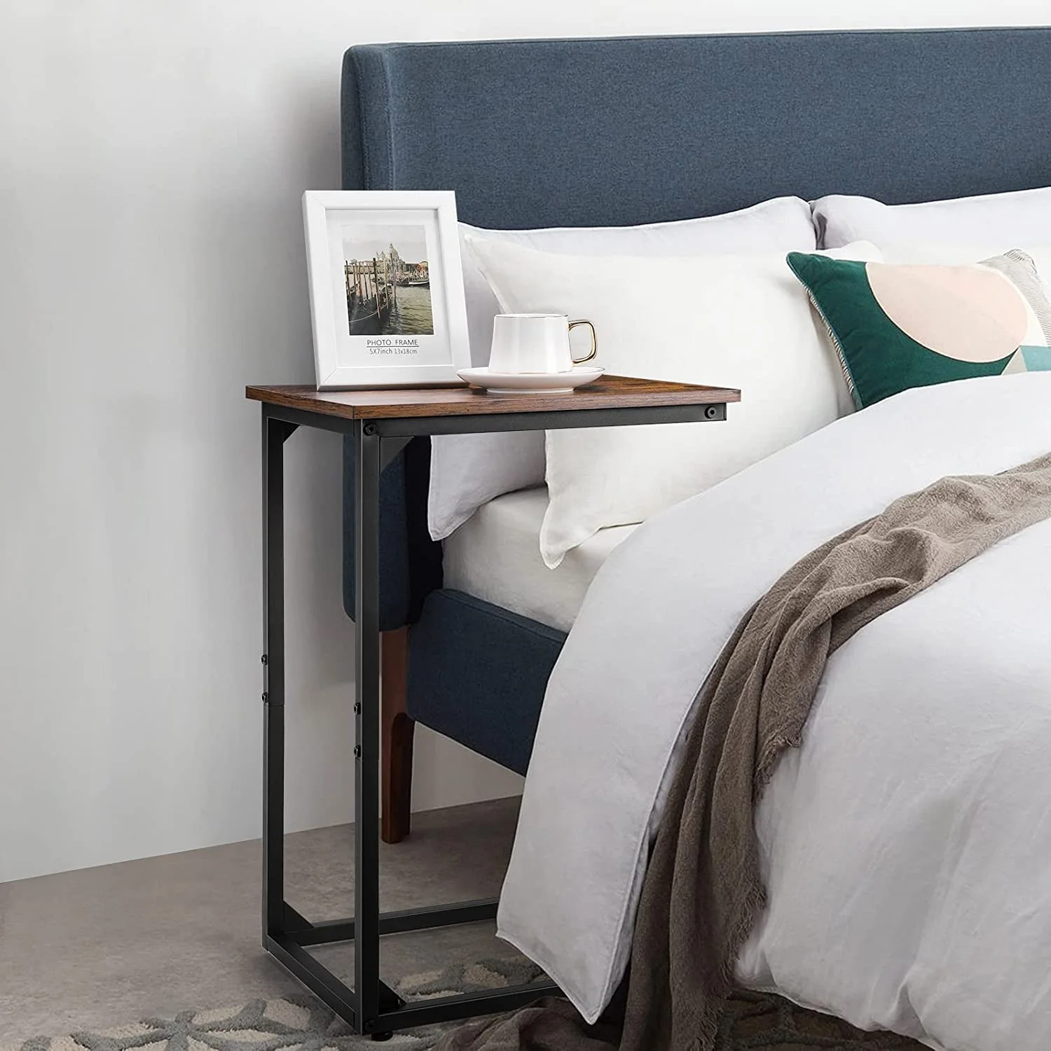 C Shape Side Table Set of 2, C Shape Sofa and Bed End Table, Portable Laptop Table, Sofa Side Table, Space Saving Living Room Bedroom - Brown